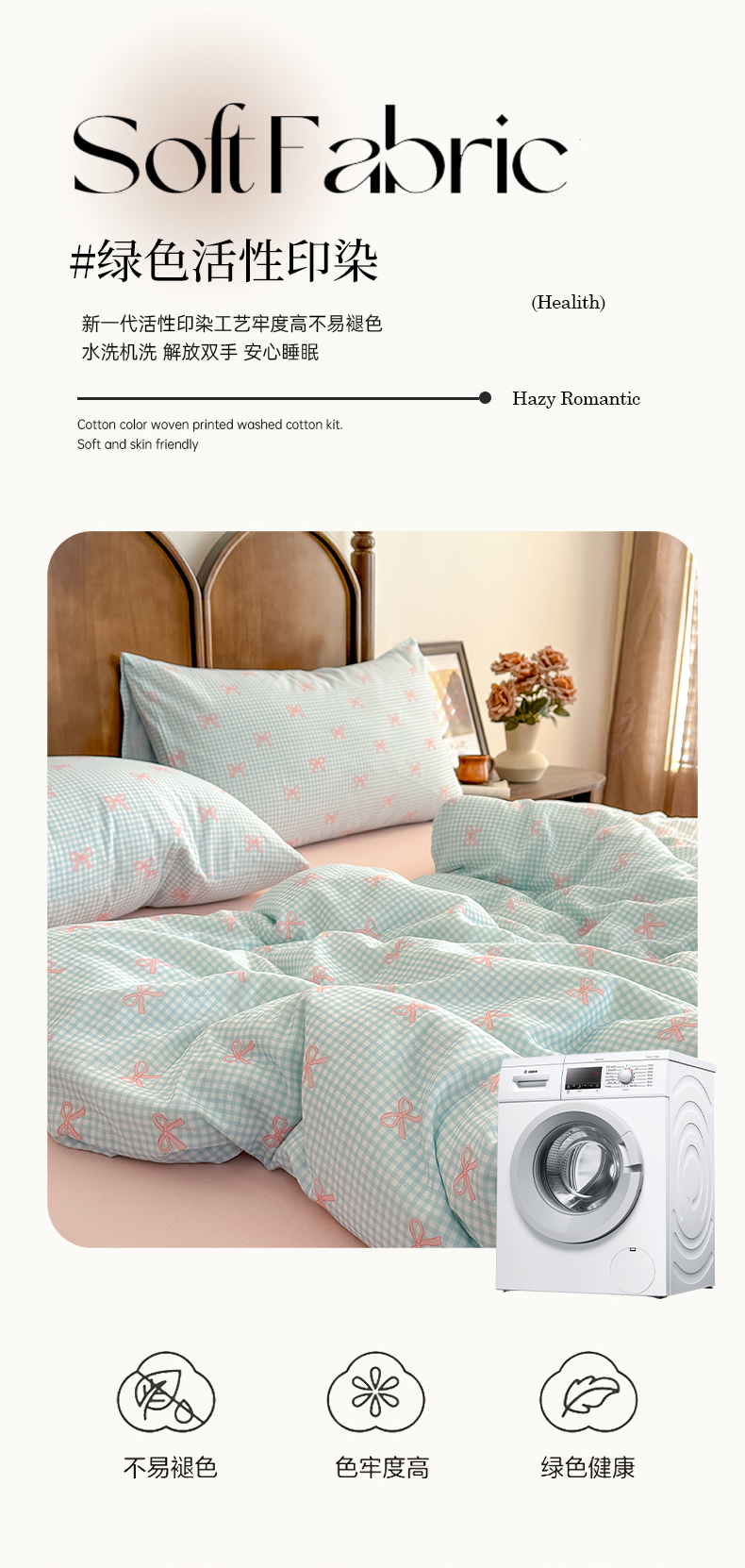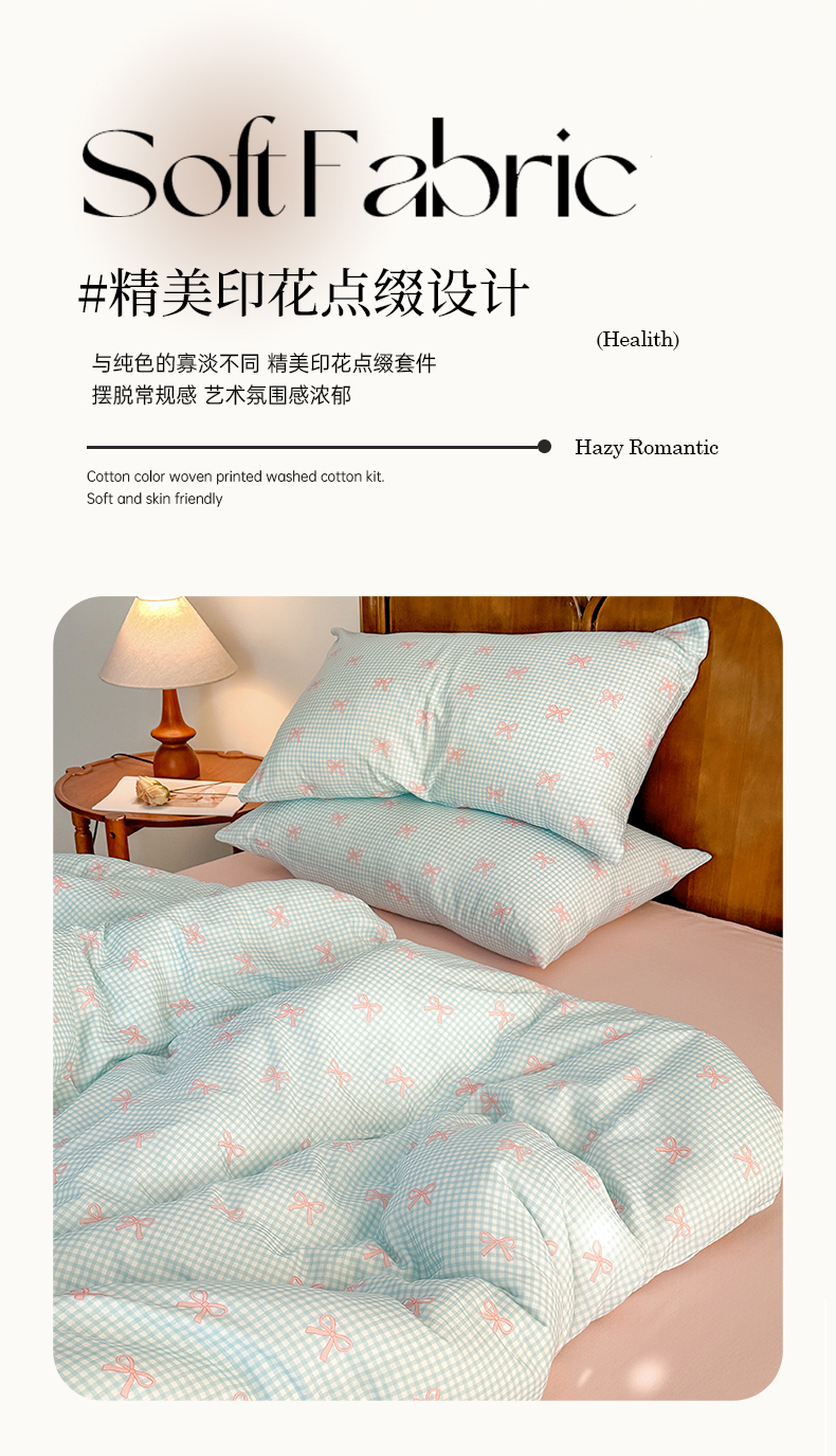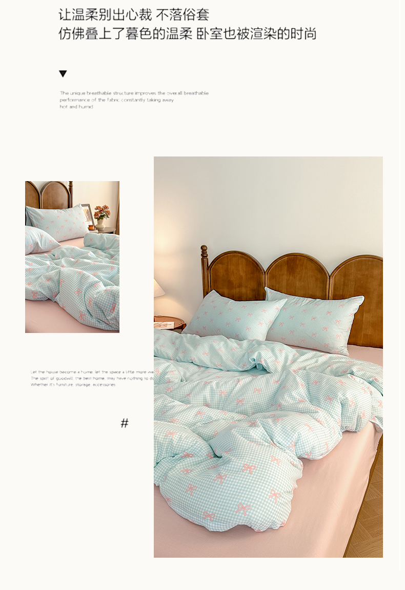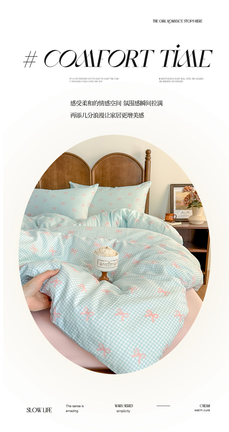 当前位置: 91家纺网 > 商品网购 > 床品套件 > 四件套 > 全棉普通四件套 > 2025新款A类母婴级有氧全棉纯棉双层纱纯棉印花四件套 场景二 情书