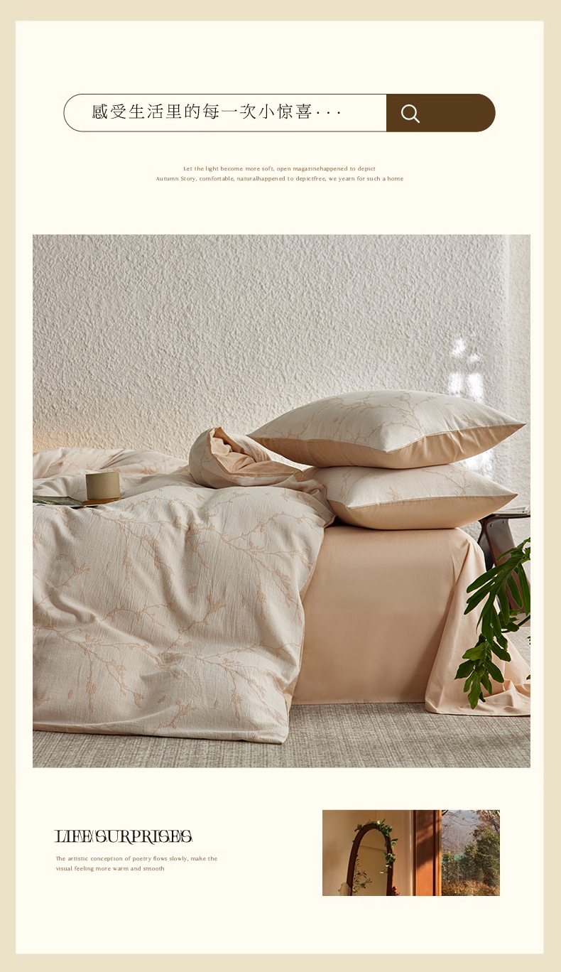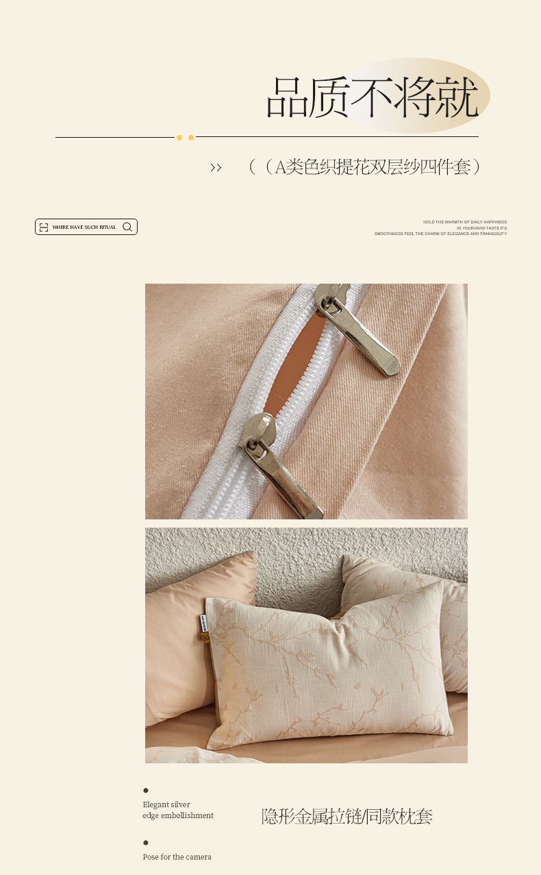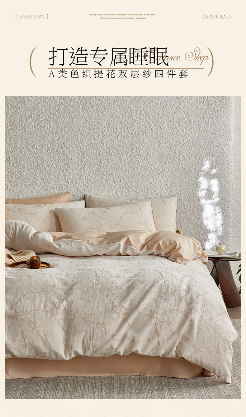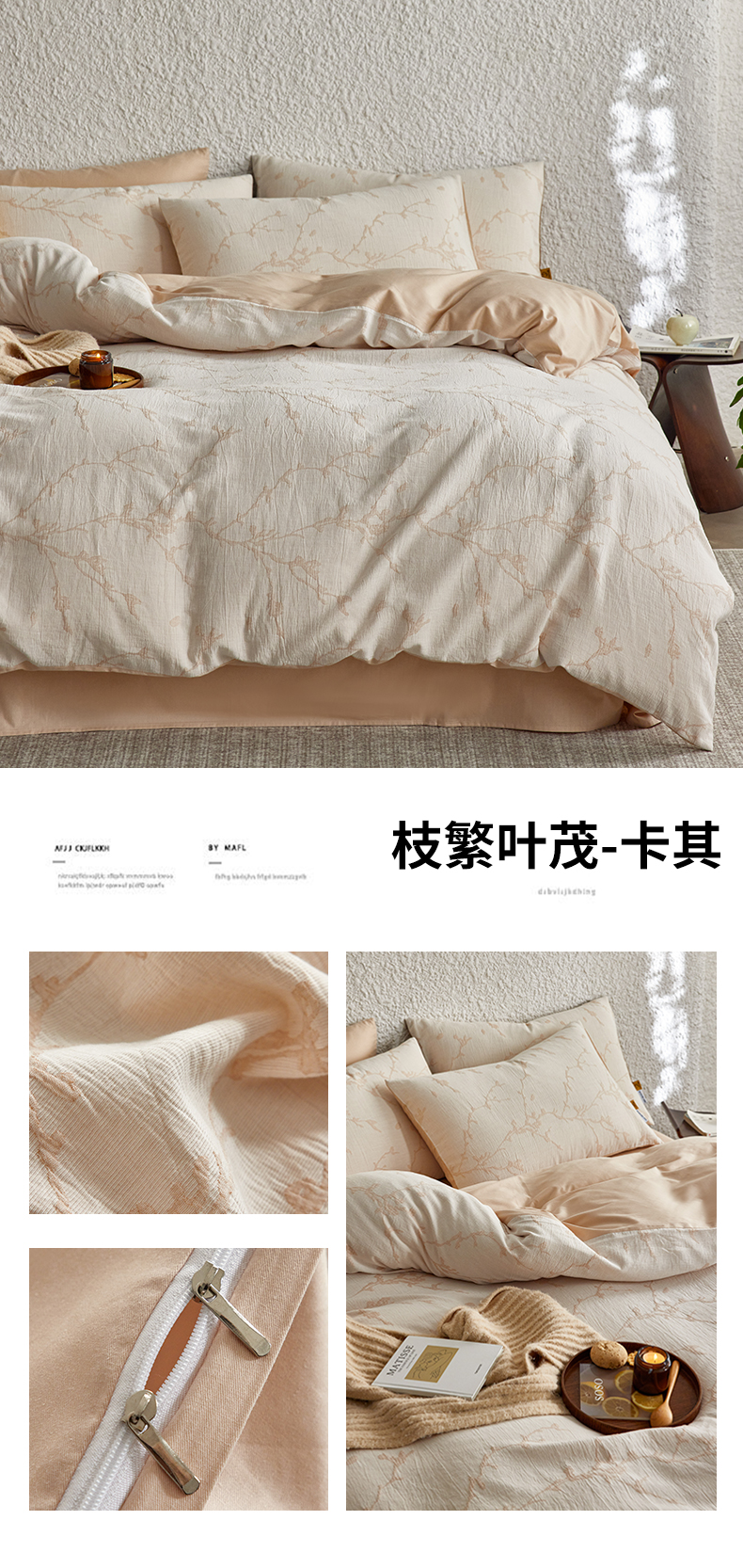 当前位置: 91家纺网 > 商品网购 > 床品套件 > 四件套 > 凯磊家纺 2025新款色织提花双层纱四件套 枝繁叶茂-卡其