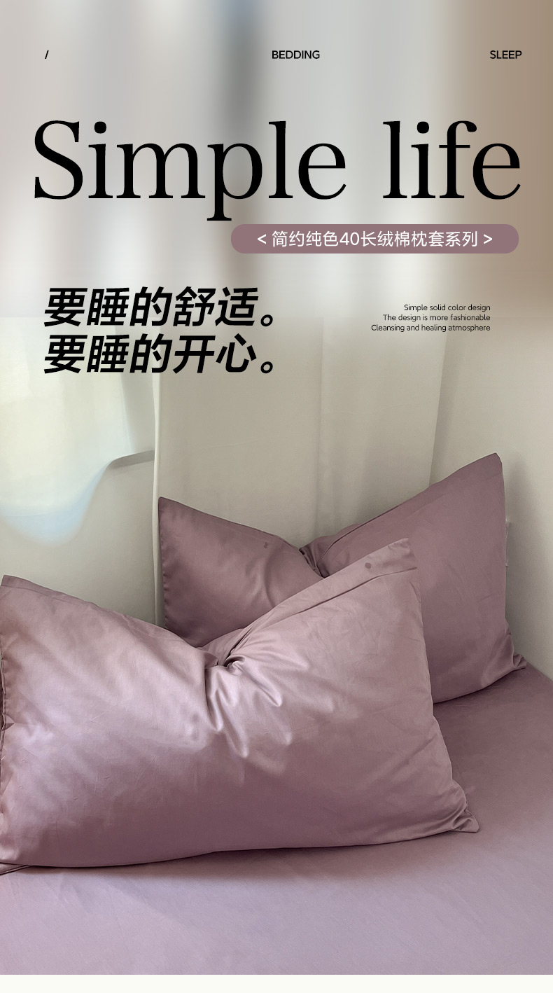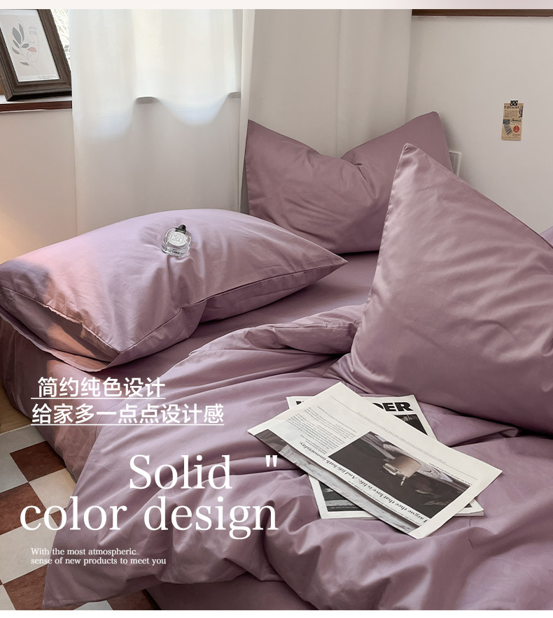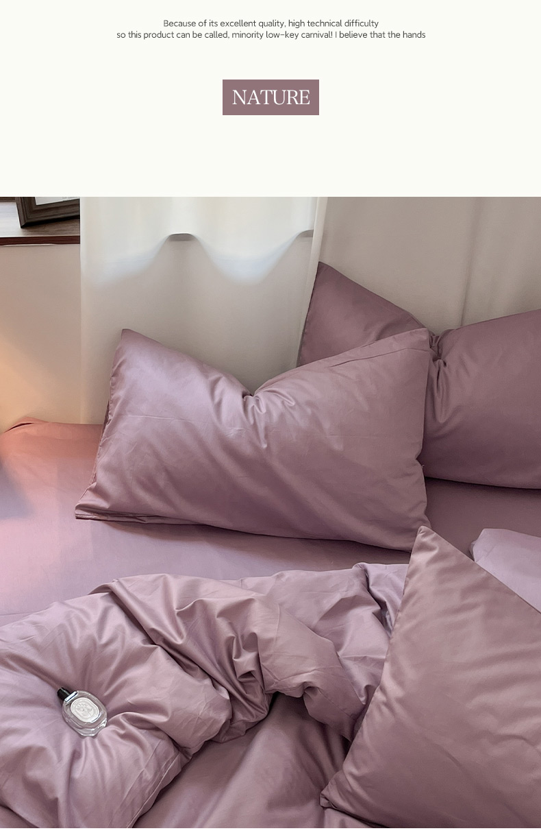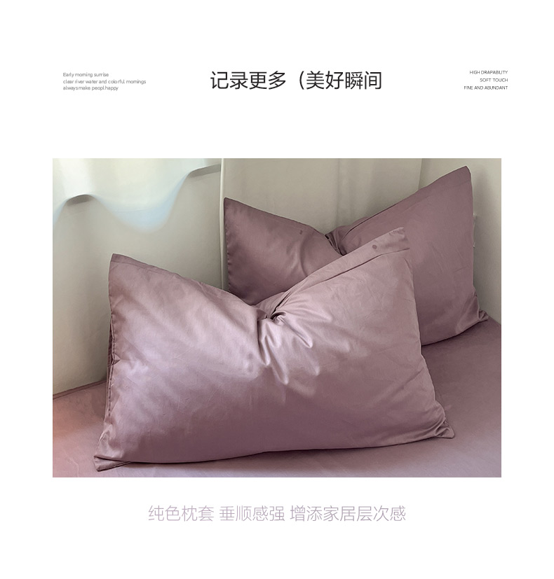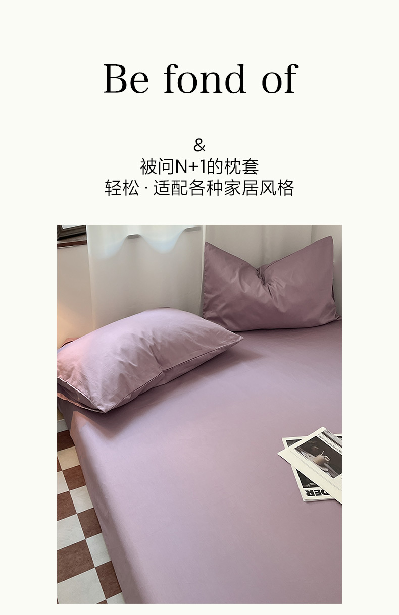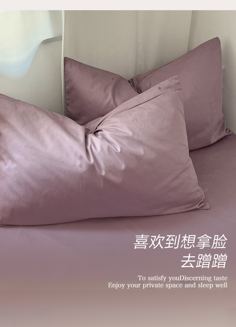 商品名称:2025新款40长绒棉ins美拉德色系纯色全棉单品四件套床笠四件套系列--单枕套 雪青色