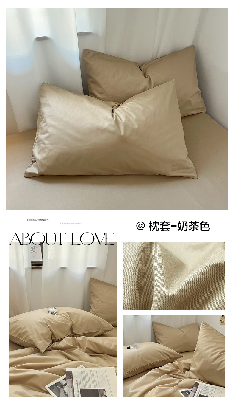 (总)2025新款40长绒棉ins美拉德色系纯色全棉单品四件套床笠四件套系列--单枕套,琥珀色,橘,抹茶色,墨绿,奶茶色,浅茶色,瑞红,天空蓝,雪青色