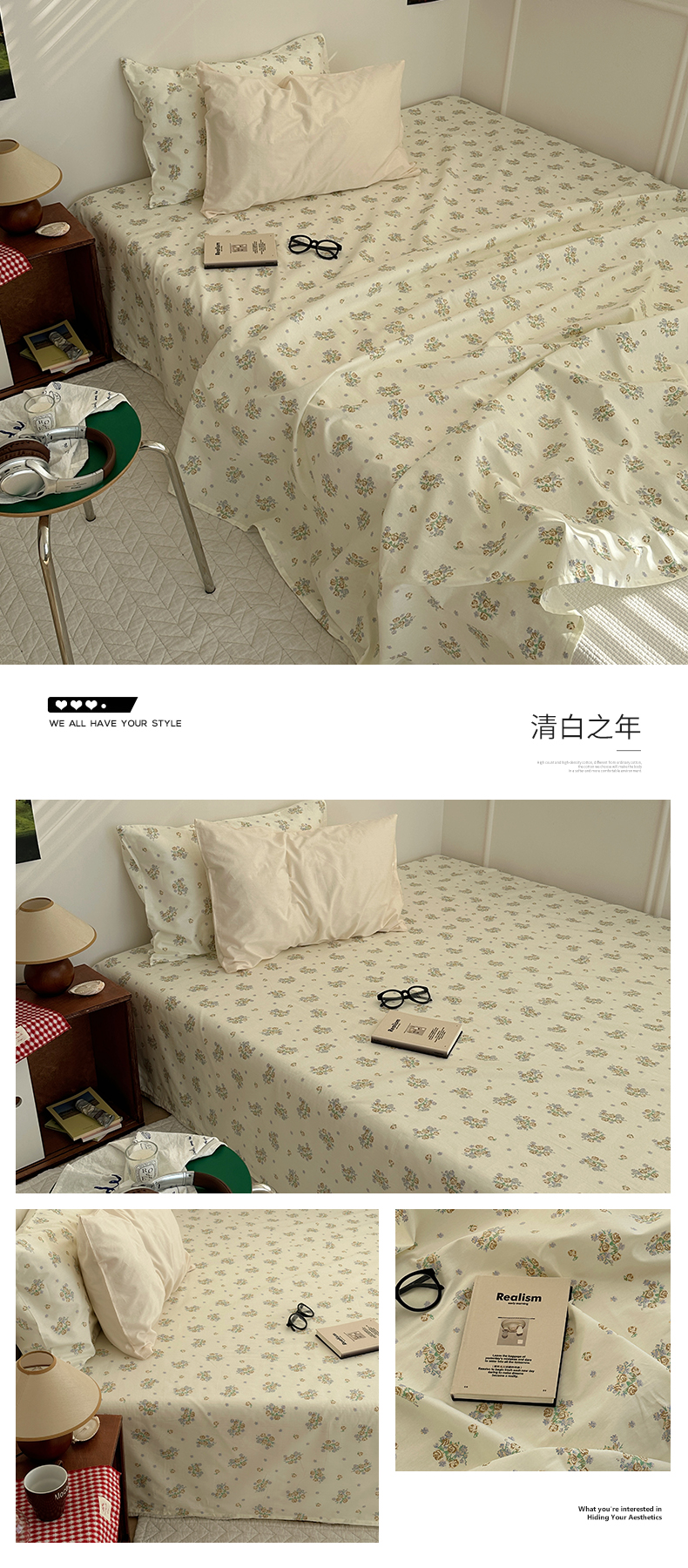 (总)尺素 2025新款田园小清新纯棉四件套出口韩国ins博主风全棉被套纯色加大床单1.8床笠印花枕套学生宿舍三件套,春不晚 桃粉,花似锦 奶白,紫鸢千夏紫