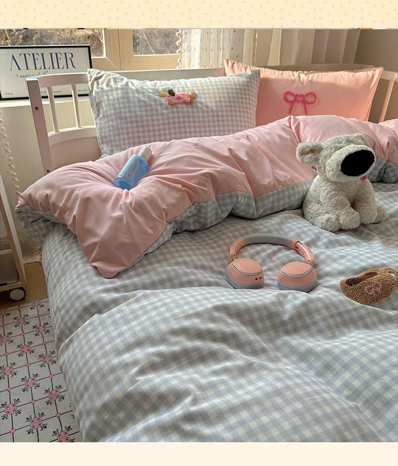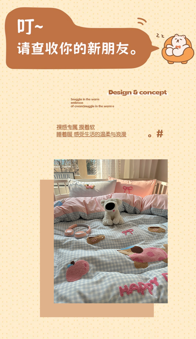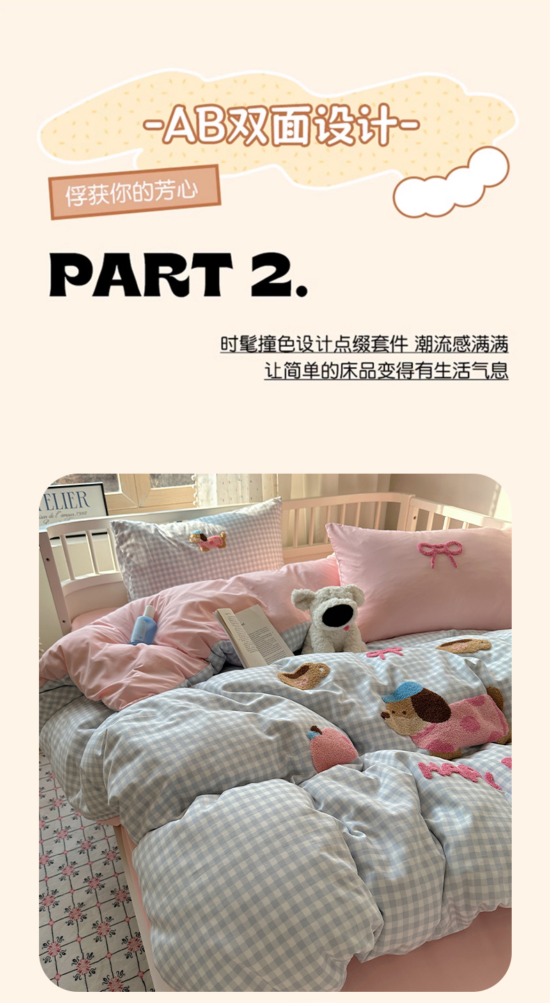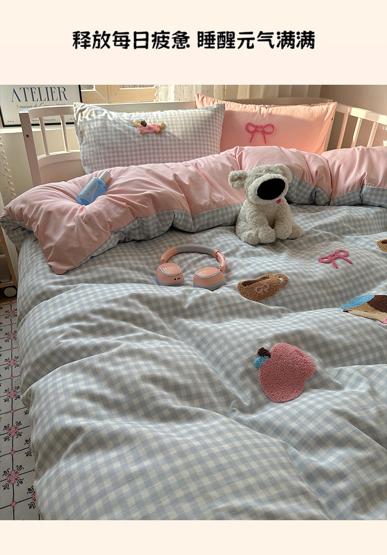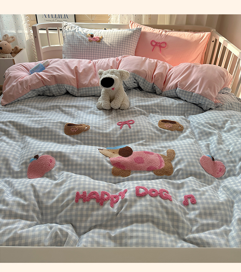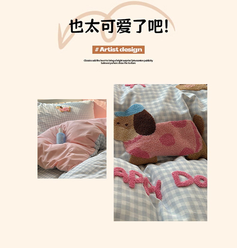 当前位置: 91家纺网 > 商品网购 > 床品套件 > 四件套 > 红嘴企鹅 2025新款水洗棉毛巾绣四件套 蓝格苹果狗狗