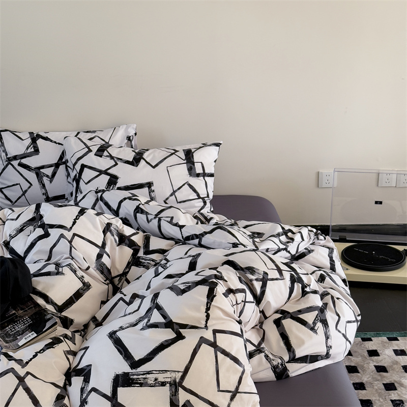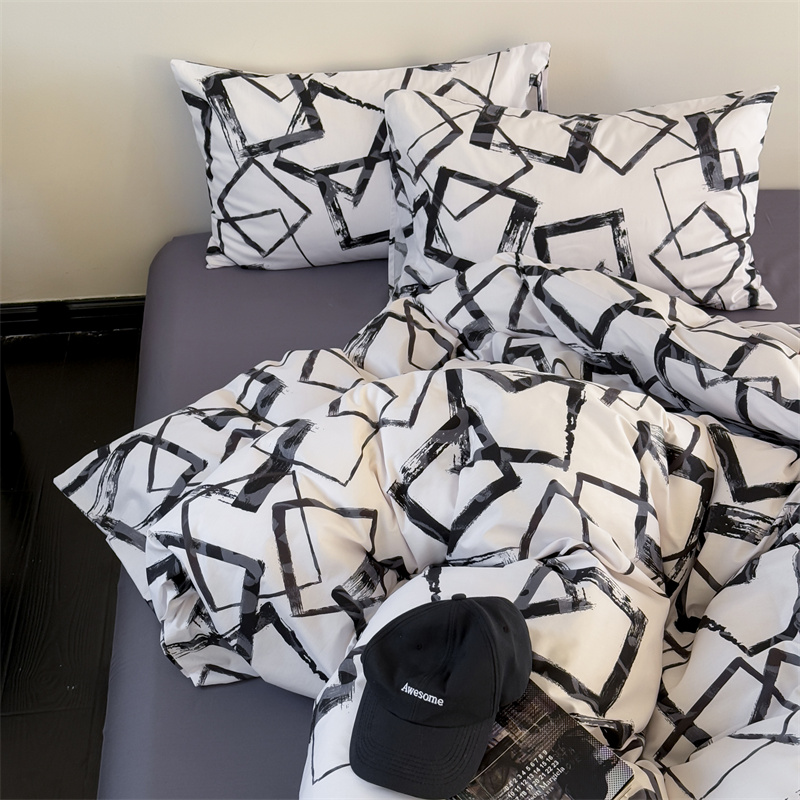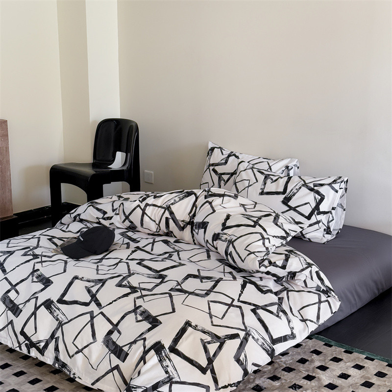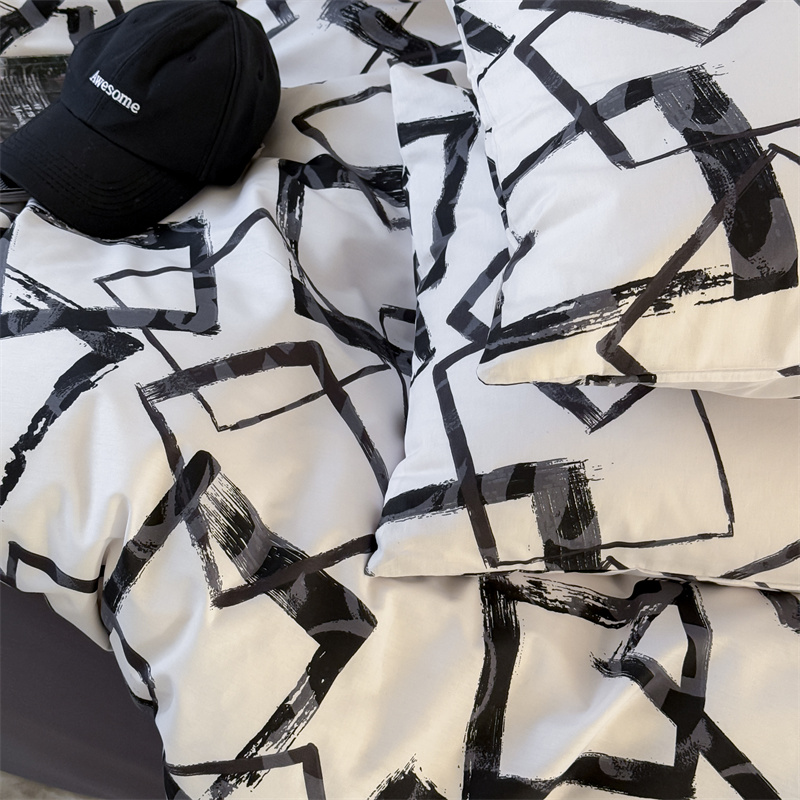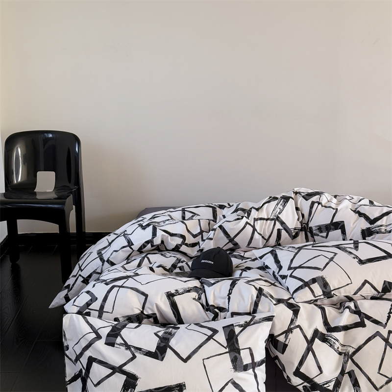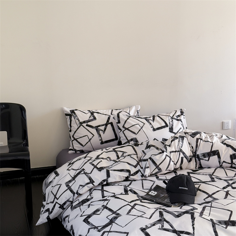 当前位置: 91家纺网 > 商品网购 > 床品套件 > 四件套 > 全棉普通四件套 > 窝米 2025新款全棉新品13370四件套 简约休闲风系列(悦溪、几何乐园) 几何乐园黑