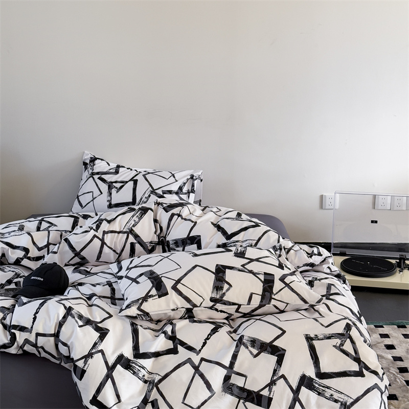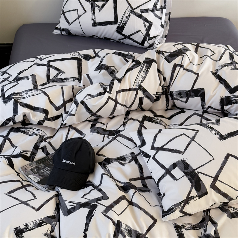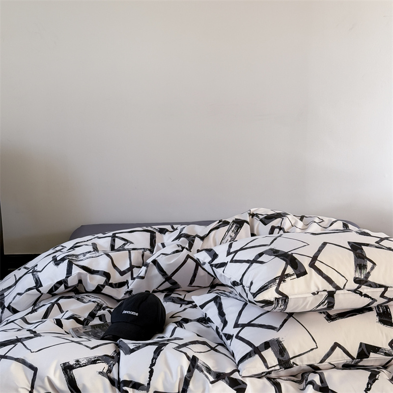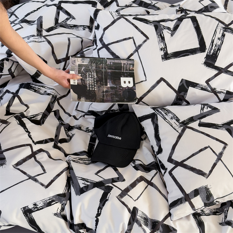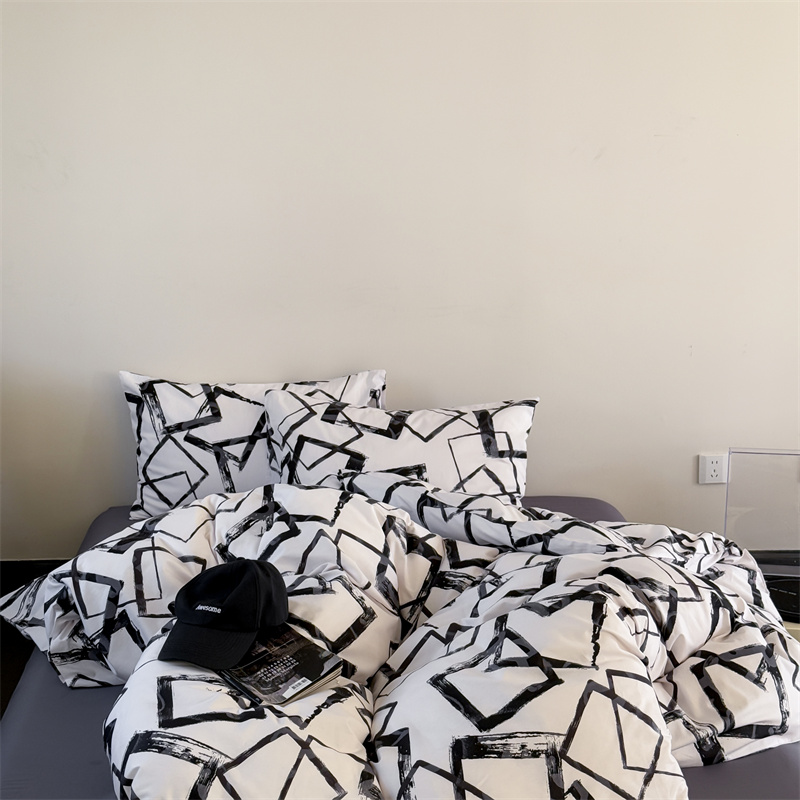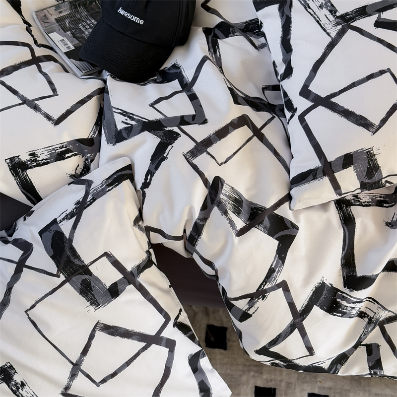 当前位置: 91家纺网 > 商品网购 > 床品套件 > 四件套 > 全棉普通四件套 > 窝米 2025新款全棉新品13370四件套 简约休闲风系列(悦溪、几何乐园) 几何乐园黑