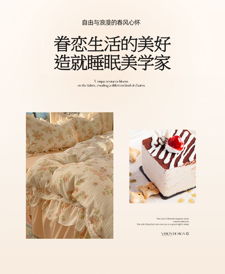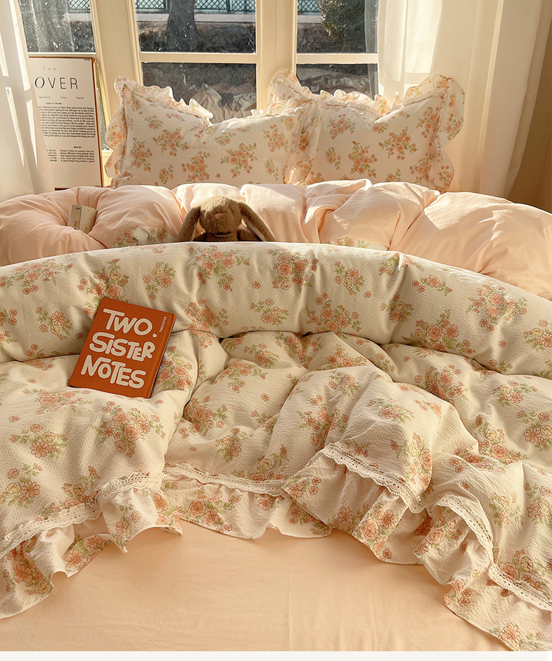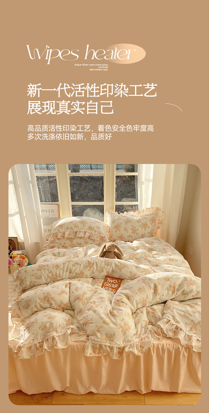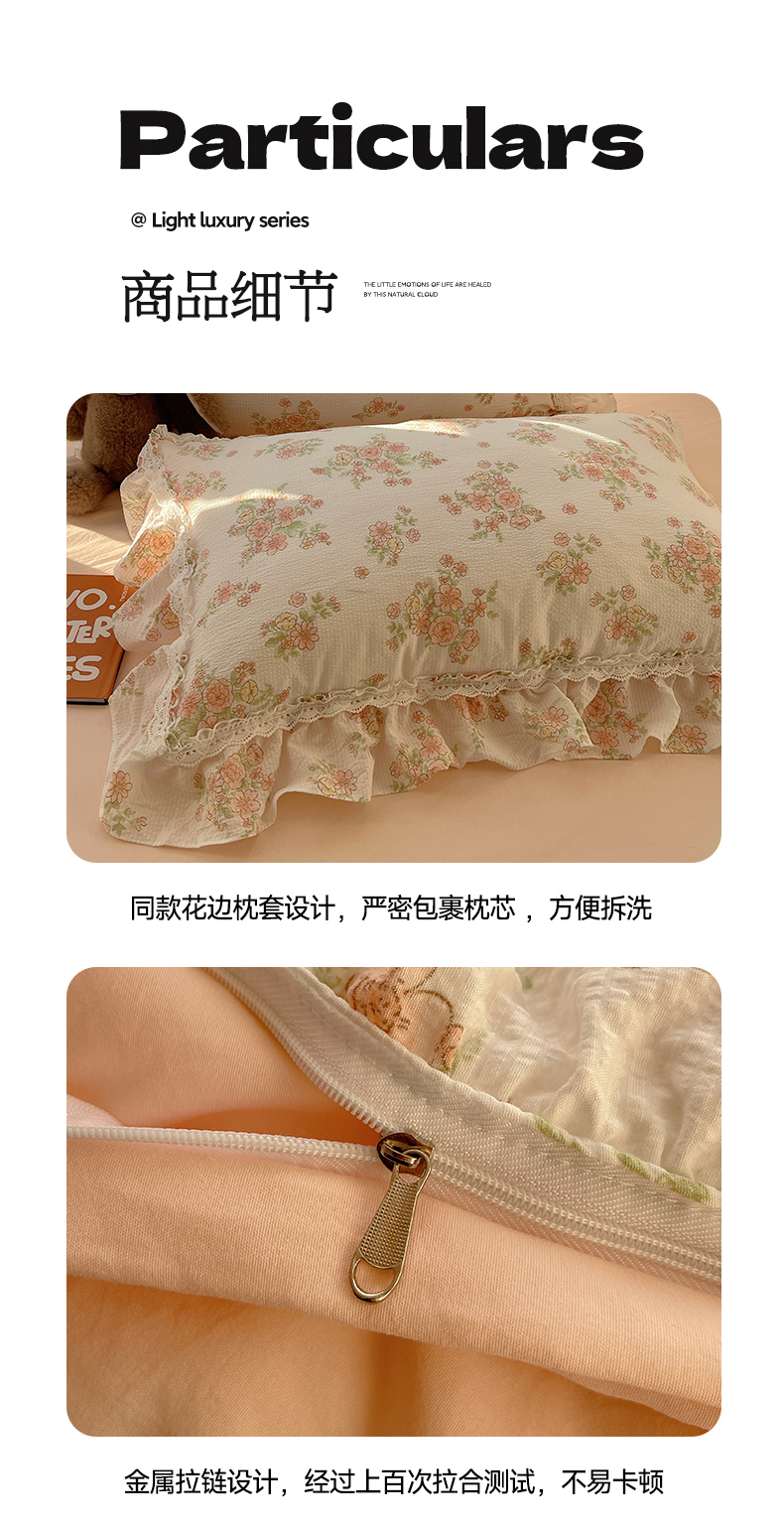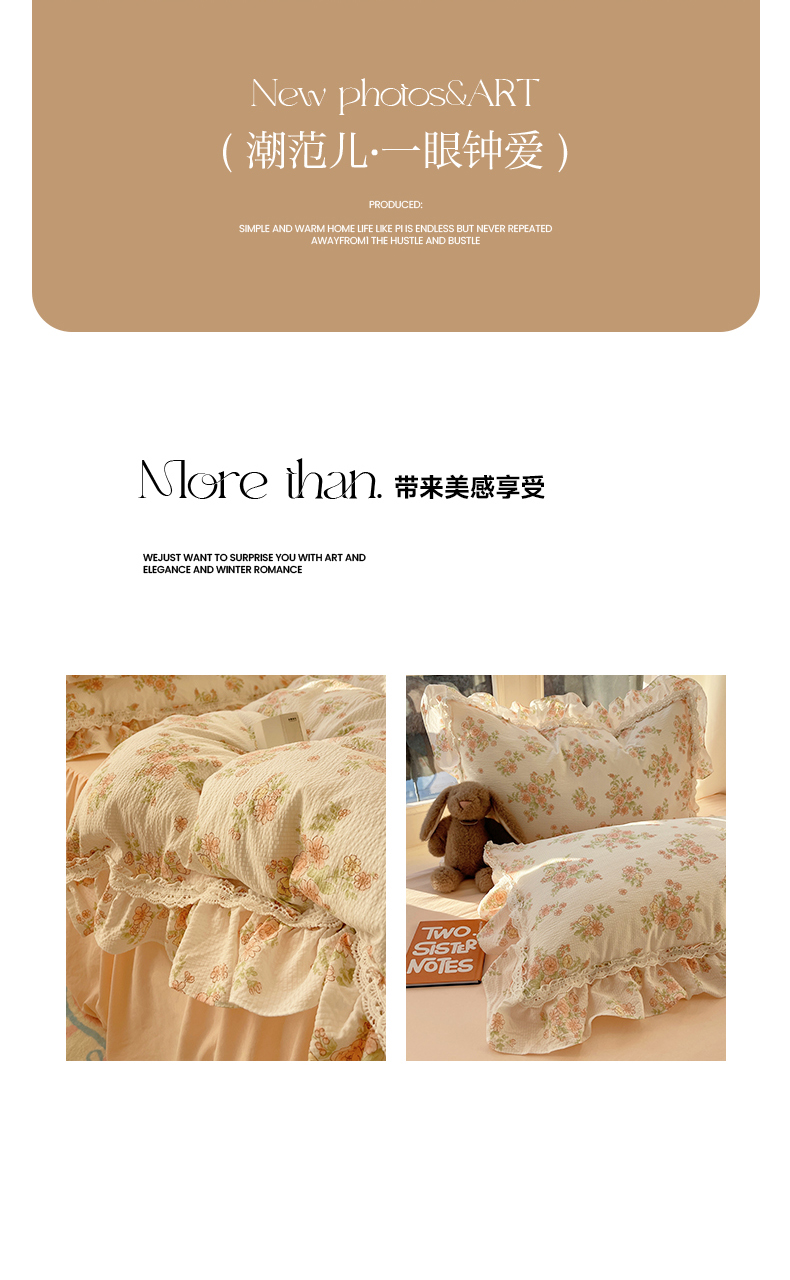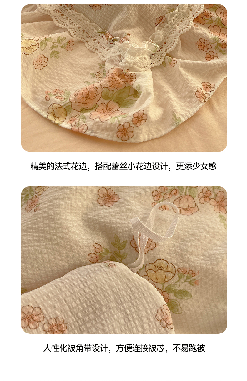 当前位置: 91家纺网 > 商品网购 > 床品套件 > 四件套 > 其它四件套 > 轻奢坊 2025新款法式泡泡棉床裙款四件套 花蕾粉