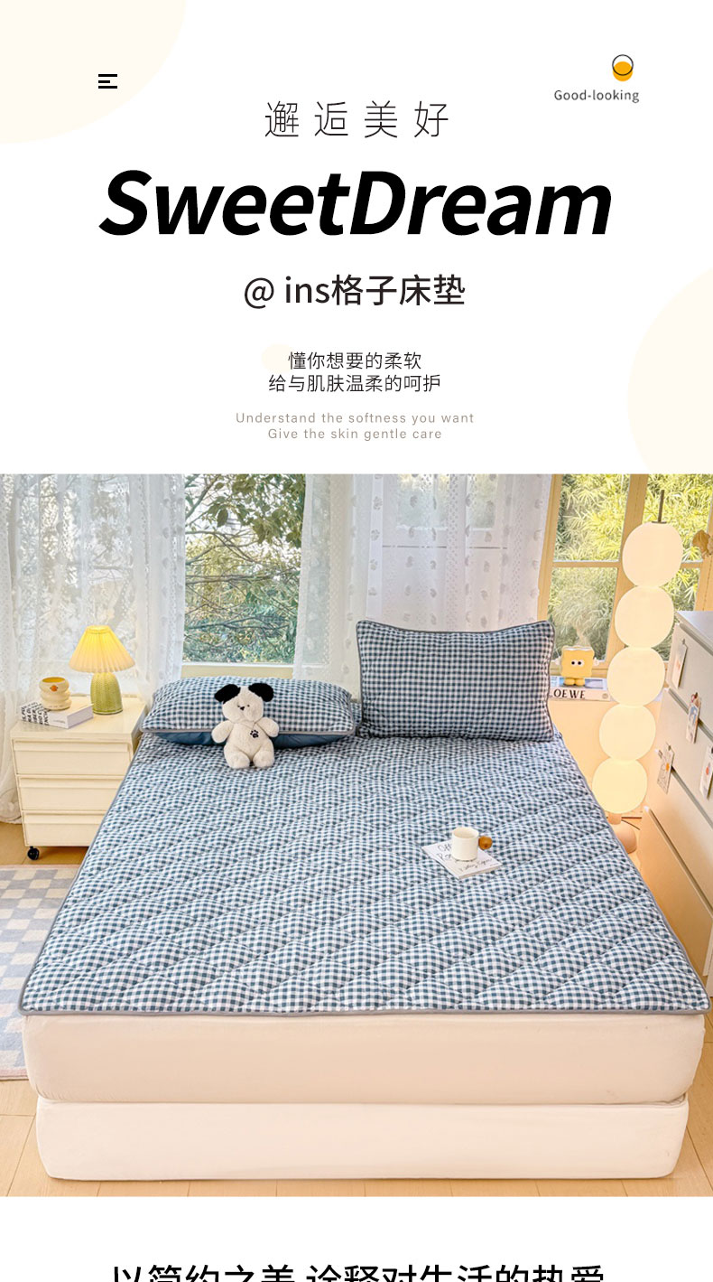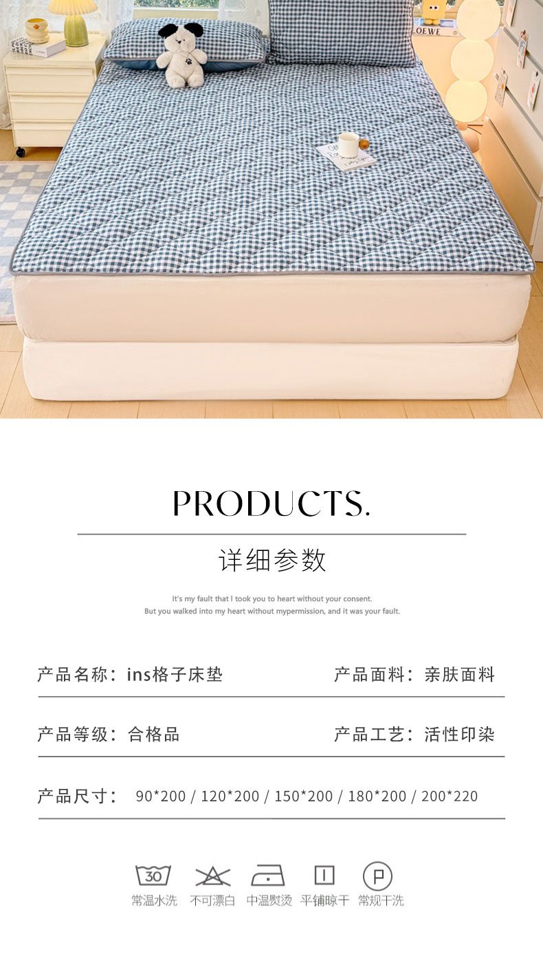 当前位置: 91家纺网 > 商品网购 > 床垫/床褥 > 普通床垫 > 麒东家纺 2025年新款ins春夏格子床垫 小青格