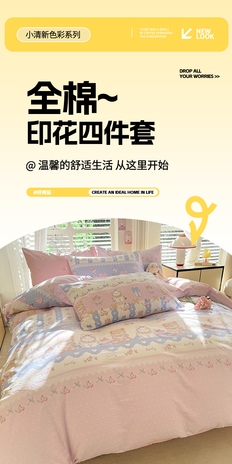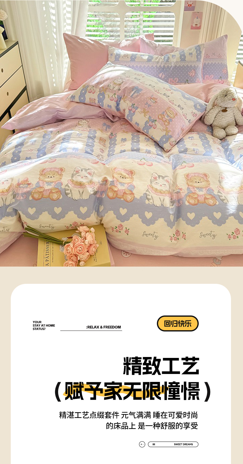 当前位置: 91家纺网 > 商品网购 > 床品套件 > 四件套 > 全棉普通四件套 > 秋艳家纺 2025新款全棉印花四件套 梦乐城