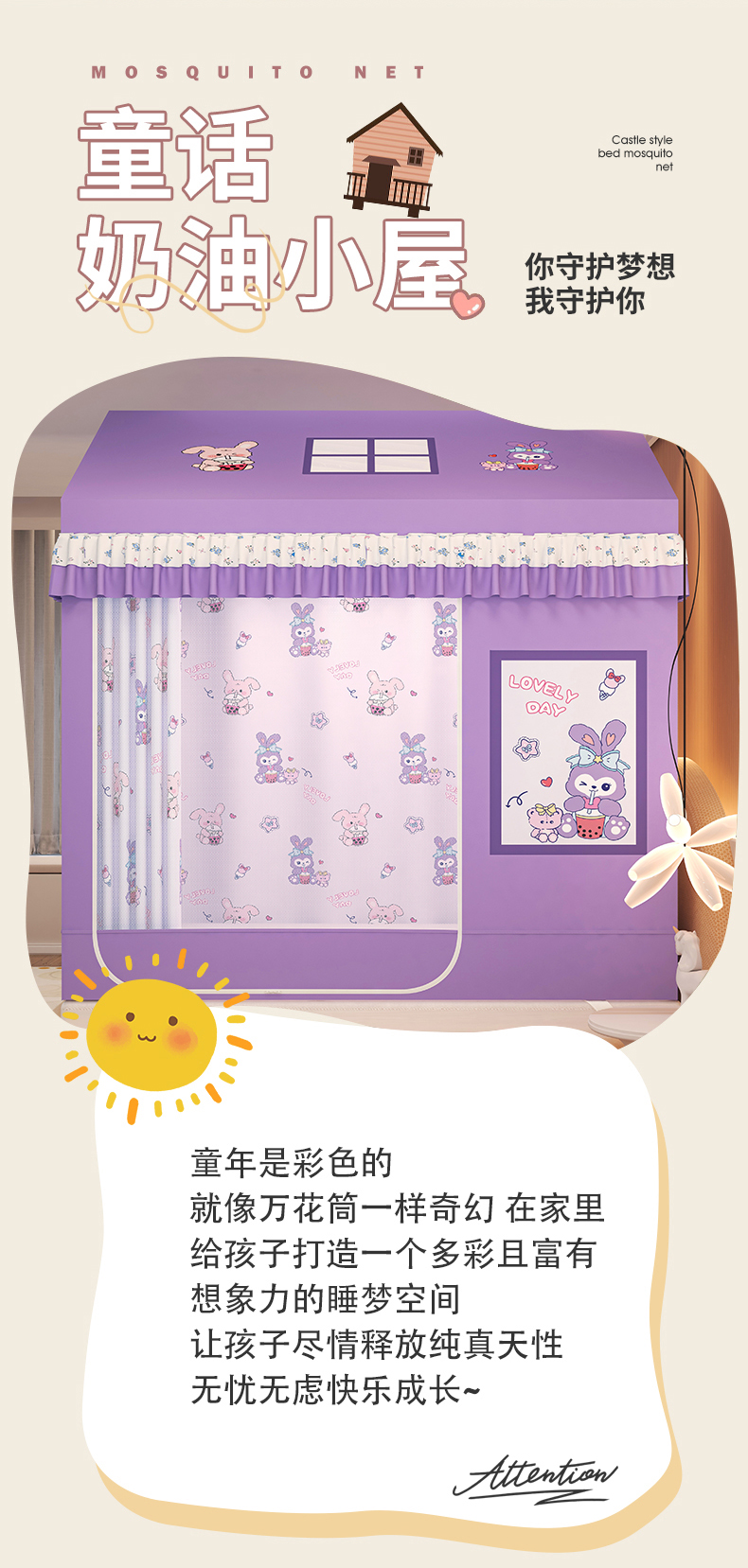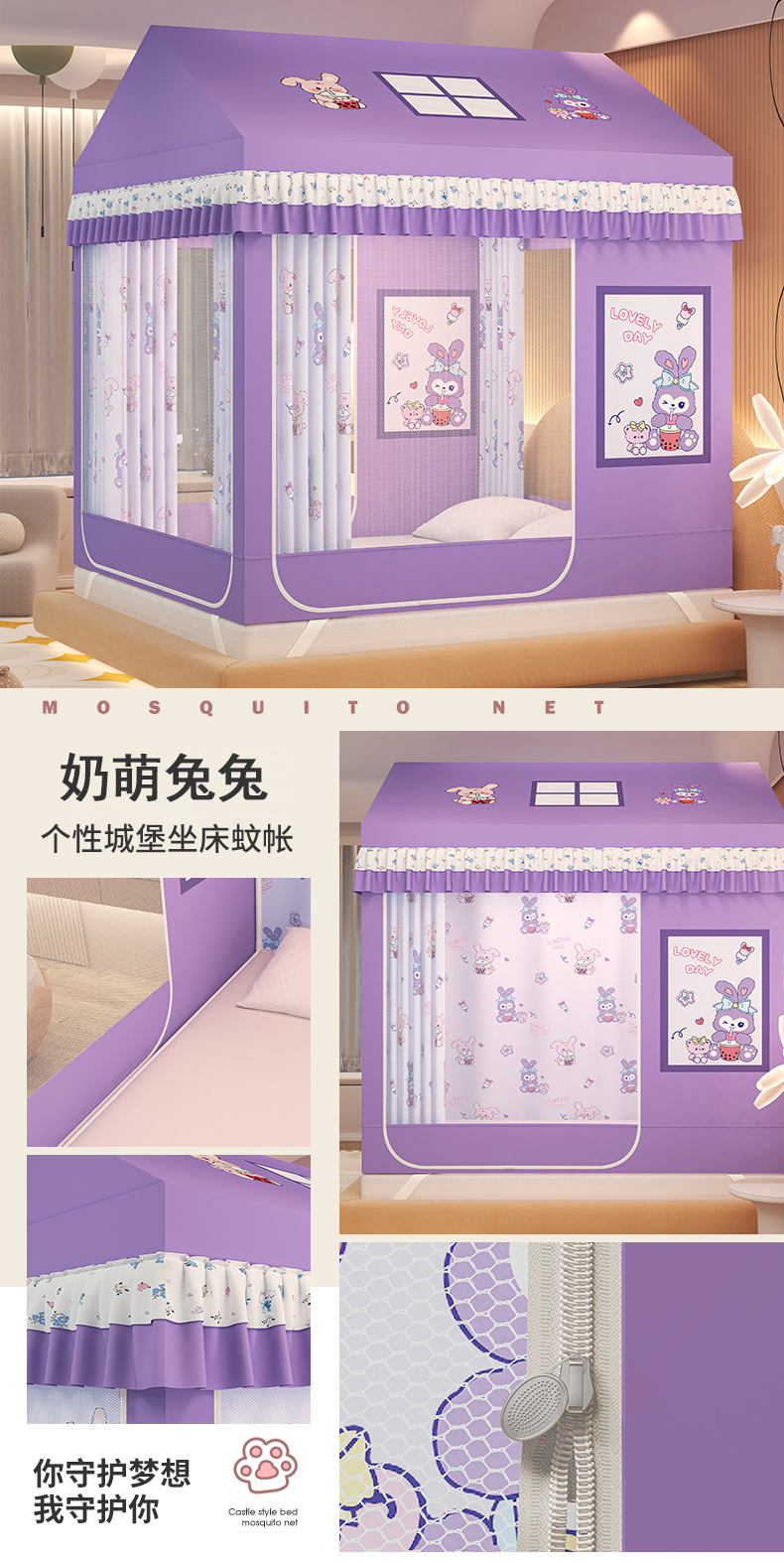 当前位置: 91家纺网 > 商品网购 > 床上用品 > 蚊帐 > 坐床式蚊帐 > 迪凡保罗蚊帐 2025新款2505城堡款房型遮光防摔坐床蚊帐 奶萌兔兔