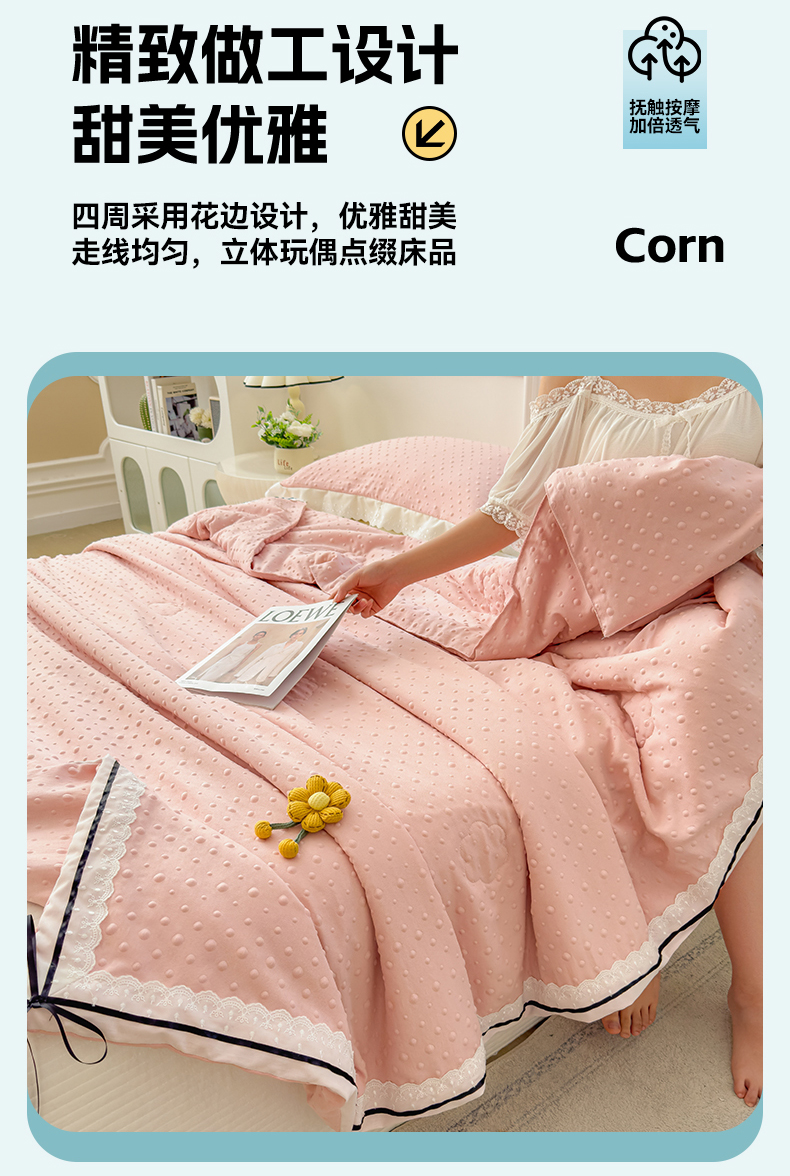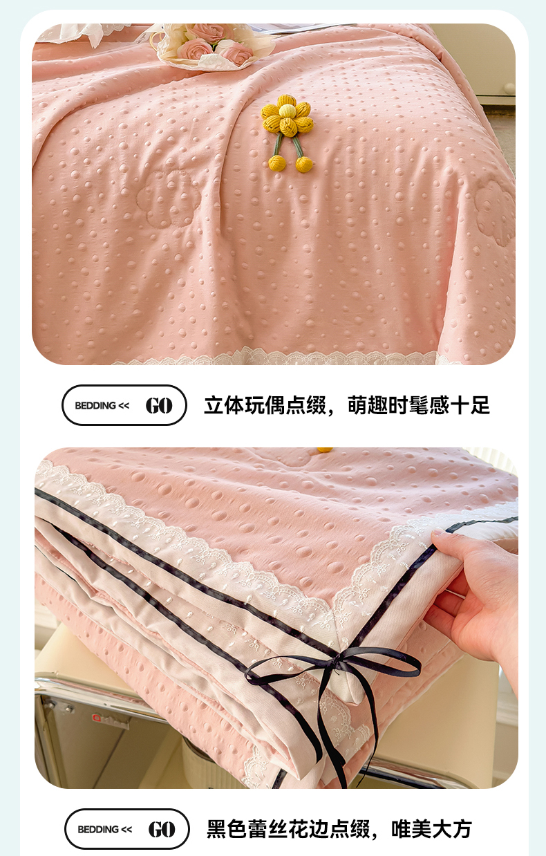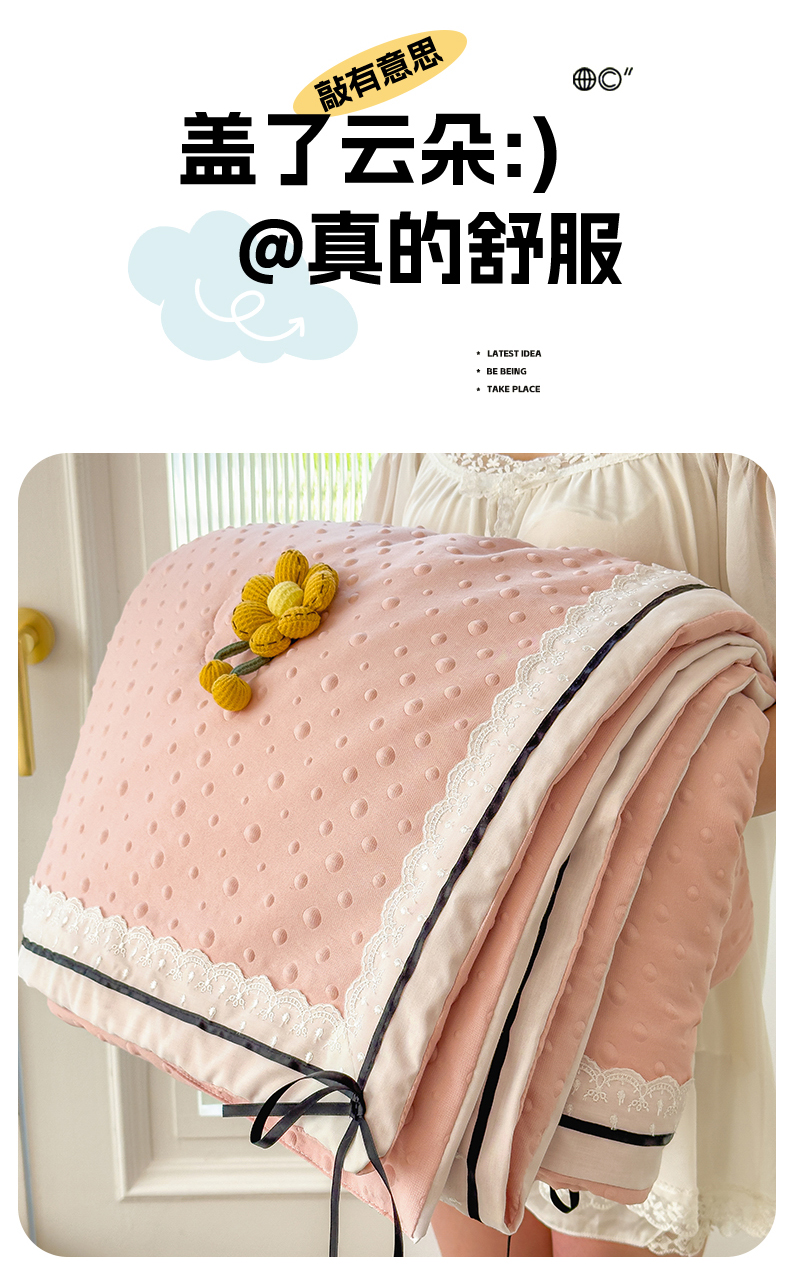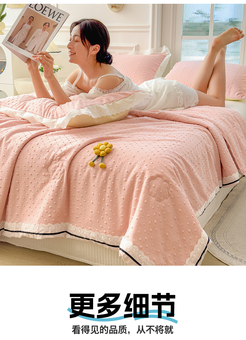 商品名称:兄弟坊 2025新款韩版针织泡泡纱花边夏被夏凉被 小花-豆沙
