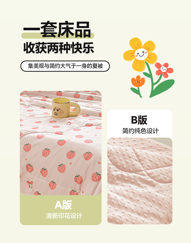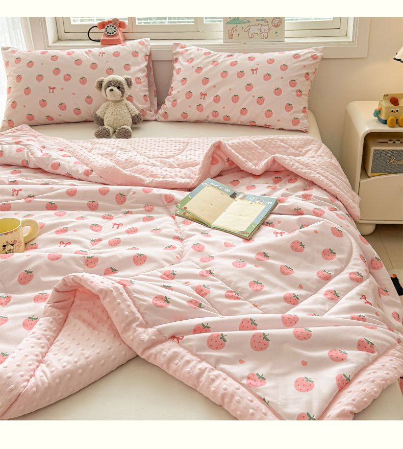 悦织语2025新款A类水洗棉双层纱豆豆被大豆夏凉被 草莓波波