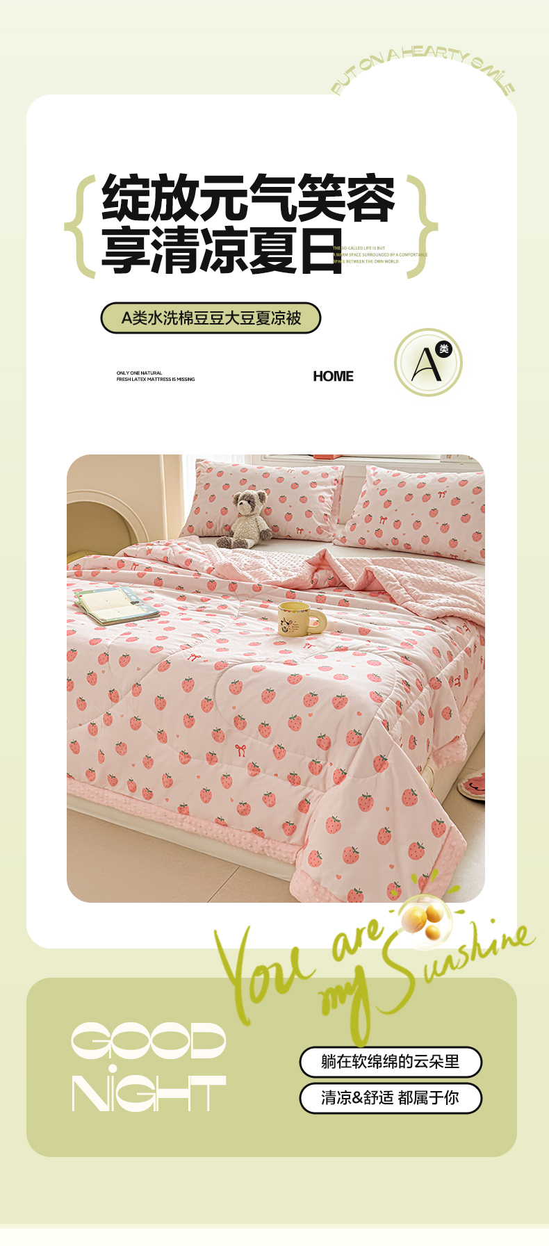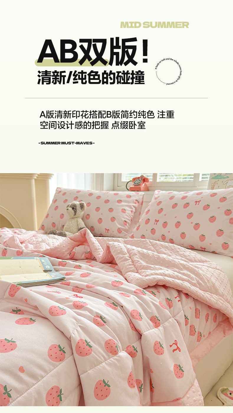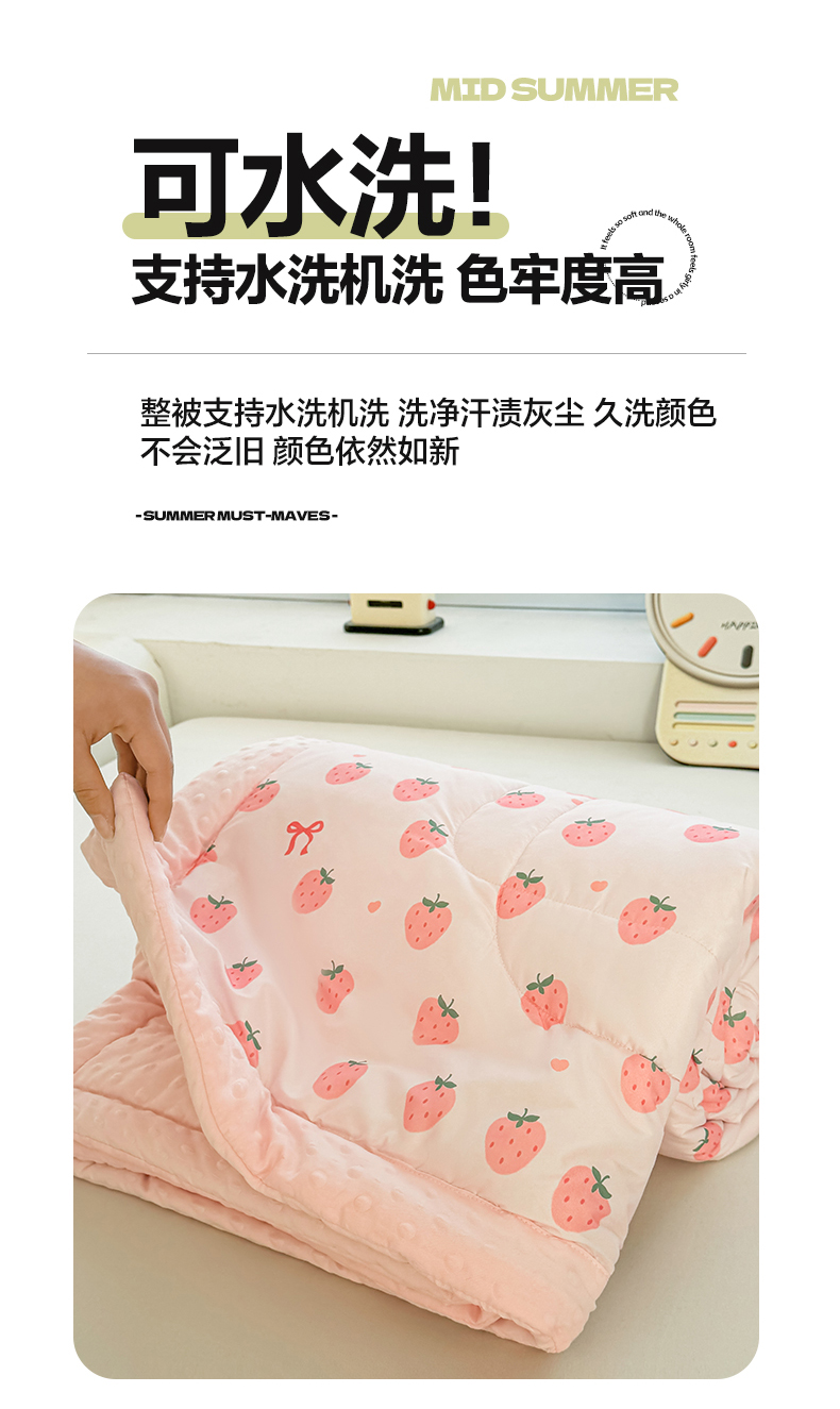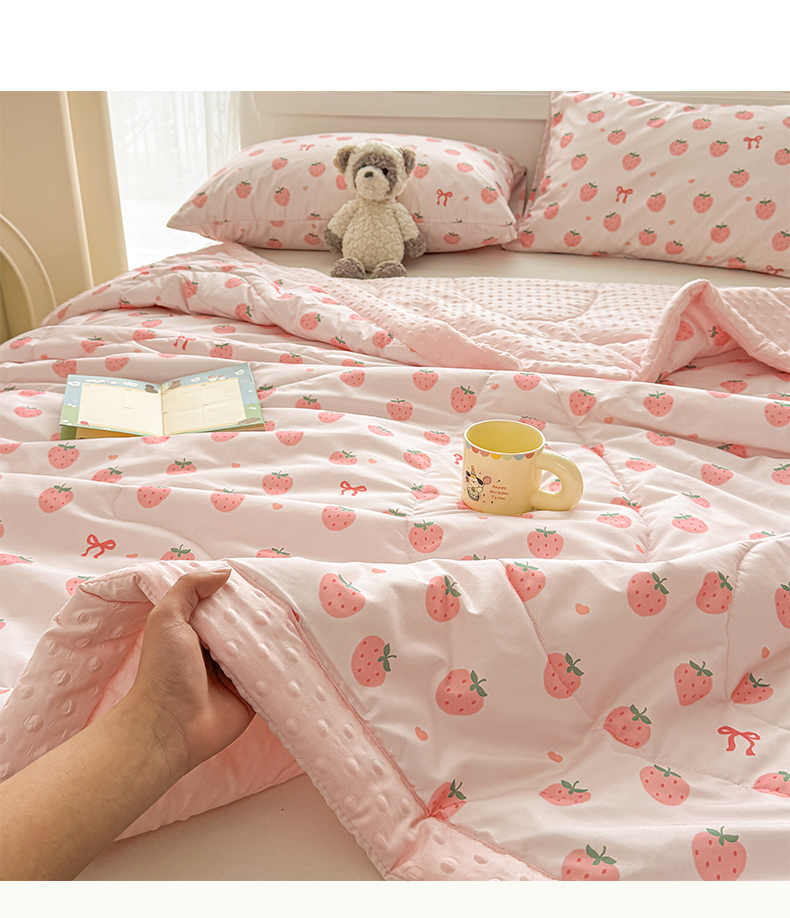 商品名称:悦织语2025新款A类水洗棉双层纱豆豆被大豆夏凉被 草莓波波