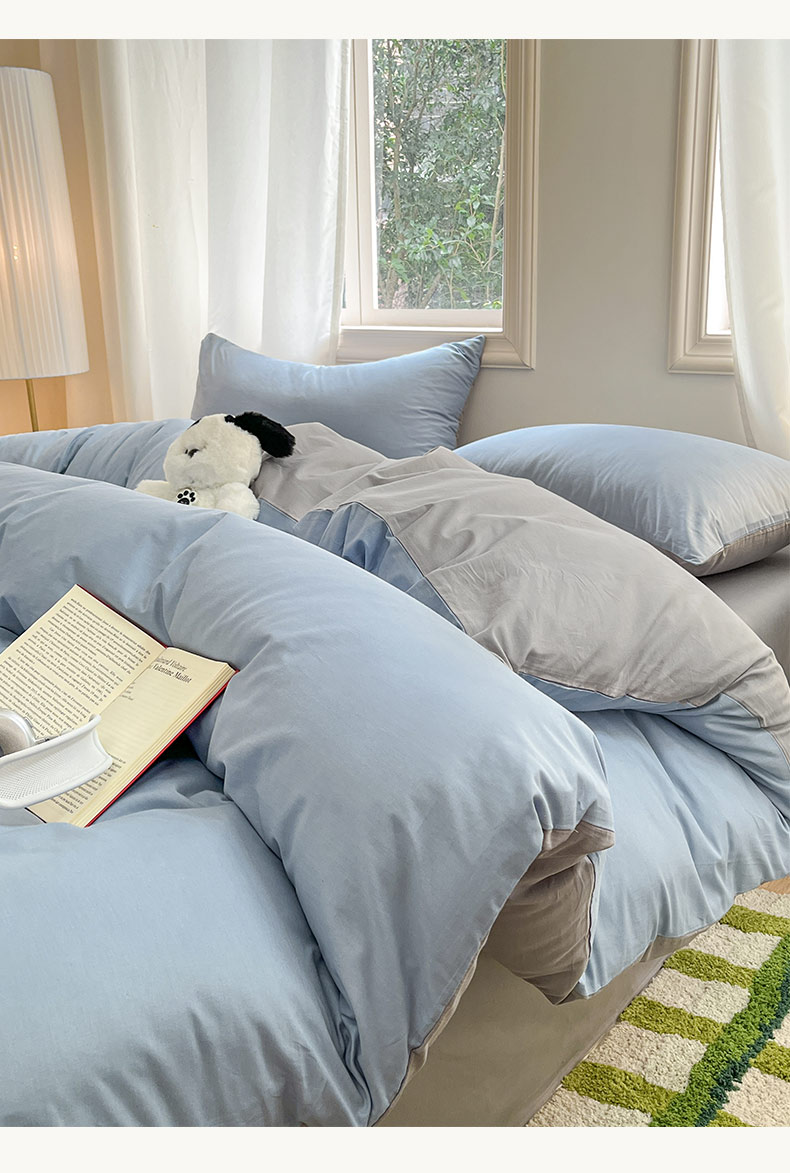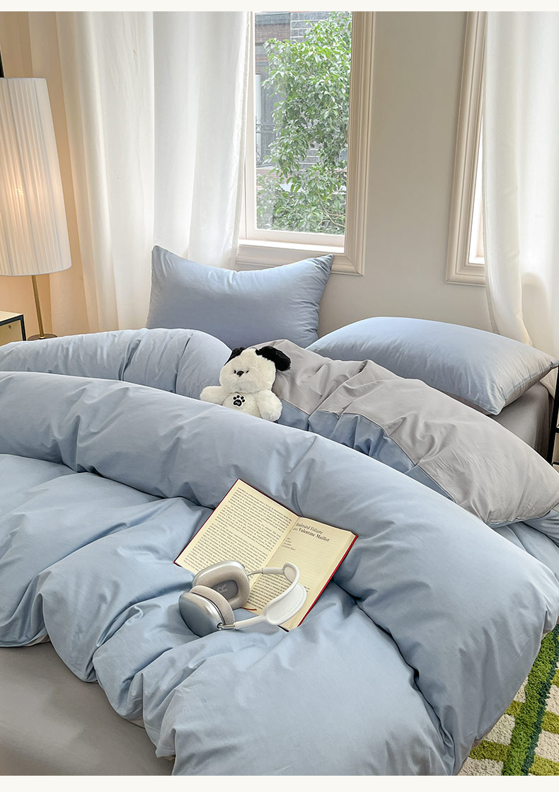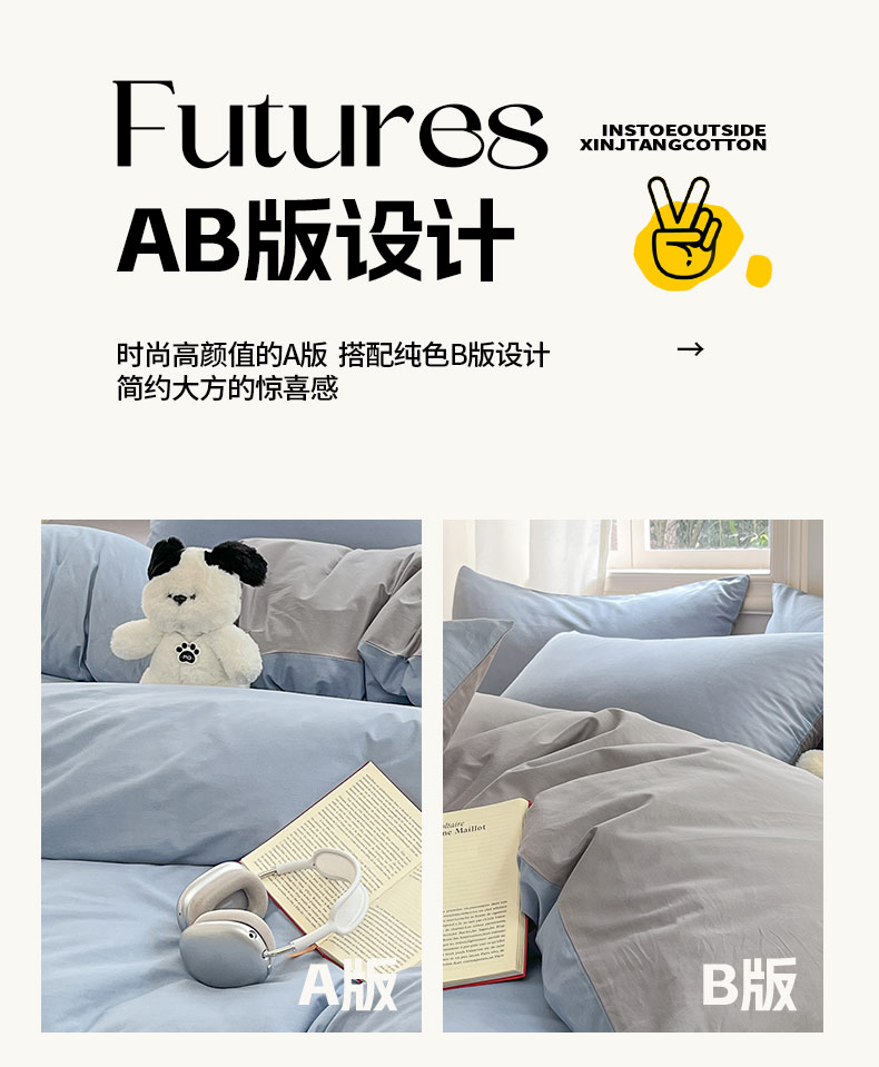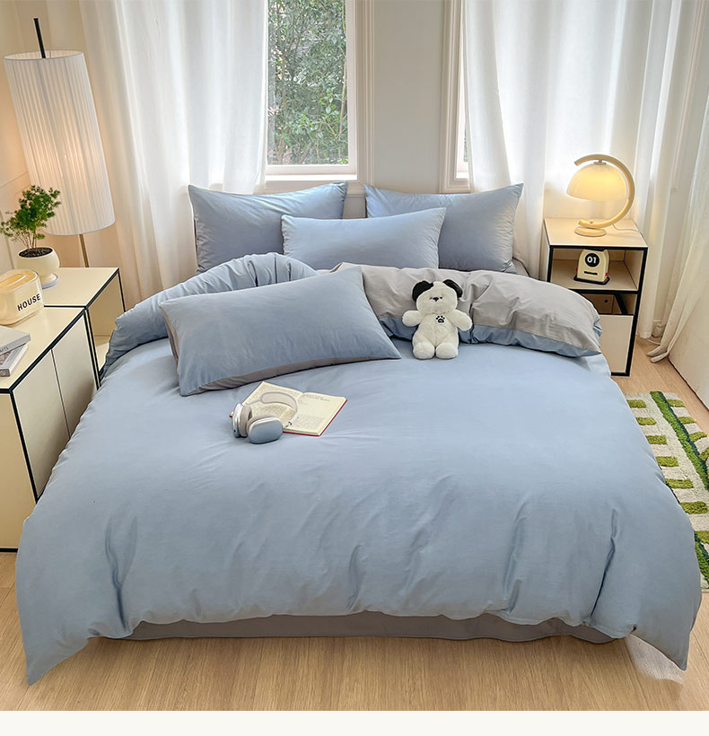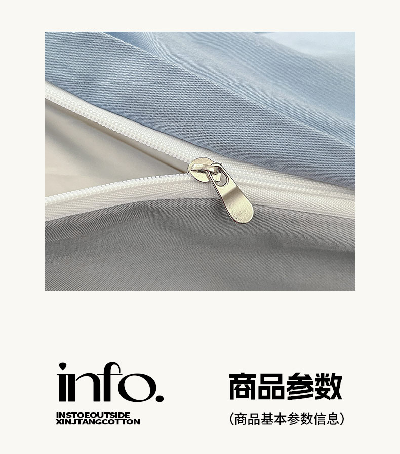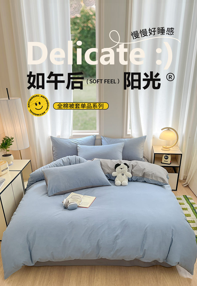 当前位置: 91家纺网 > 商品网购 > 床品套件 > 四件套 > 全棉普通四件套 > 泽西家纺2025新款A类全棉双拼纯色纯棉单被套 淡蓝+深灰