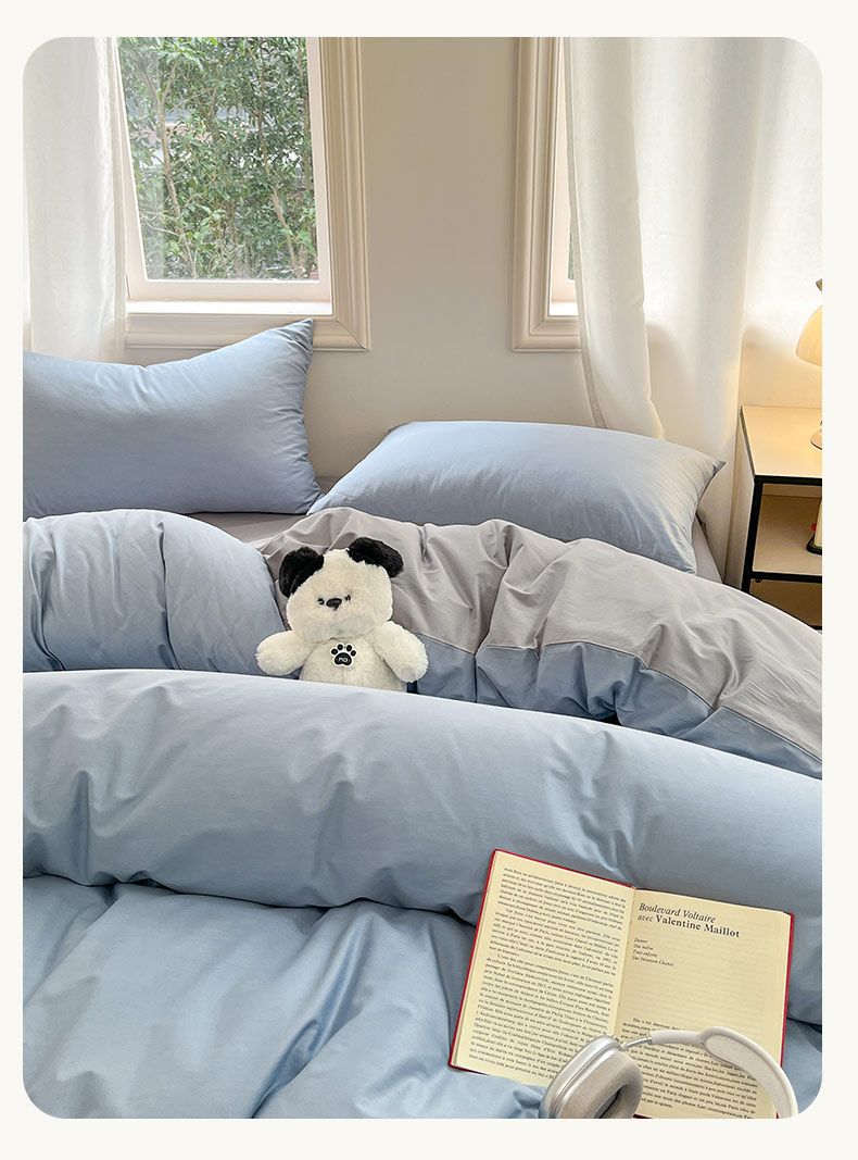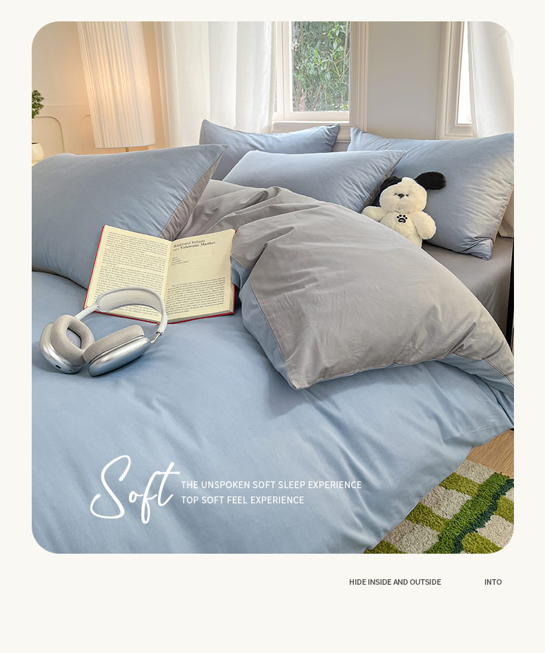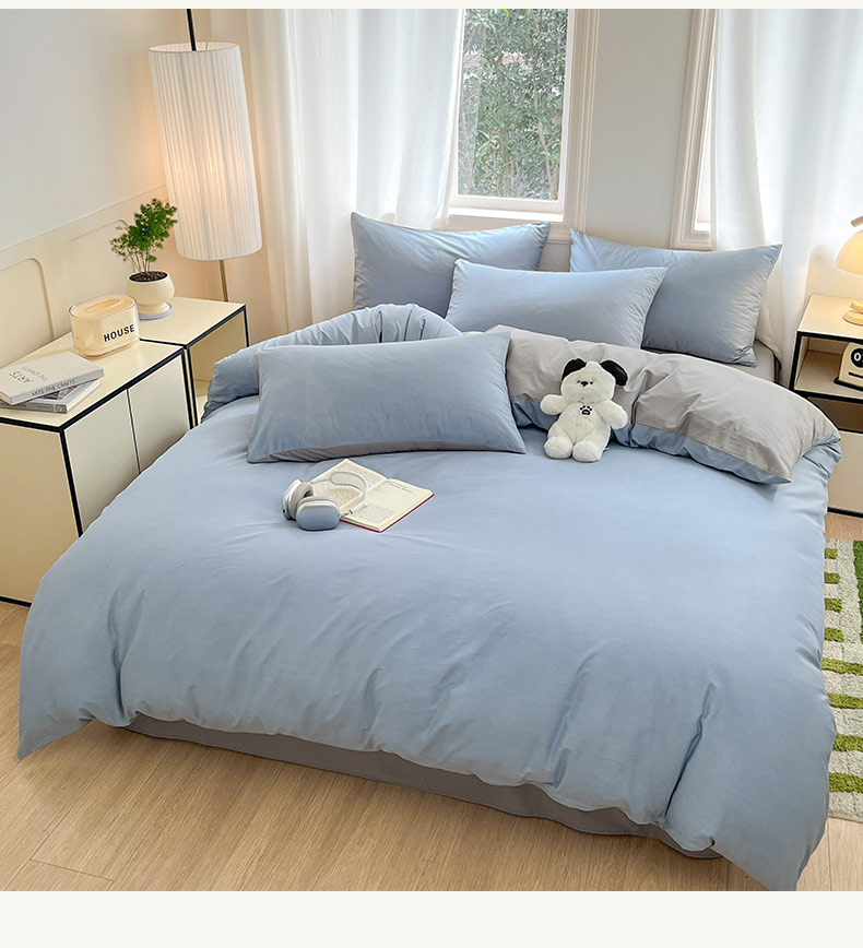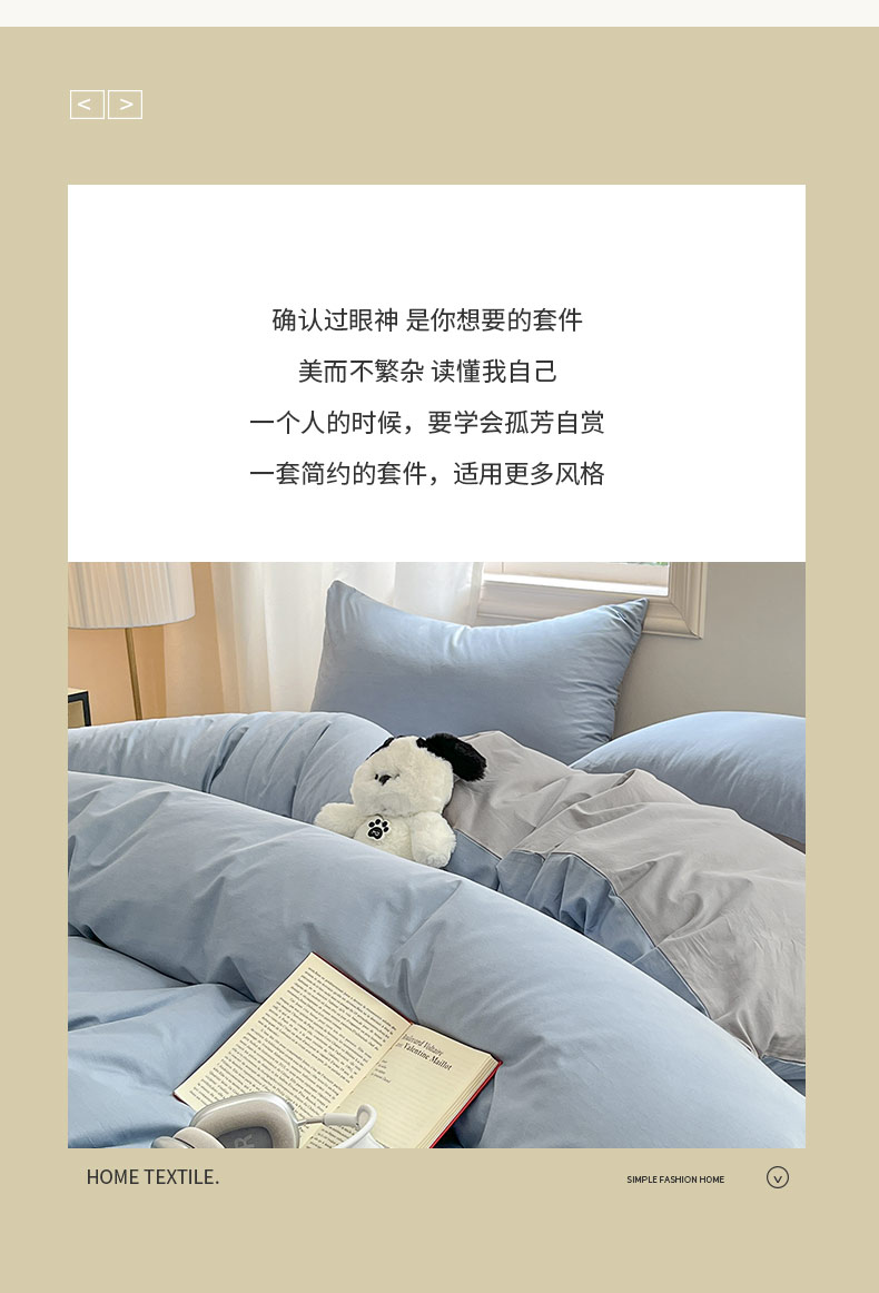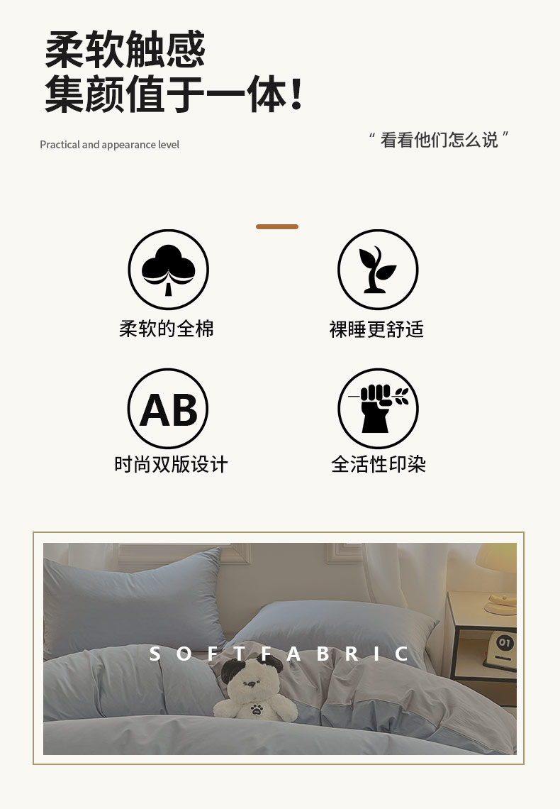 当前位置: 91家纺网 > 商品网购 > 床品套件 > 四件套 > 全棉普通四件套 > 泽西家纺2025新款A类全棉双拼纯色纯棉单被套 淡蓝+深灰