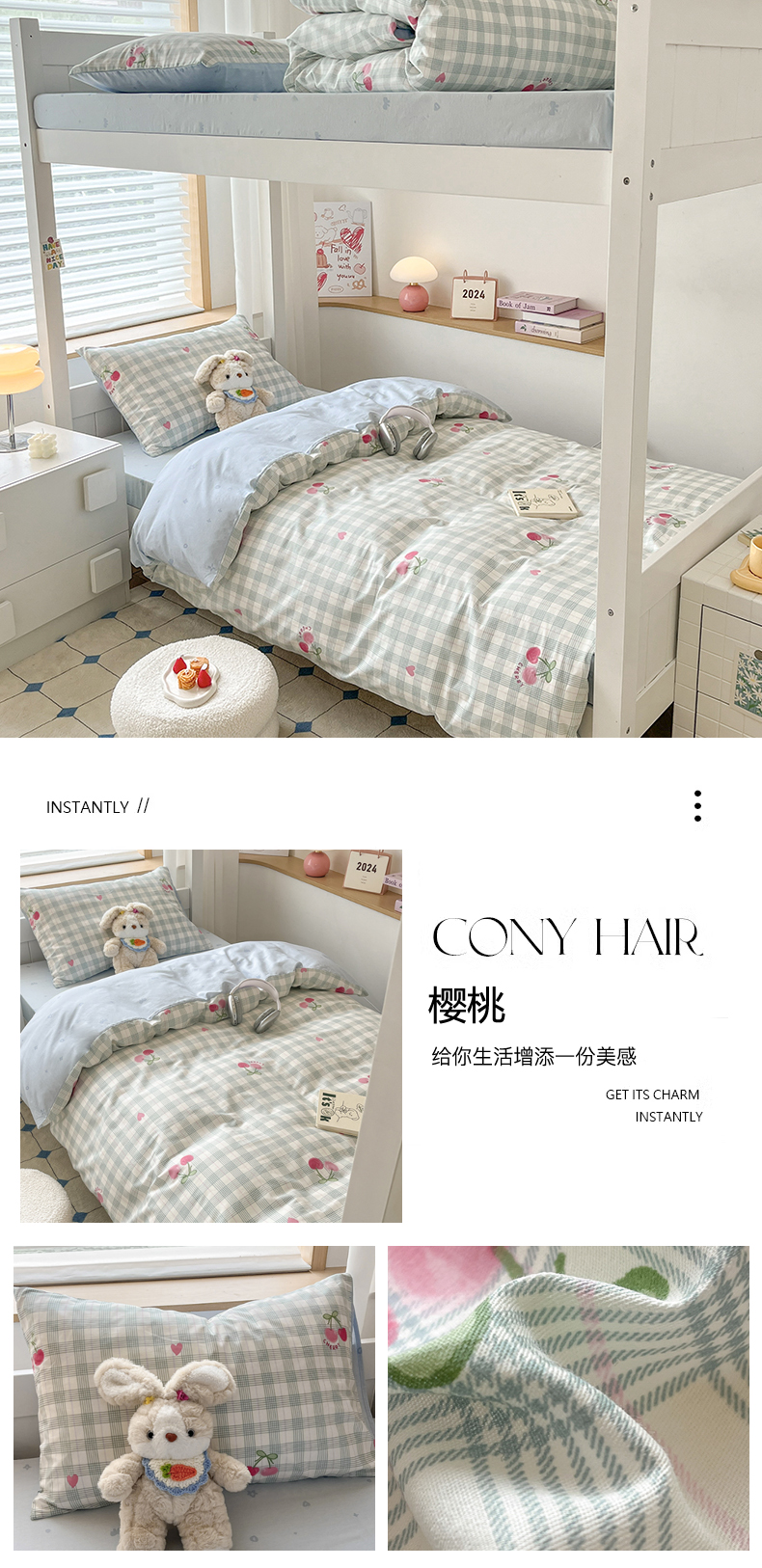(总)慕尚家纺 2025新款全棉印花学生三件套套件,艾米熊,彩色爱心狗,铃兰花,美食派对,萌宠乐园,书生猫咪,桃心狗,汪可爱,旺旺,樱桃