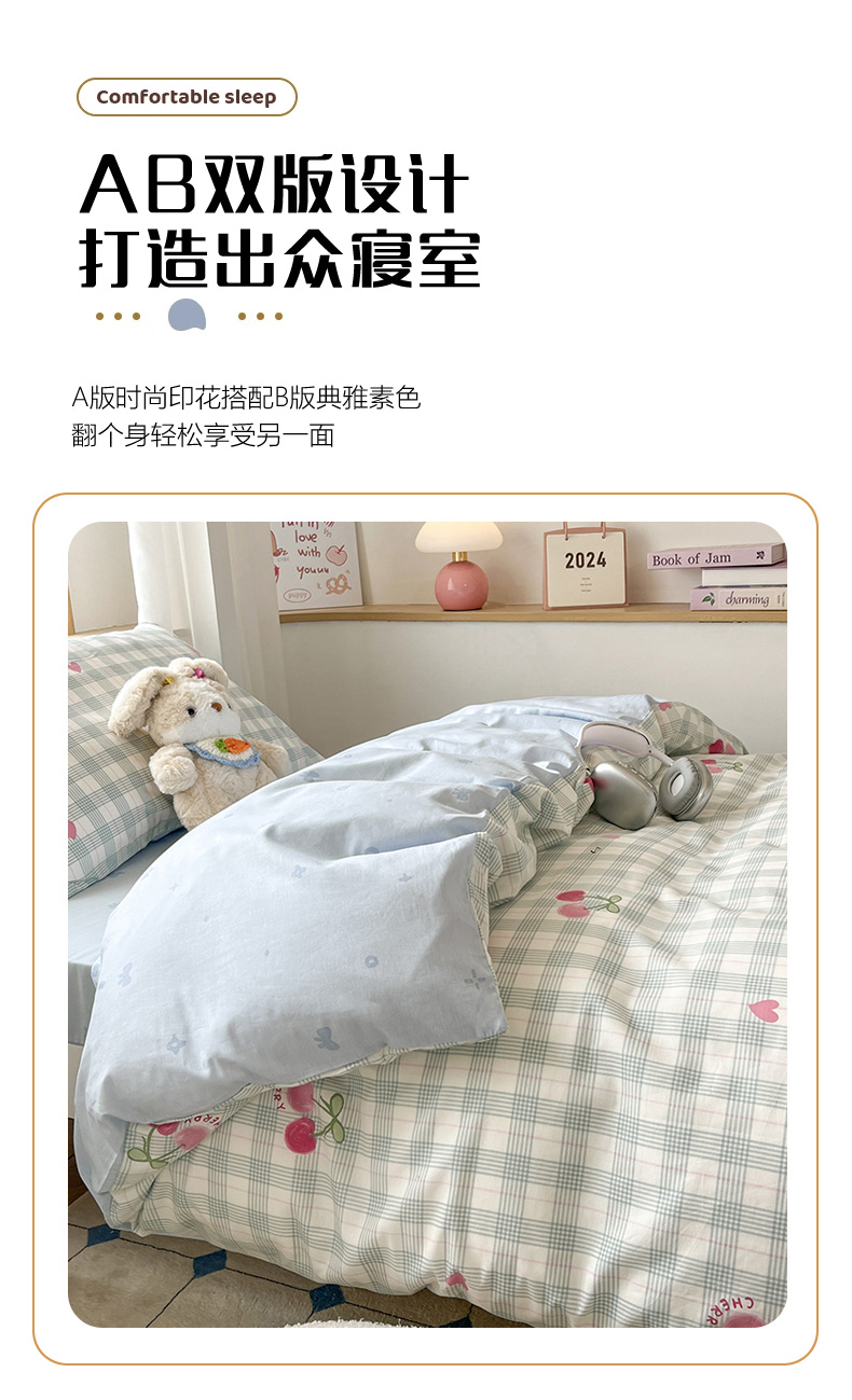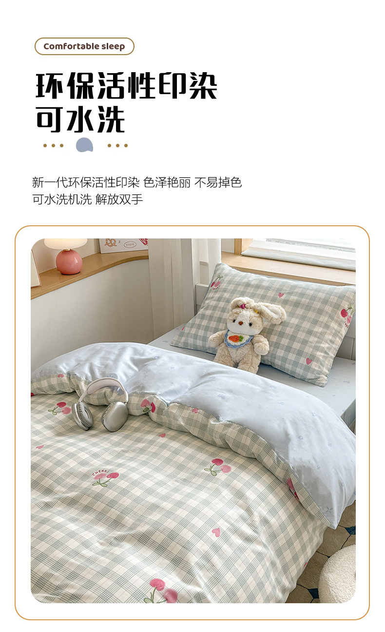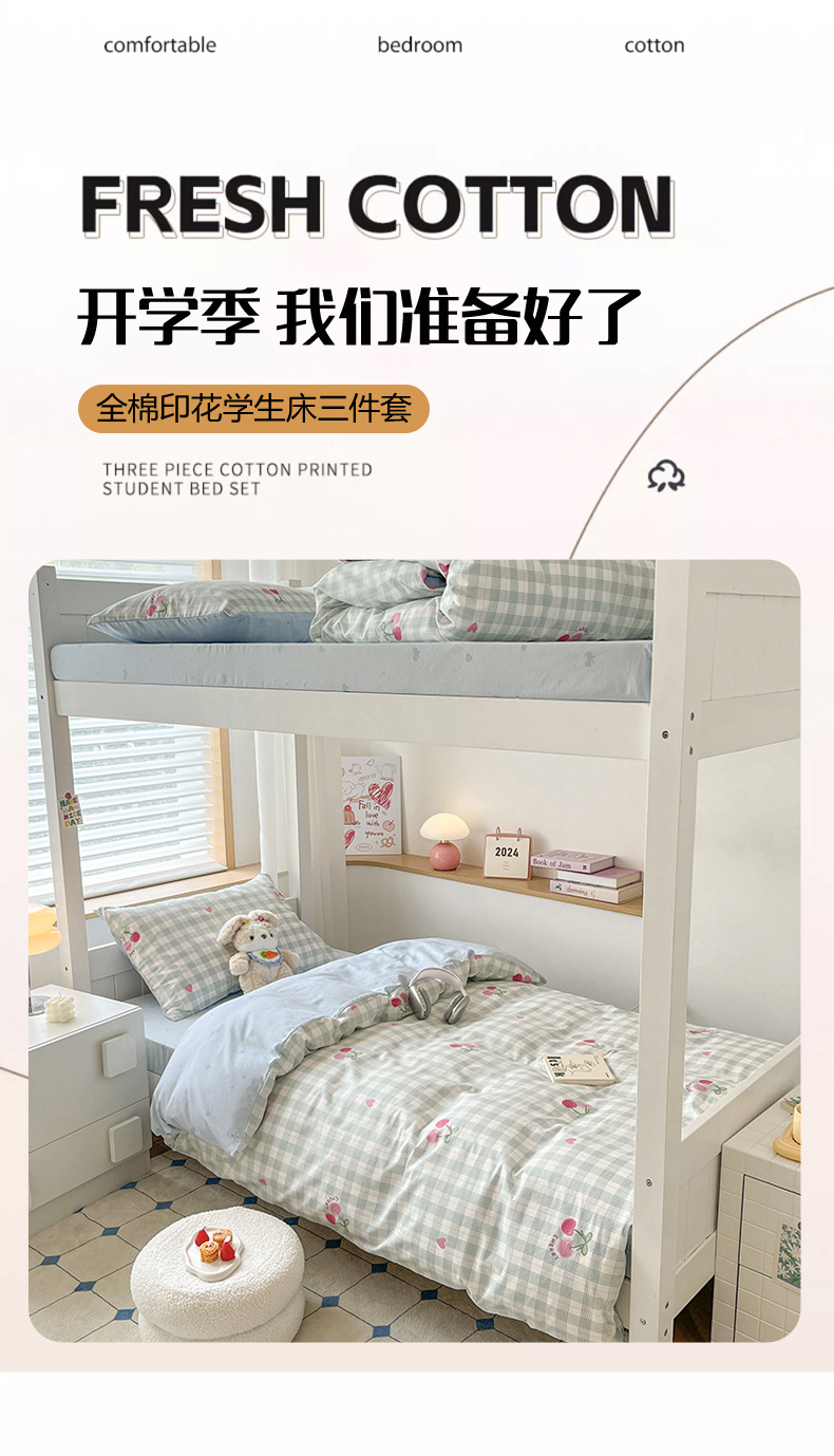 当前位置: 91家纺网 > 商品网购 > 床品套件 > 三件套 > 慕尚家纺 2025新款全棉印花学生三件套套件 樱桃