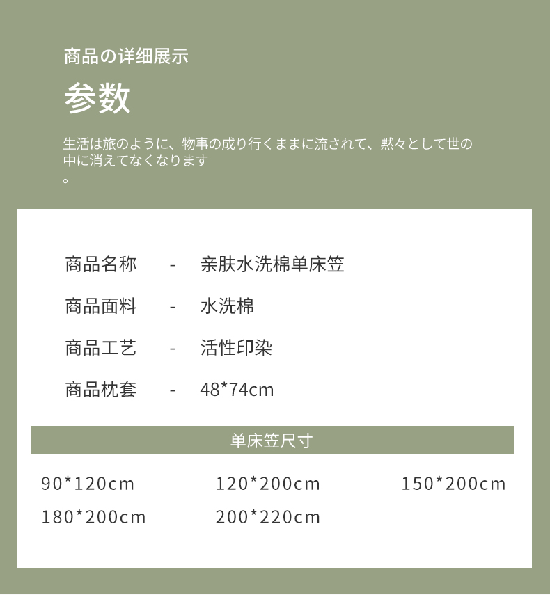 商品名称:恬澳家纺 2025新款森系水洗棉无印风单床笠场景三 森系-浅草绿