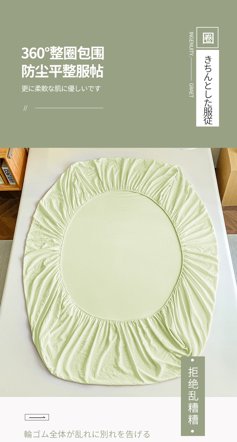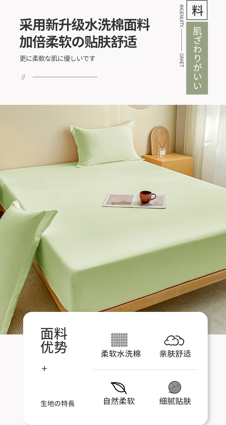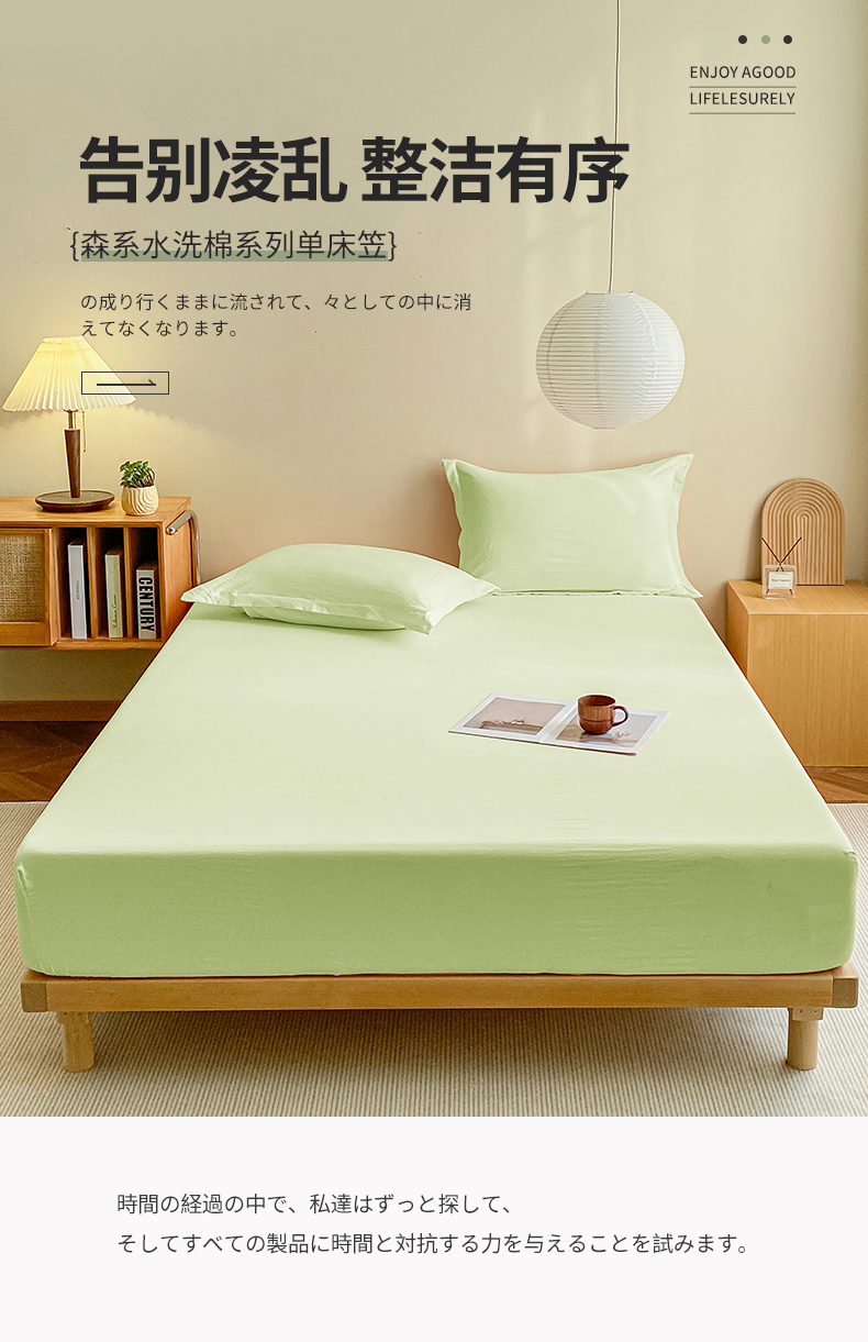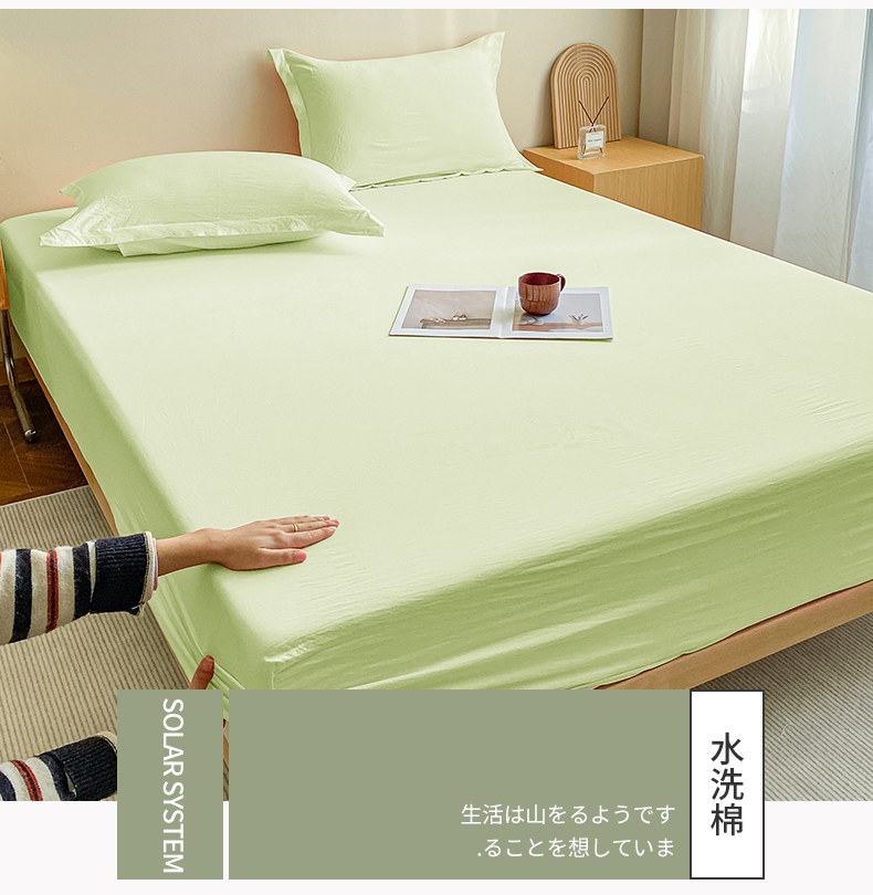 恬澳家纺 2025新款森系水洗棉无印风单床笠场景三 森系-浅草绿
