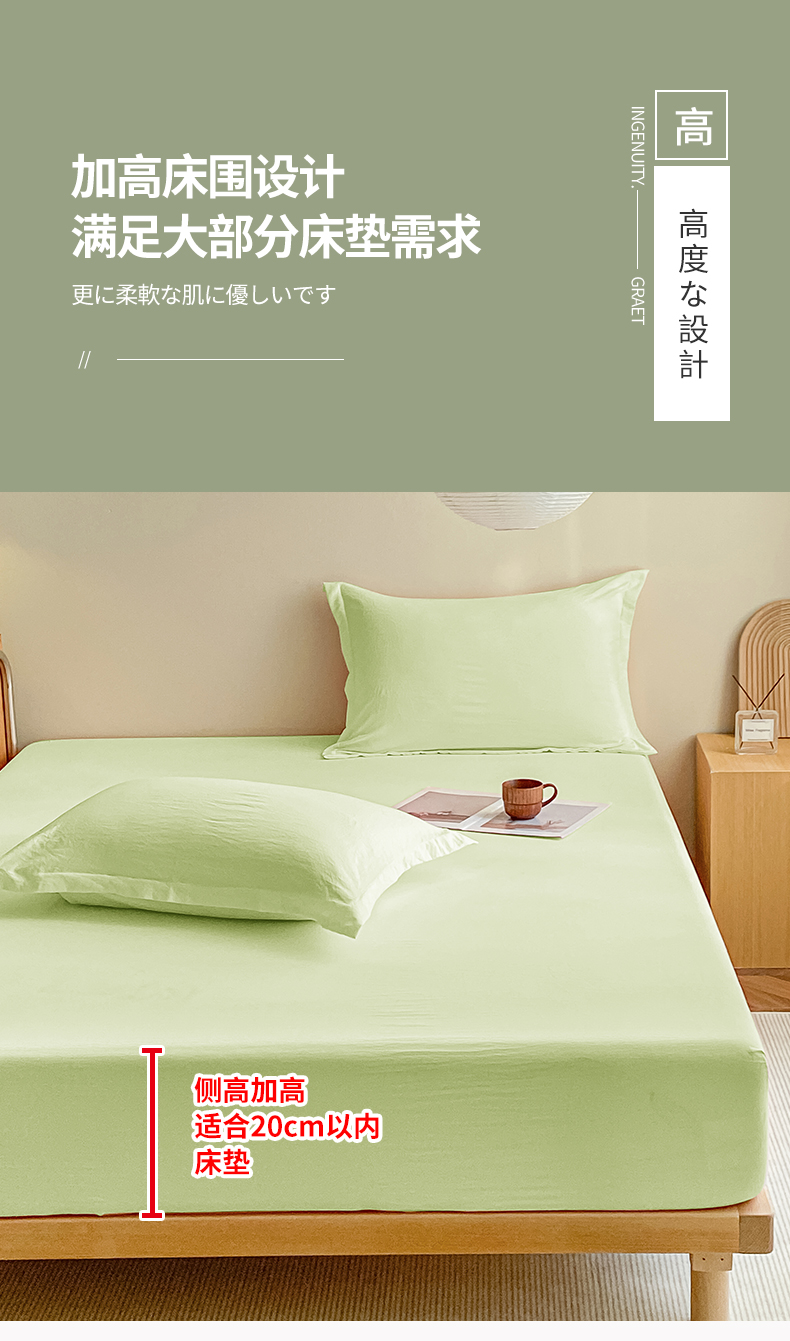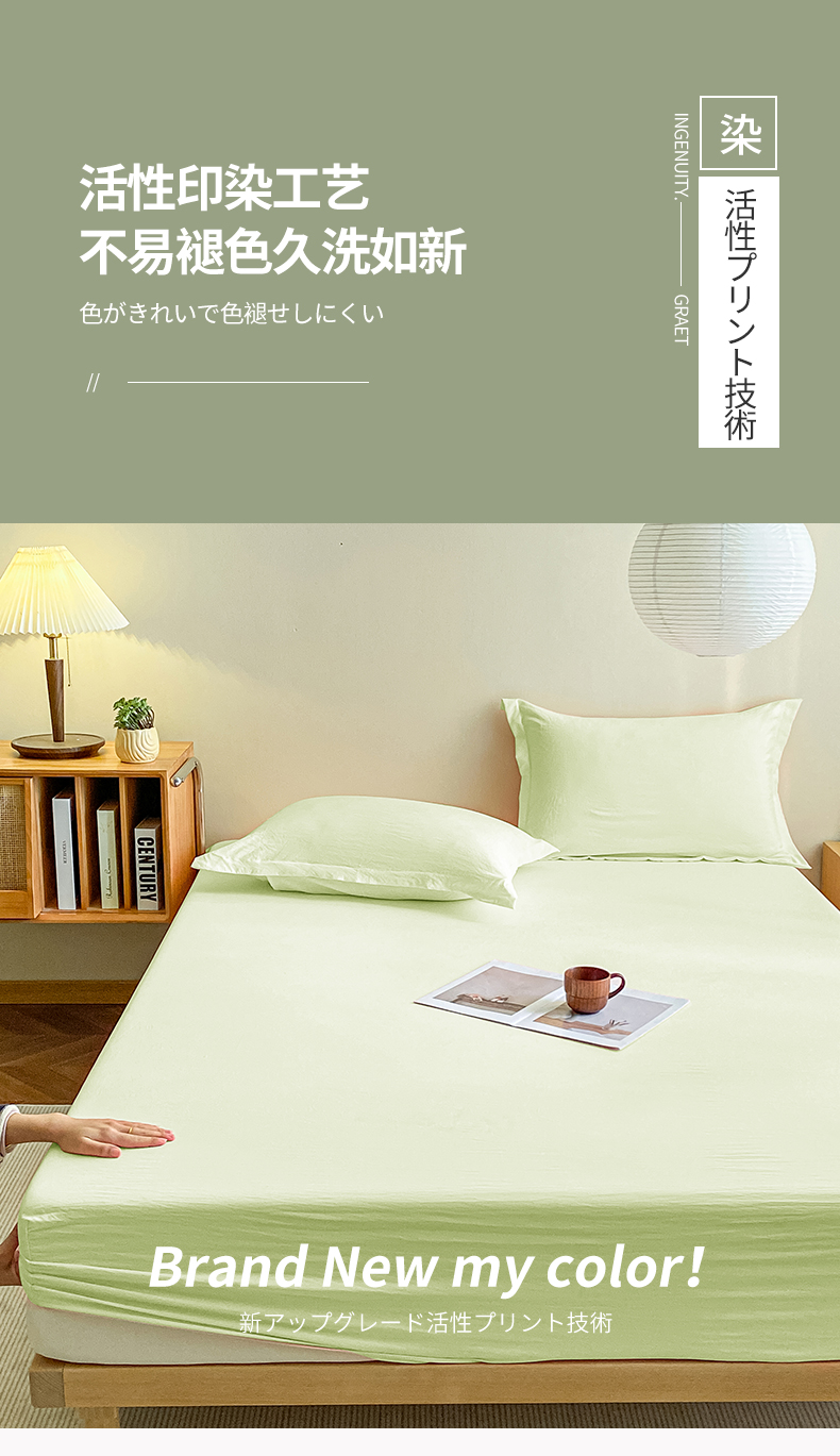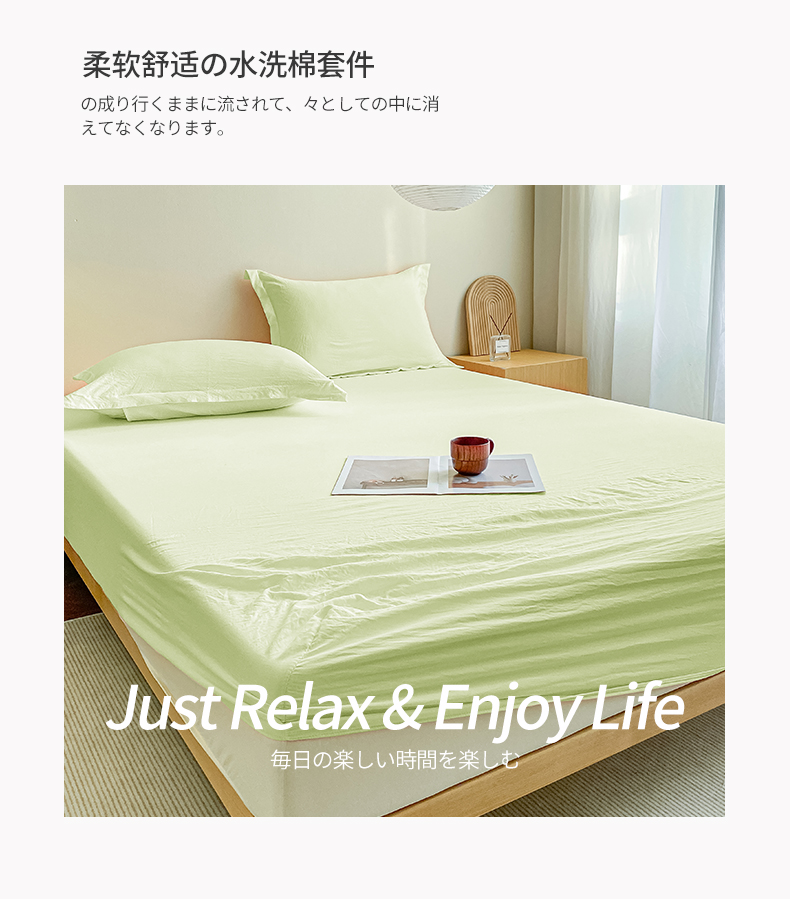 恬澳家纺 2025新款森系水洗棉无印风单床笠场景三 森系-浅草绿