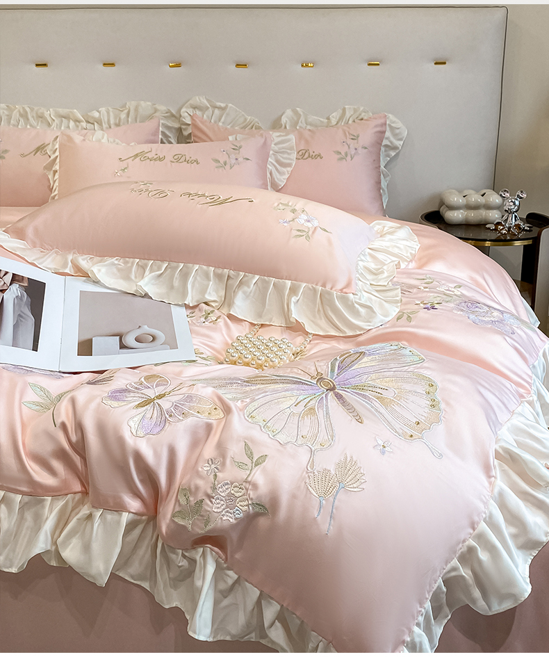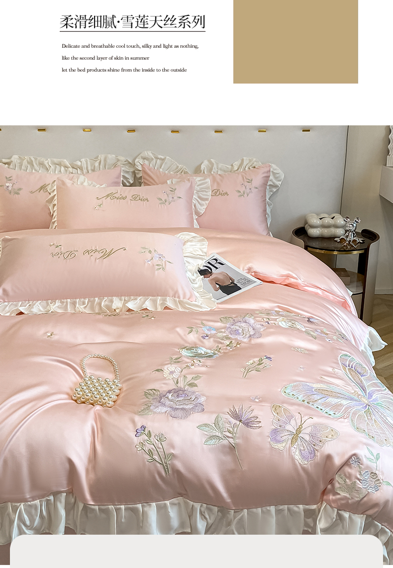 (总)爱家(原缔乐家纺) 2023新款超柔雪莲天丝刺绣四件套-蝴蝶梦系列,蝴蝶梦-公主粉,蝴蝶梦-奶昔白,蝴蝶梦-奶油绿,蝴蝶梦-天空兰
