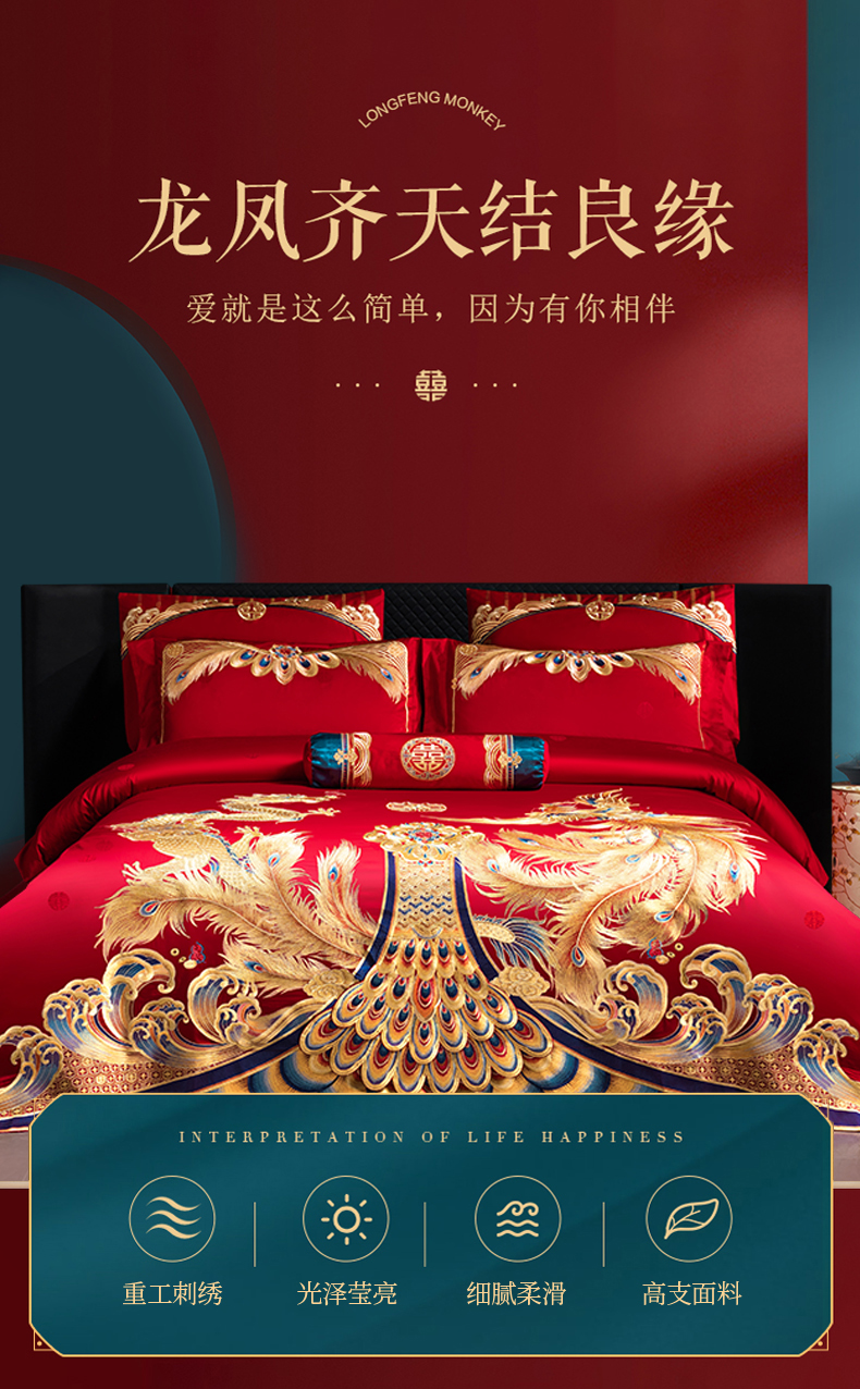 当前位置: 91家纺网 > 商品网购 > 床品套件 > 四件套 > 婚庆四件套 > 美娘阁 2025新款A版长绒棉贡段B版长绒棉贡段刺绣婚庆多件套 祥龙喜凤