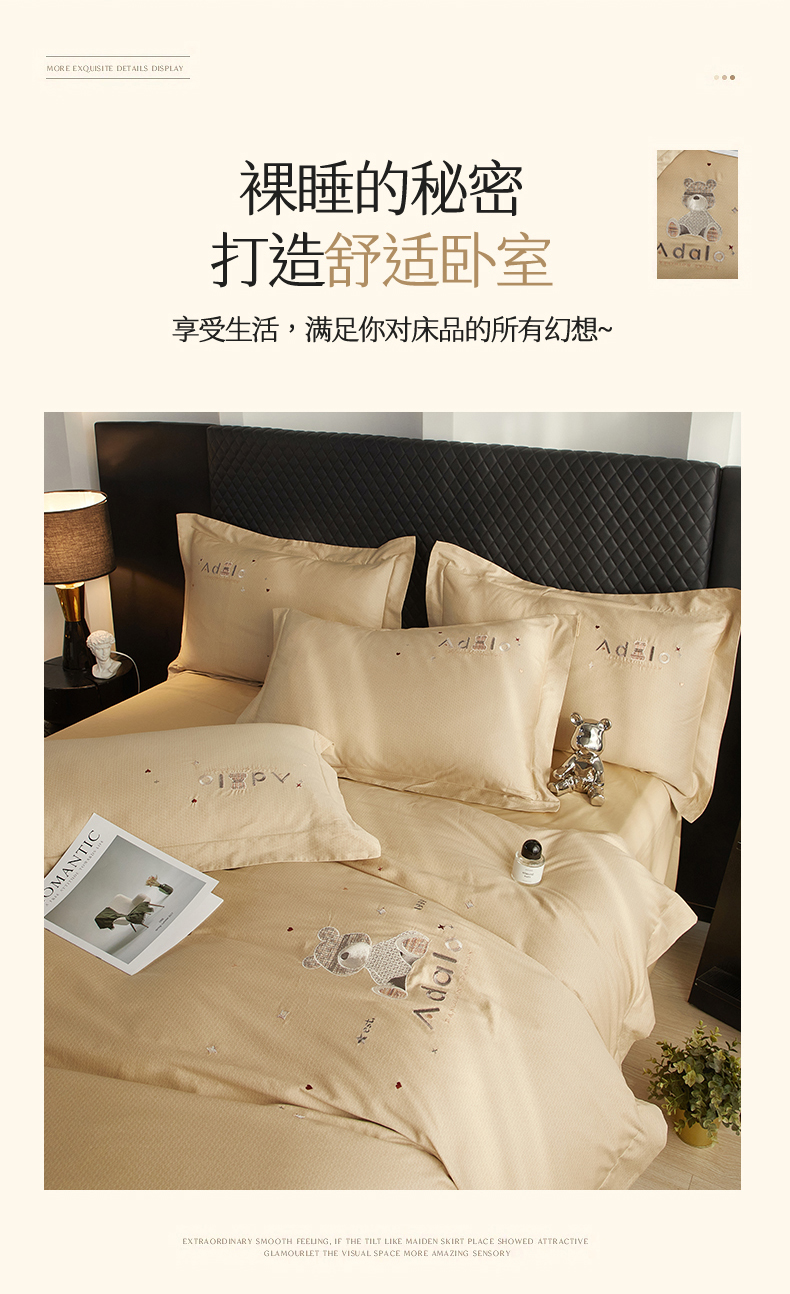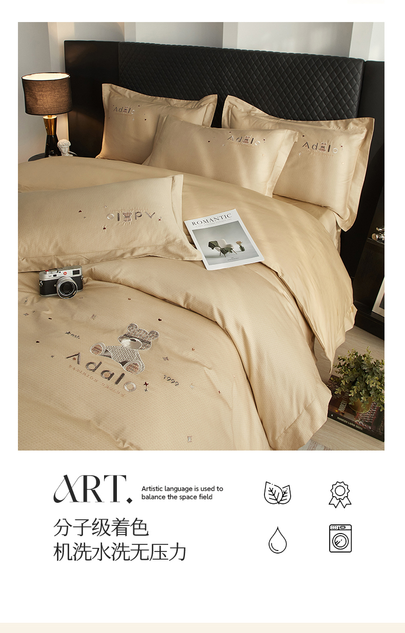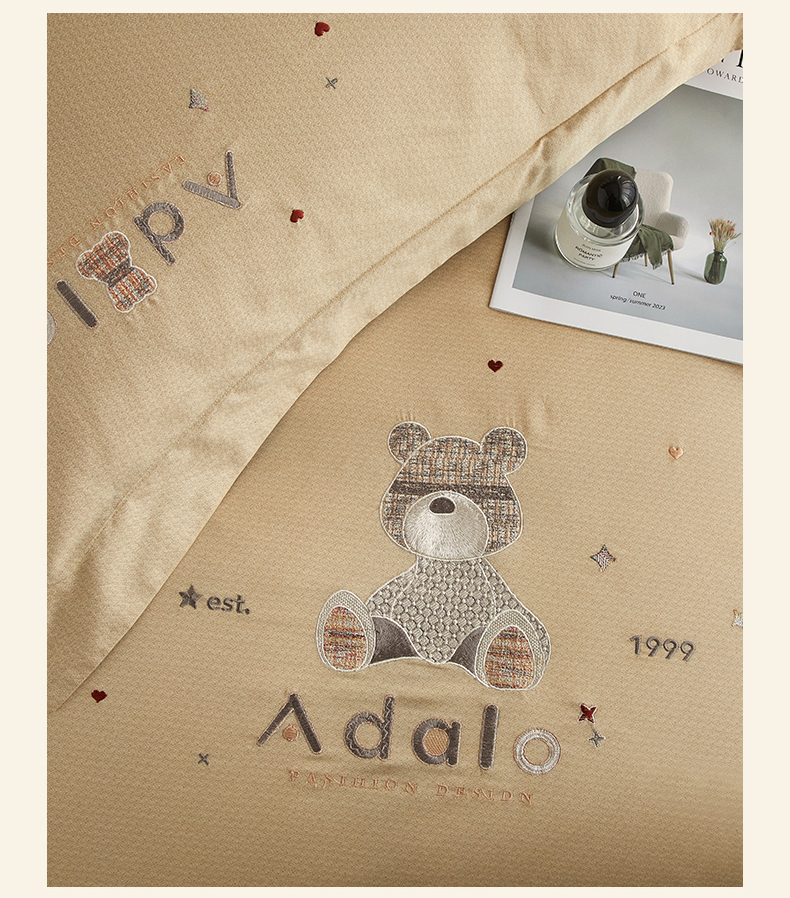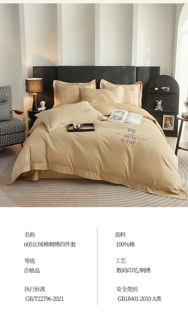商品名称:品乐家纺 2025新款60支长绒棉刺绣款AB版四件套-维尼系列 维尼 流光金