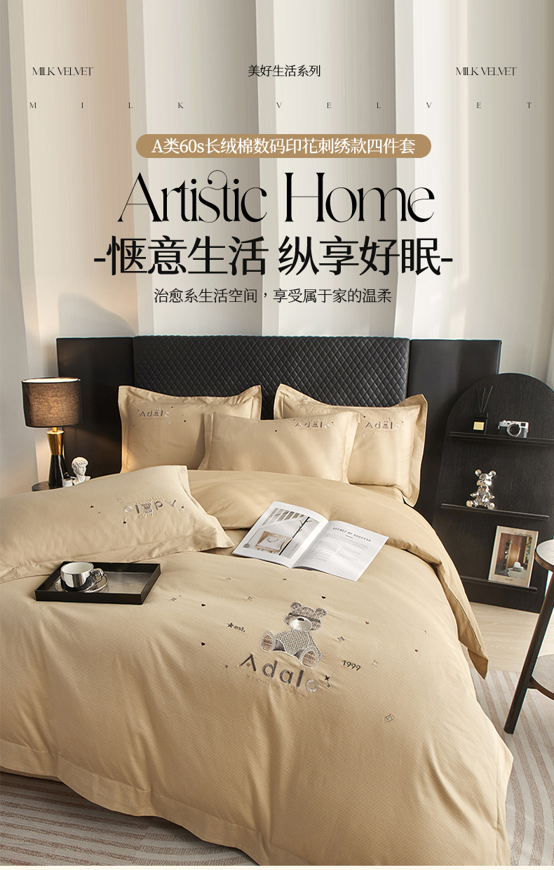 (总)品乐家纺 2025秋冬新款糯米绒缇肤绒印花贝壳边四件套,卡拉-灰,开心熊-米,南笙-咖,南笙-绿,浅夏-咖,素影-酒红,素影-紫,小樱桃-酒红,叶茂-驼