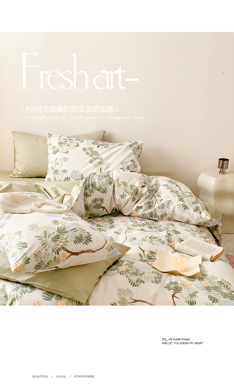 (总)帅露家纺 2025新款A类棉麻活性印染四件套系列,花间意境-红,花间意境-灰,花香满园-红,素锦-咖,香叶时代,映霜-灰,映霜-绿