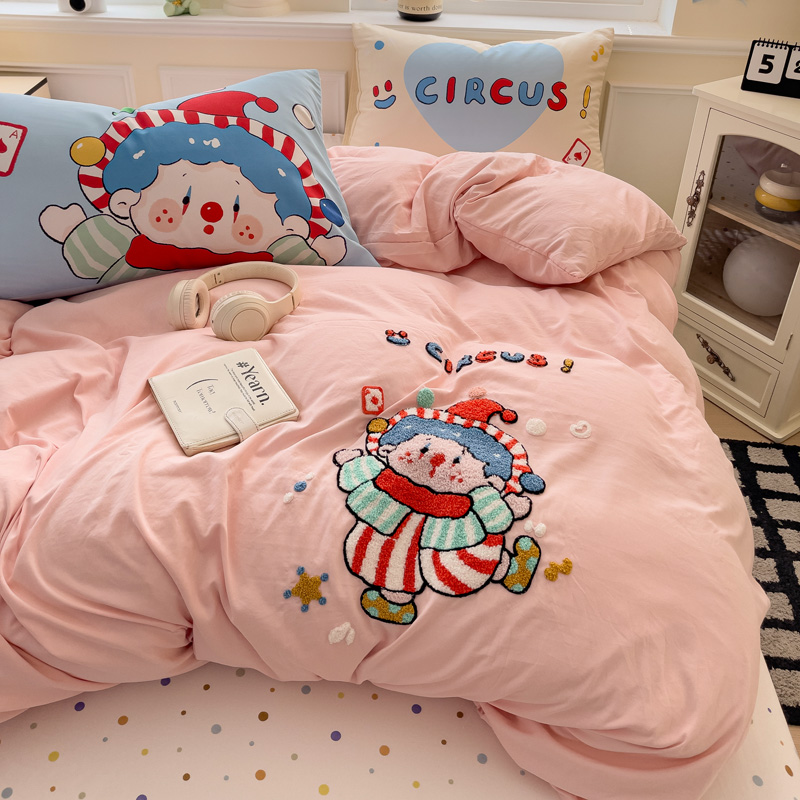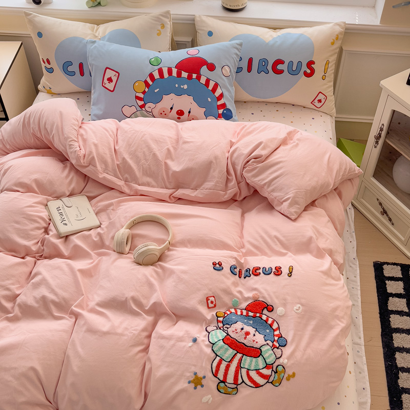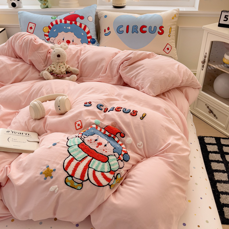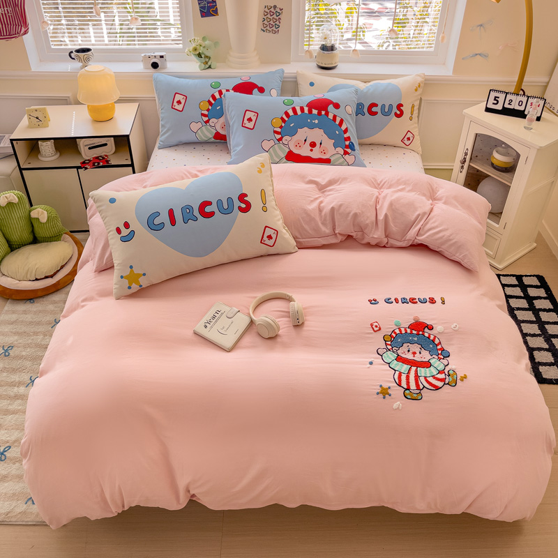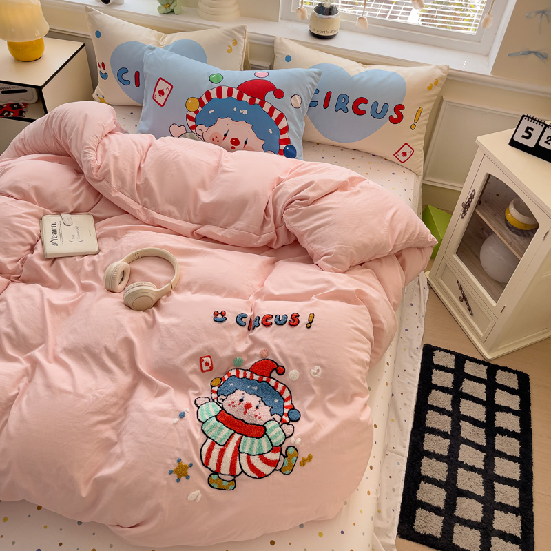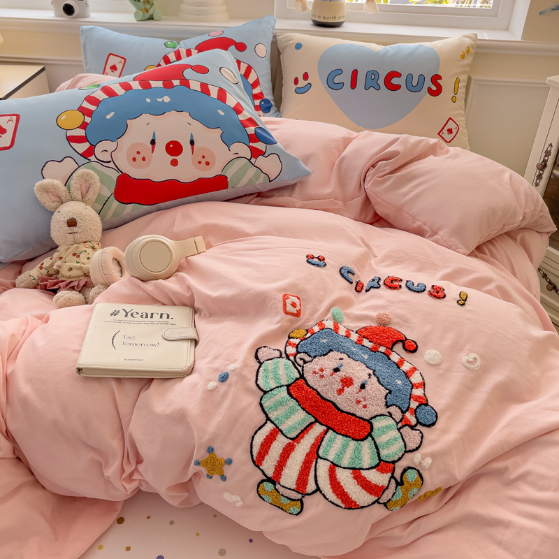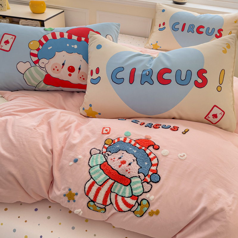 当前位置: 91家纺网 > 商品网购 > 床品套件 > 四件套 > 全棉普通四件套 > 尤米【提供买家秀】2025新款水洗棉大版卡通毛巾绣四件套 马戏团-粉