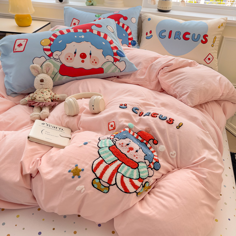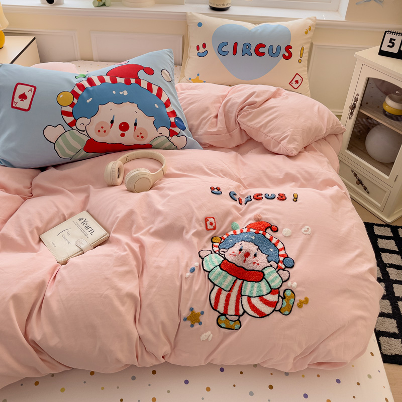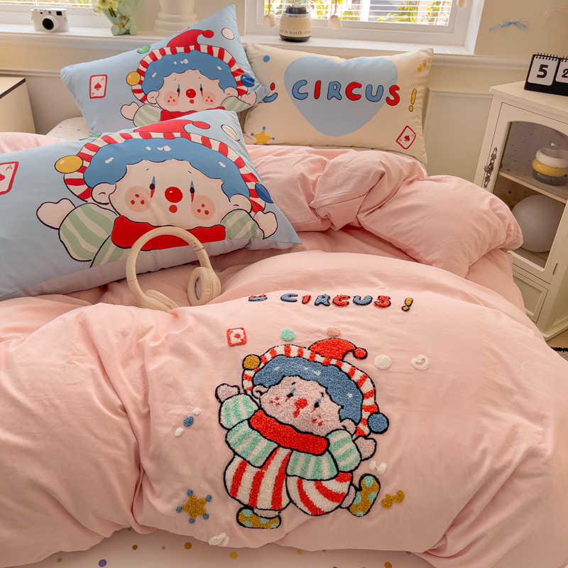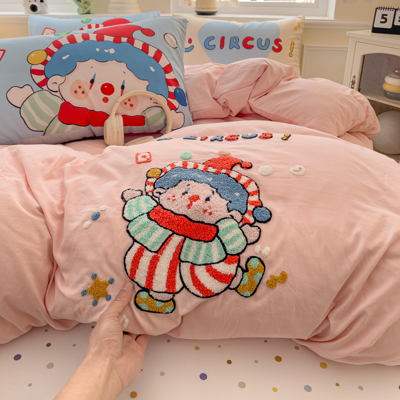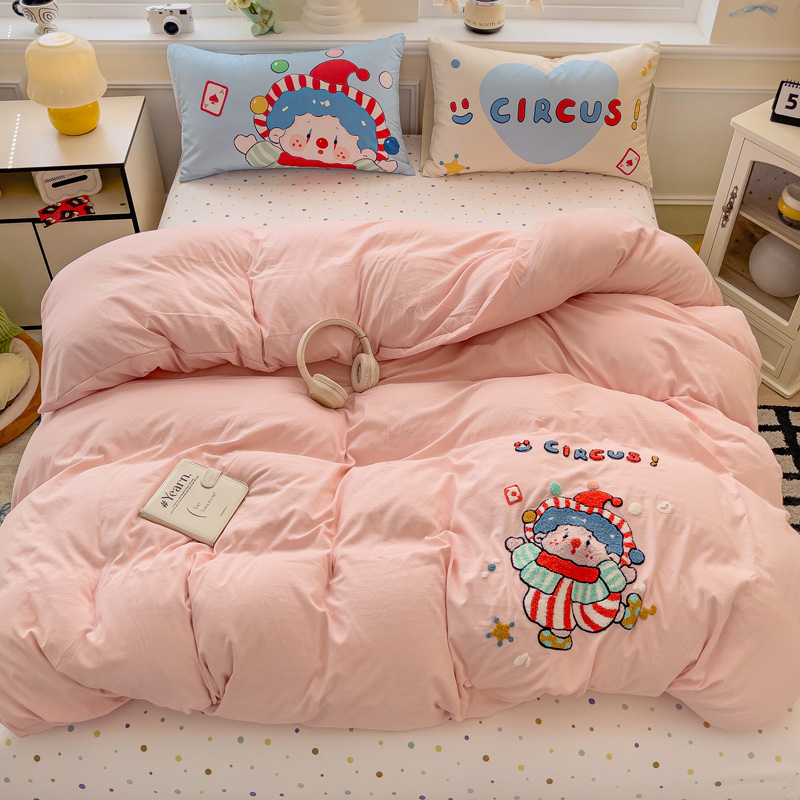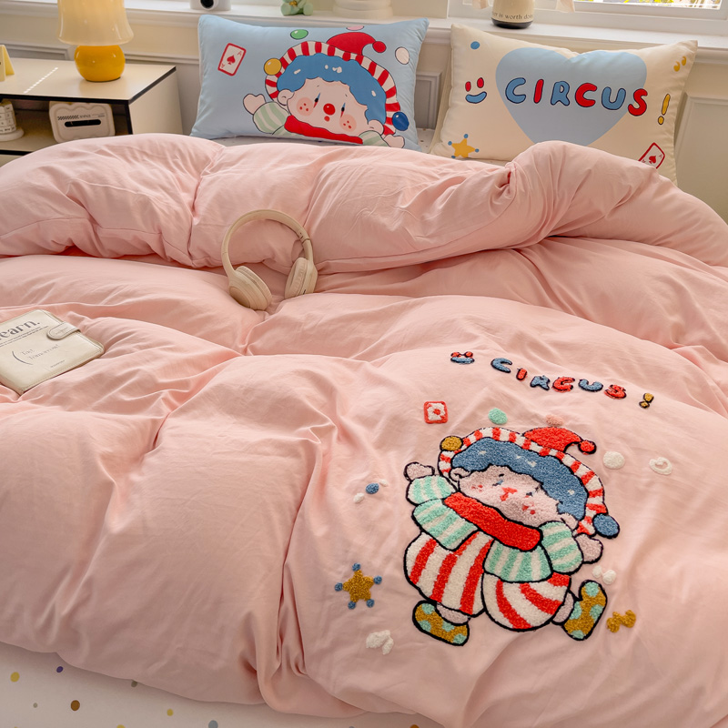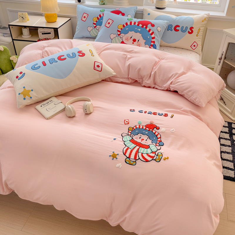 当前位置: 91家纺网 > 商品网购 > 床品套件 > 四件套 > 全棉普通四件套 > 尤米【提供买家秀】2025新款水洗棉大版卡通毛巾绣四件套 马戏团-粉