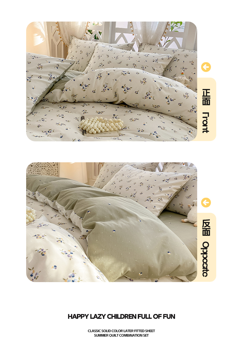商品名称:帅露家纺 2025开春新品全棉喷气13070小清新印花纯棉全棉四件套 扶摇