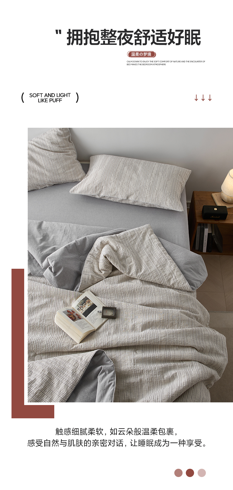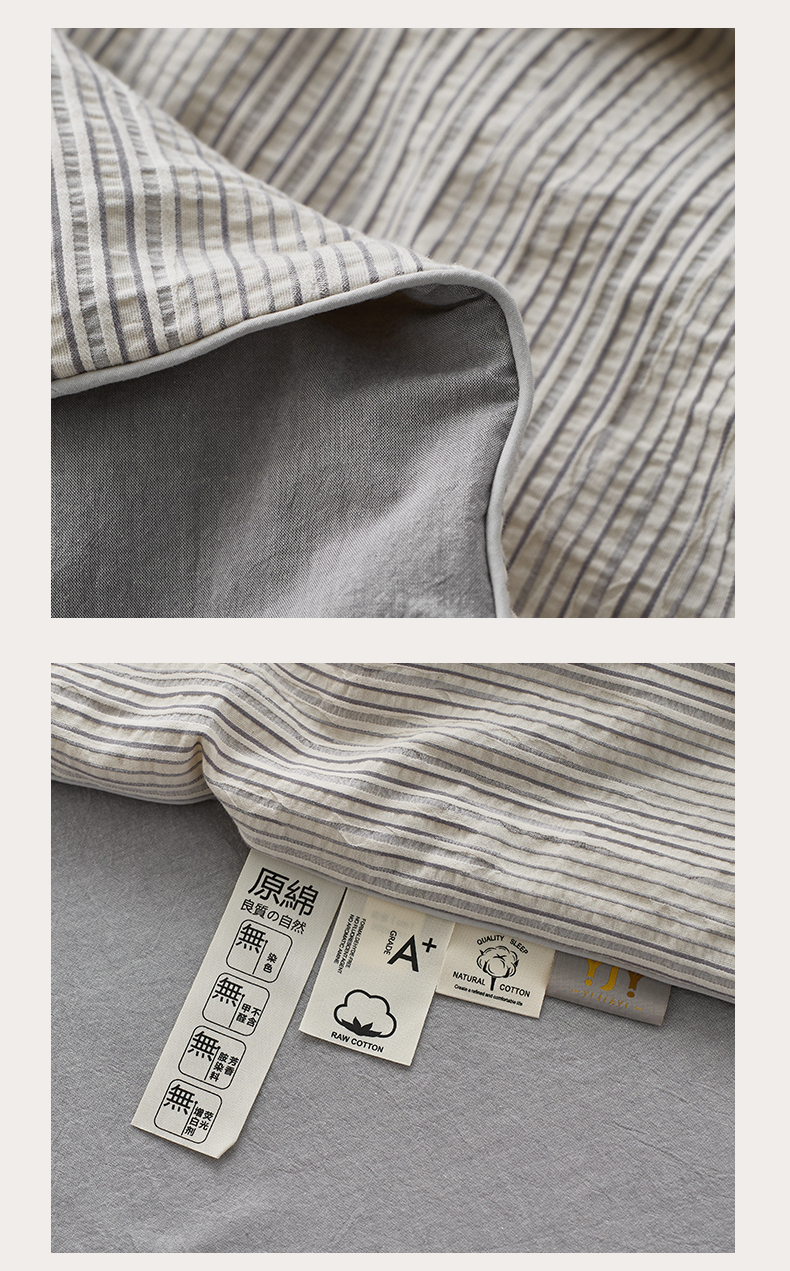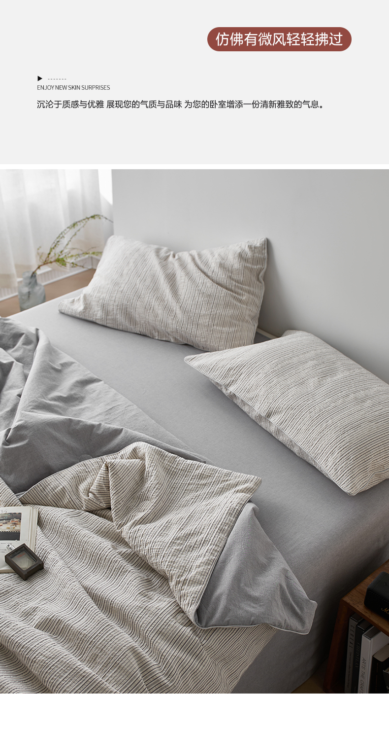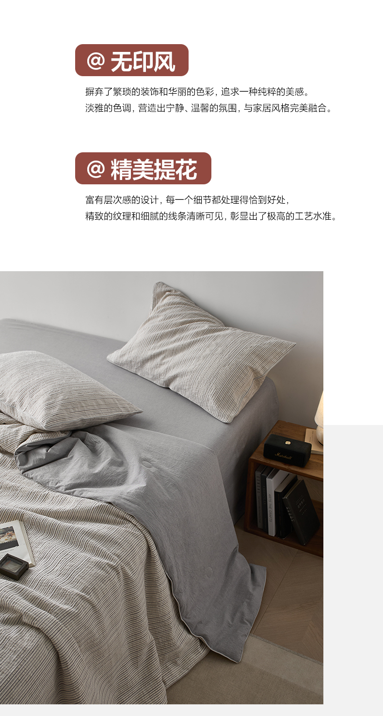 • 91家纺网 家纺一手货源 找家纺 一加一 2025新款水洗色织提花全棉三层纱无印风蚕蛹蛋白夏被四件套 元气蒙蒙灰