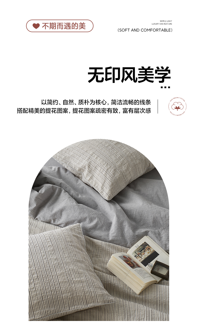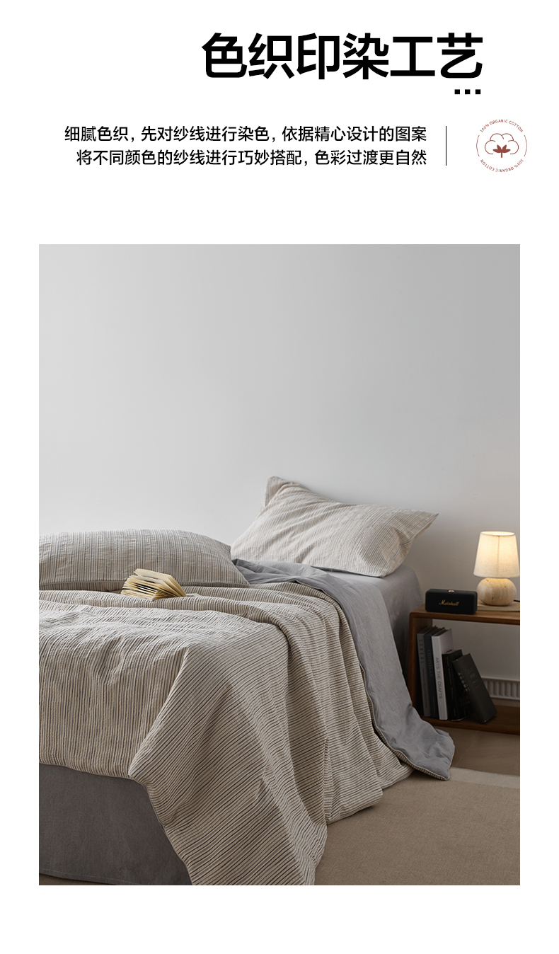 一加一 2025新款水洗色织提花全棉三层纱无印风蚕蛹蛋白夏被四件套 元气蒙蒙灰
