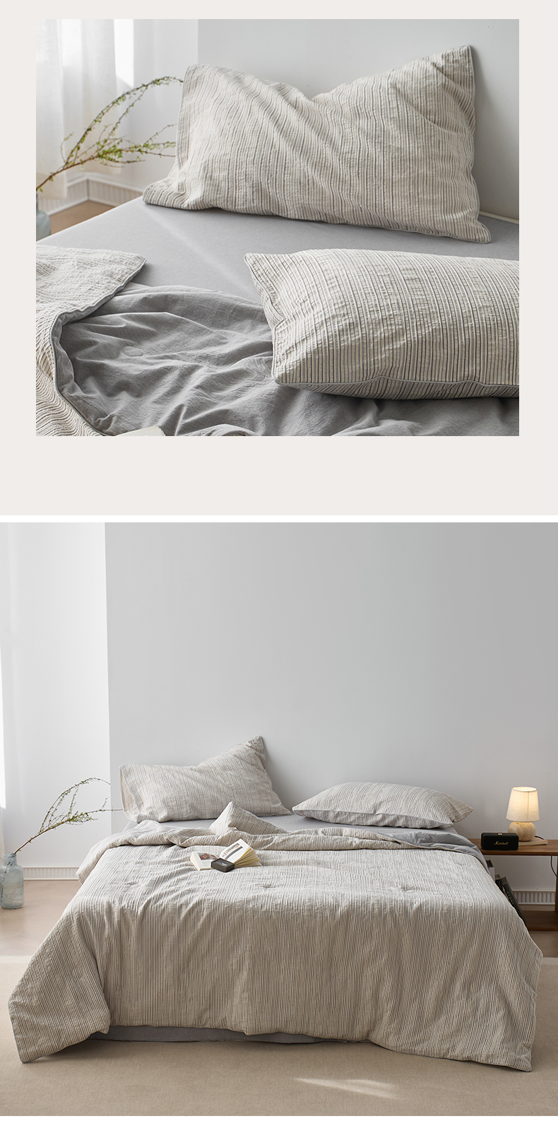 当前位置: 91家纺网 > 商品网购 > 被子 > 夏被 > 一加一 2025新款水洗色织提花全棉三层纱无印风蚕蛹蛋白夏被四件套 元气蒙蒙灰
