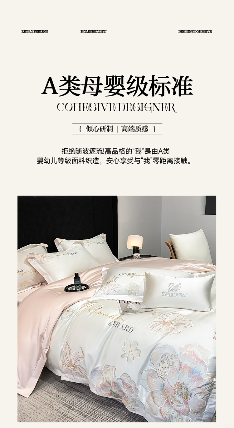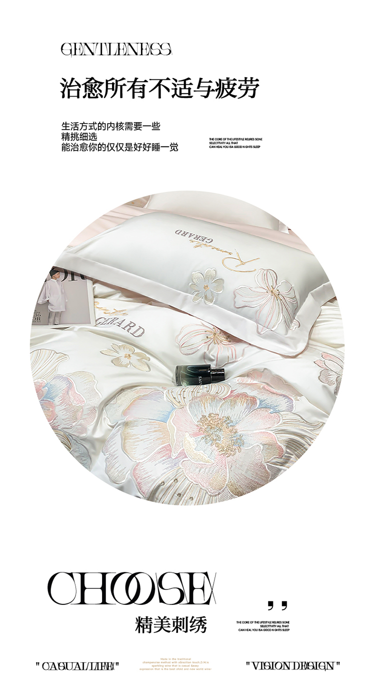 当前位置: 91家纺网 > 商品网购 > 床品套件 > 四件套 > 长绒棉四件套 > 春夏新款50*50S贡缎长绒棉刺绣四件套高档礼盒纯棉床单床笠 白拼粉-花漾-贡缎长绒棉