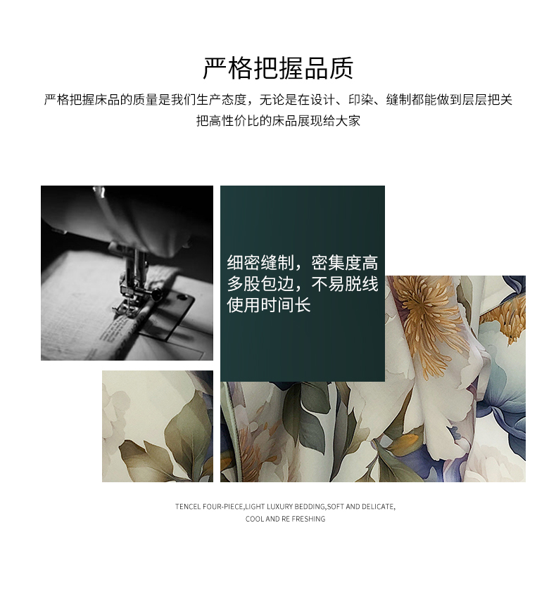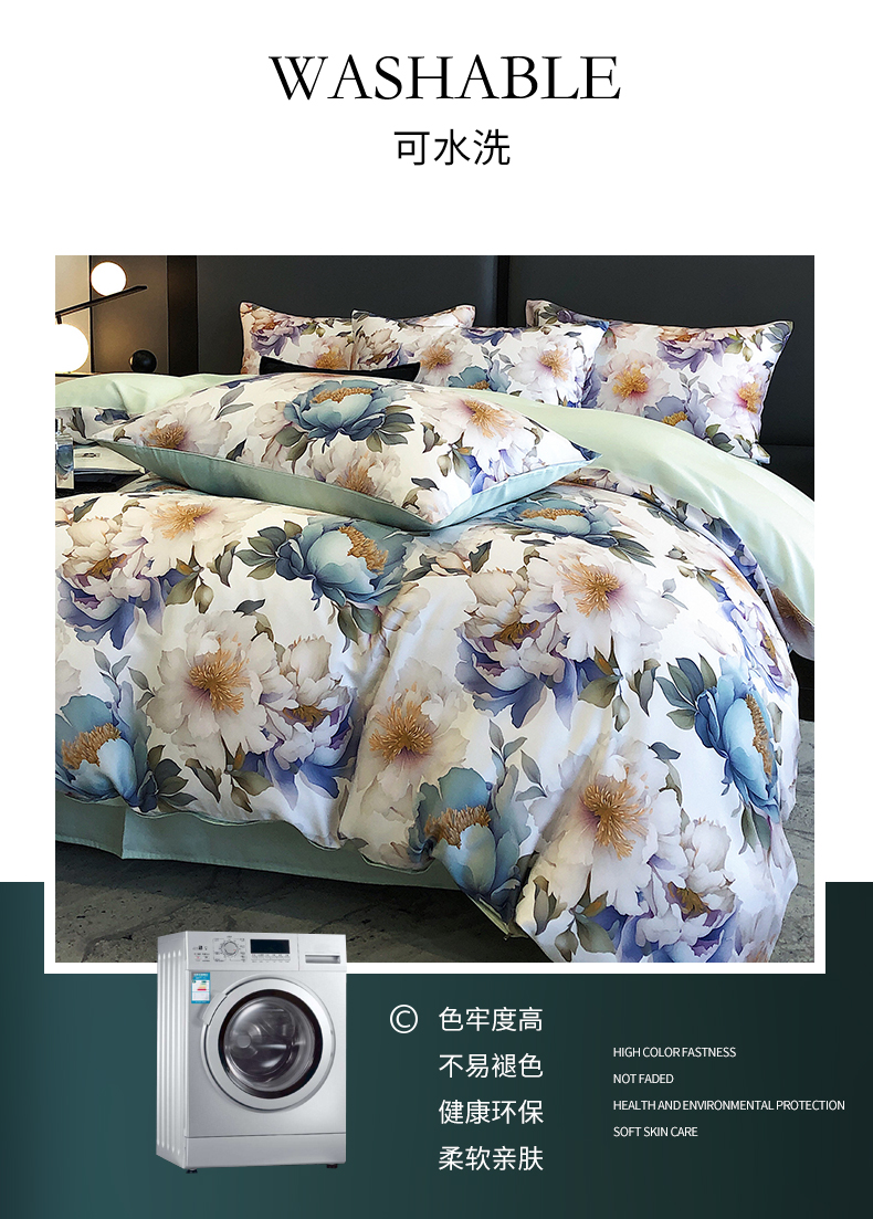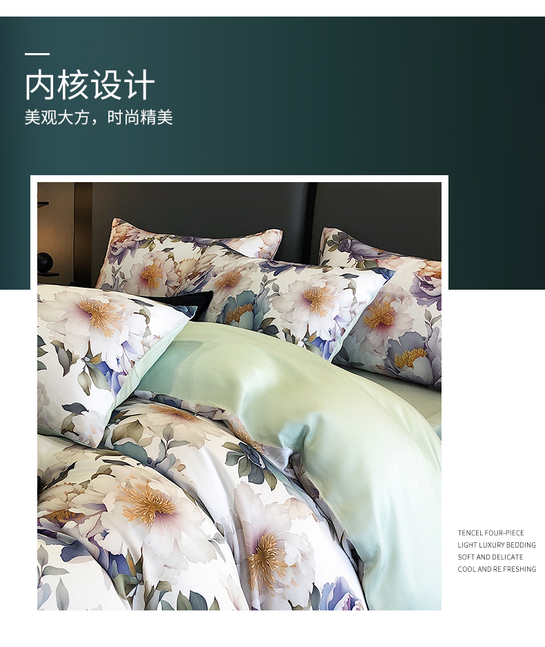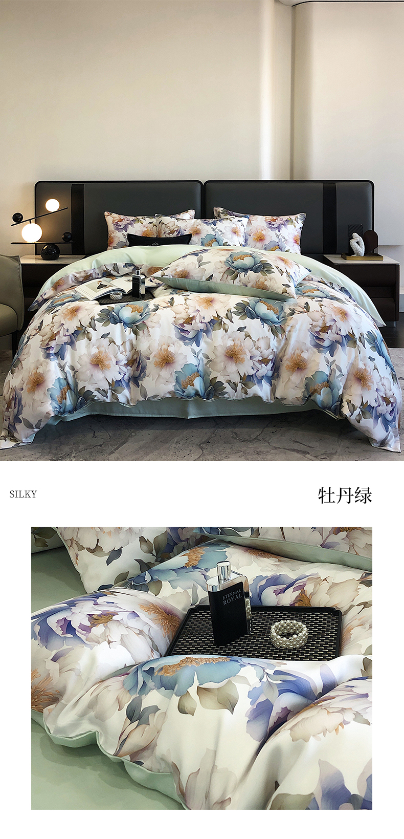 商品名称:立奥被业 2025年新款100%兰精天丝四件套天丝数码印花四件套 牡丹绿