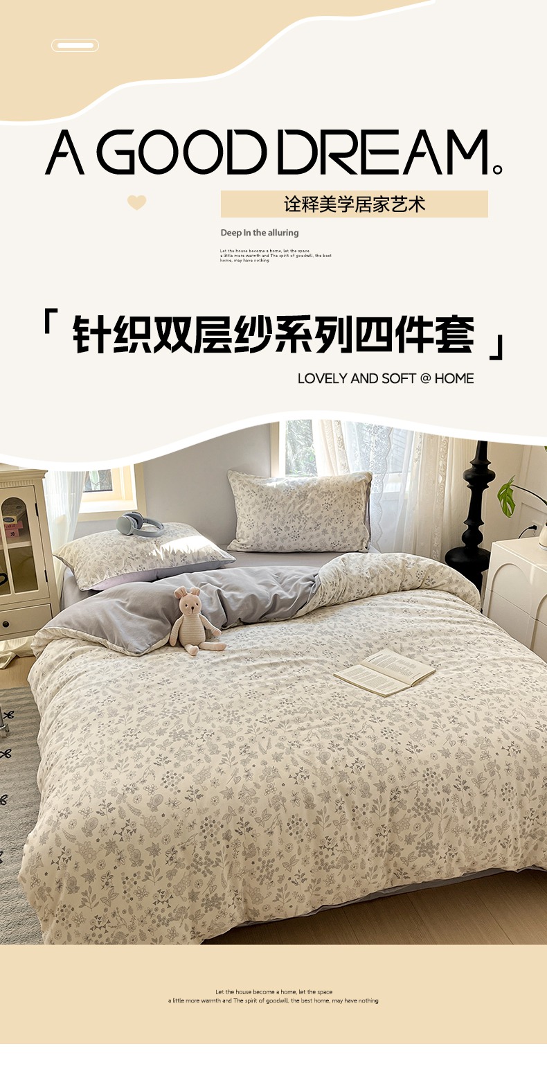 (总)贝拉梦家纺 2025爆款新款A类有氧针织双层纱四件套,艾莎,巴比伦米,百利甜,冰岛,伯爵夫人,弗洛伊德,花火,南法,软萌萌,瑞莎,生如夏花,素颜,塔莎的花园,晚秋,威斯汀,紫萱