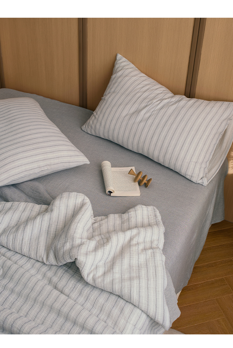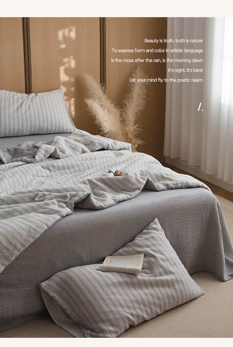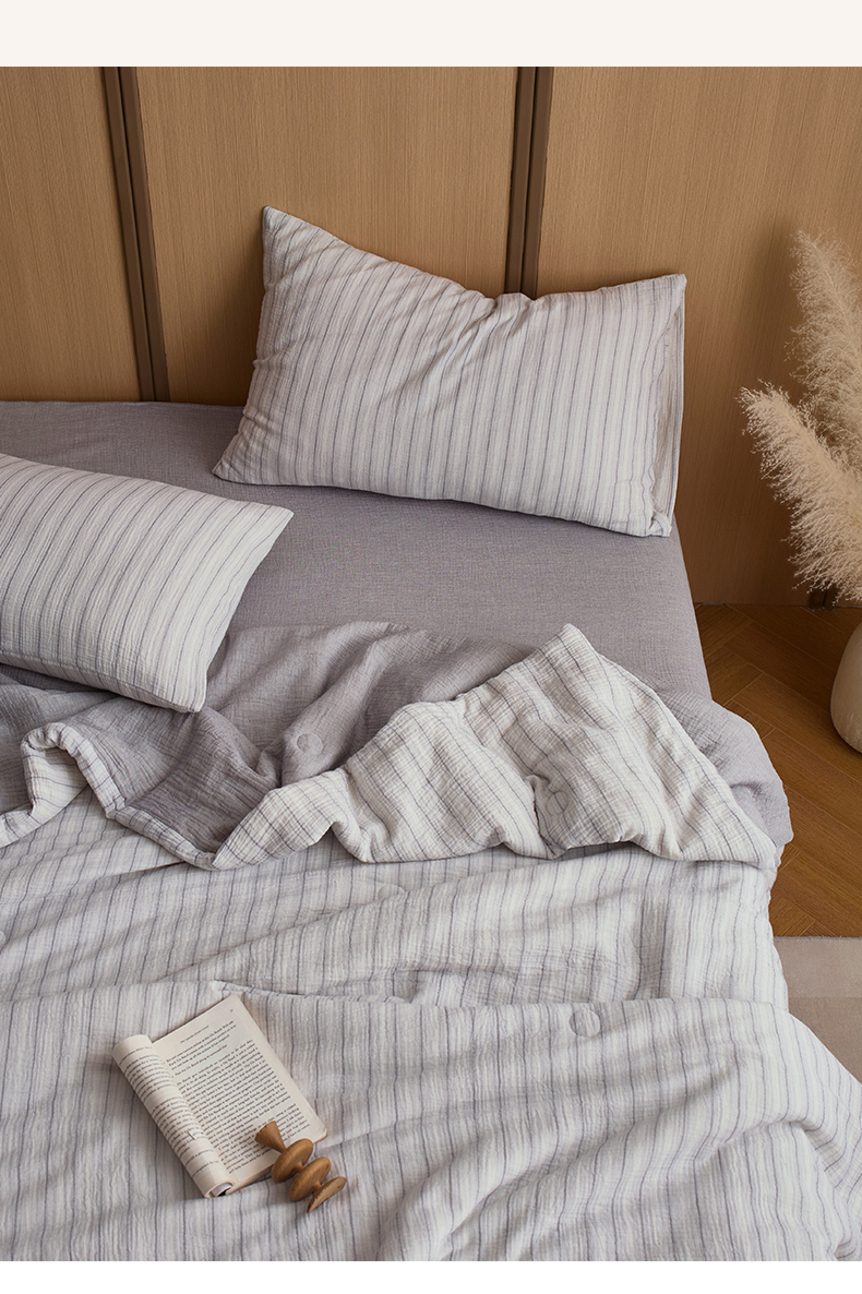 当前位置: 91家纺网 > 商品网购 > 被子 > 夏被 > 一加一 2025新款A类母婴级水洗全棉无印双层皱皱纱牛奶蛋白夏被四件套 小半浅灰