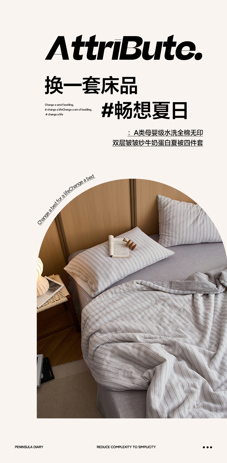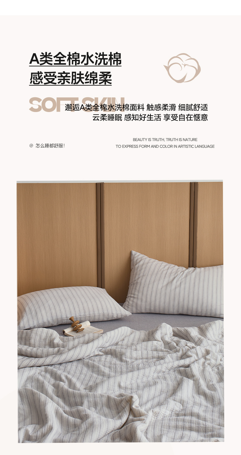 • 91家纺网 家纺一手货源 找家纺 一加一 2025新款A类母婴级水洗全棉无印双层皱皱纱牛奶蛋白夏被四件套 小半浅灰