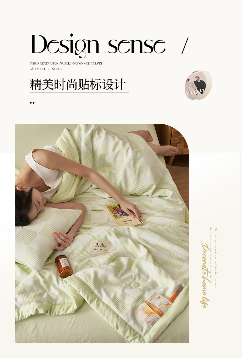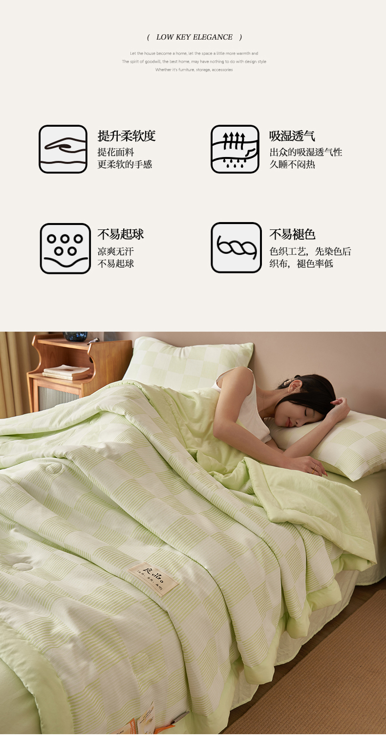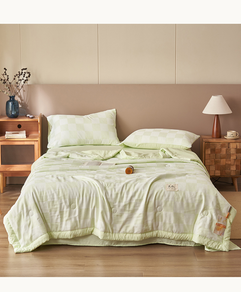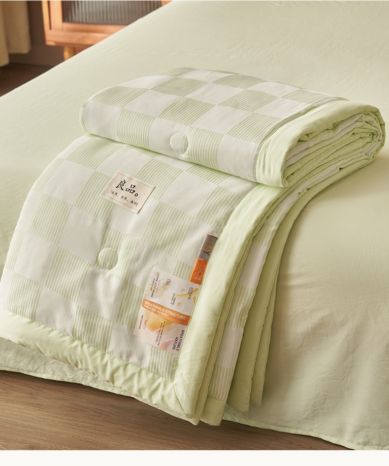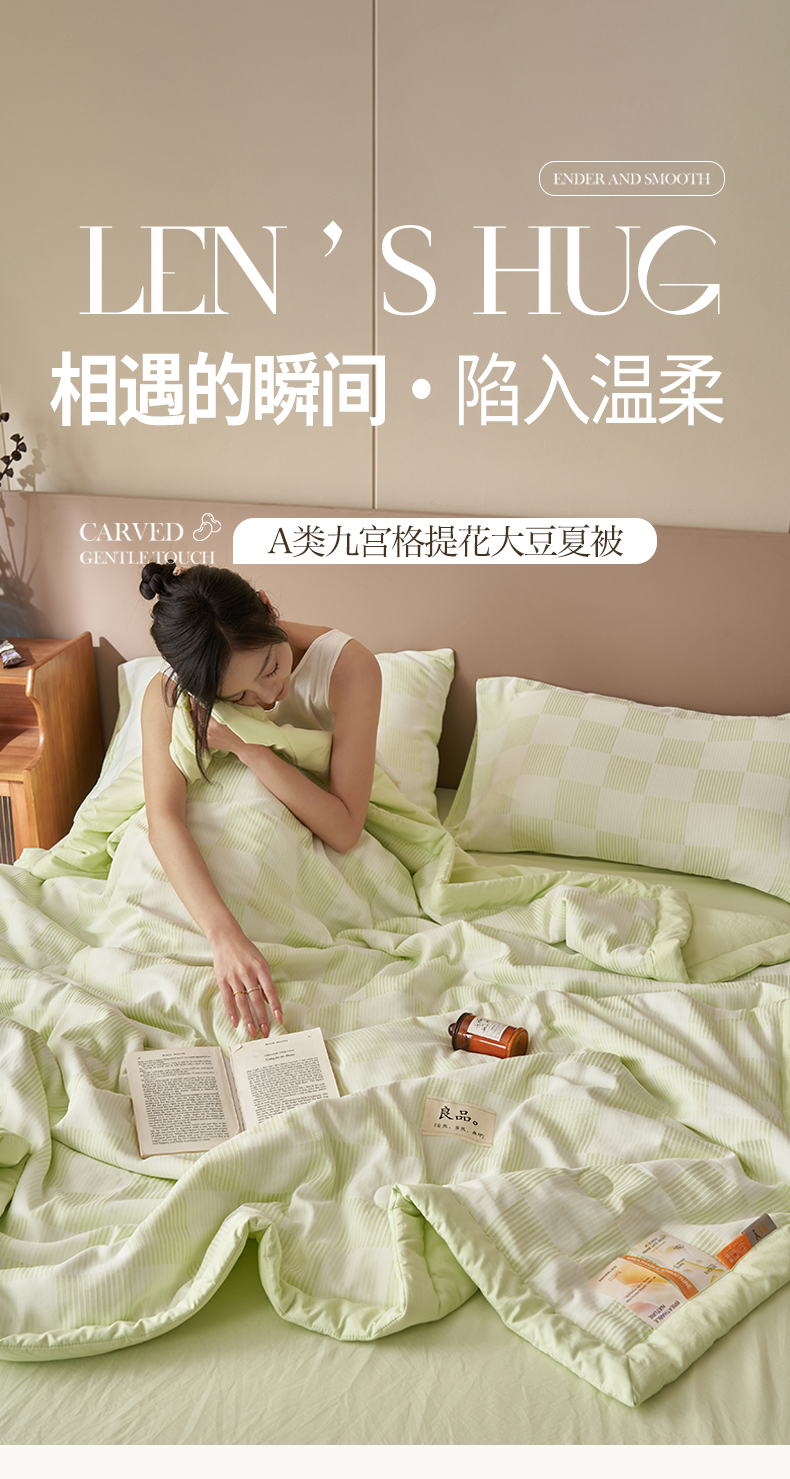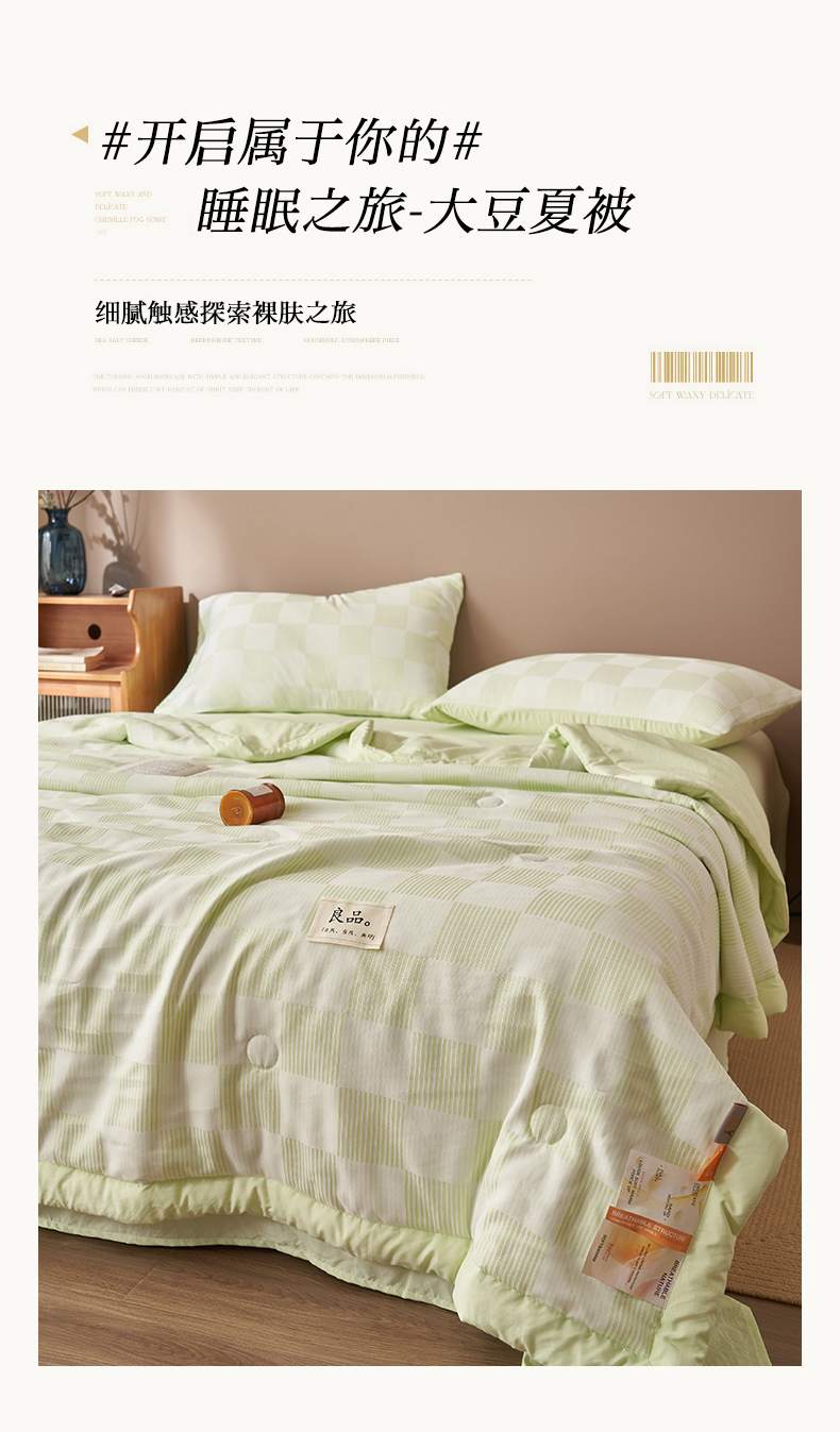商品名称:一加一 2025新款A类九宫格提花大豆夏被被子被芯 九宫格提花绿