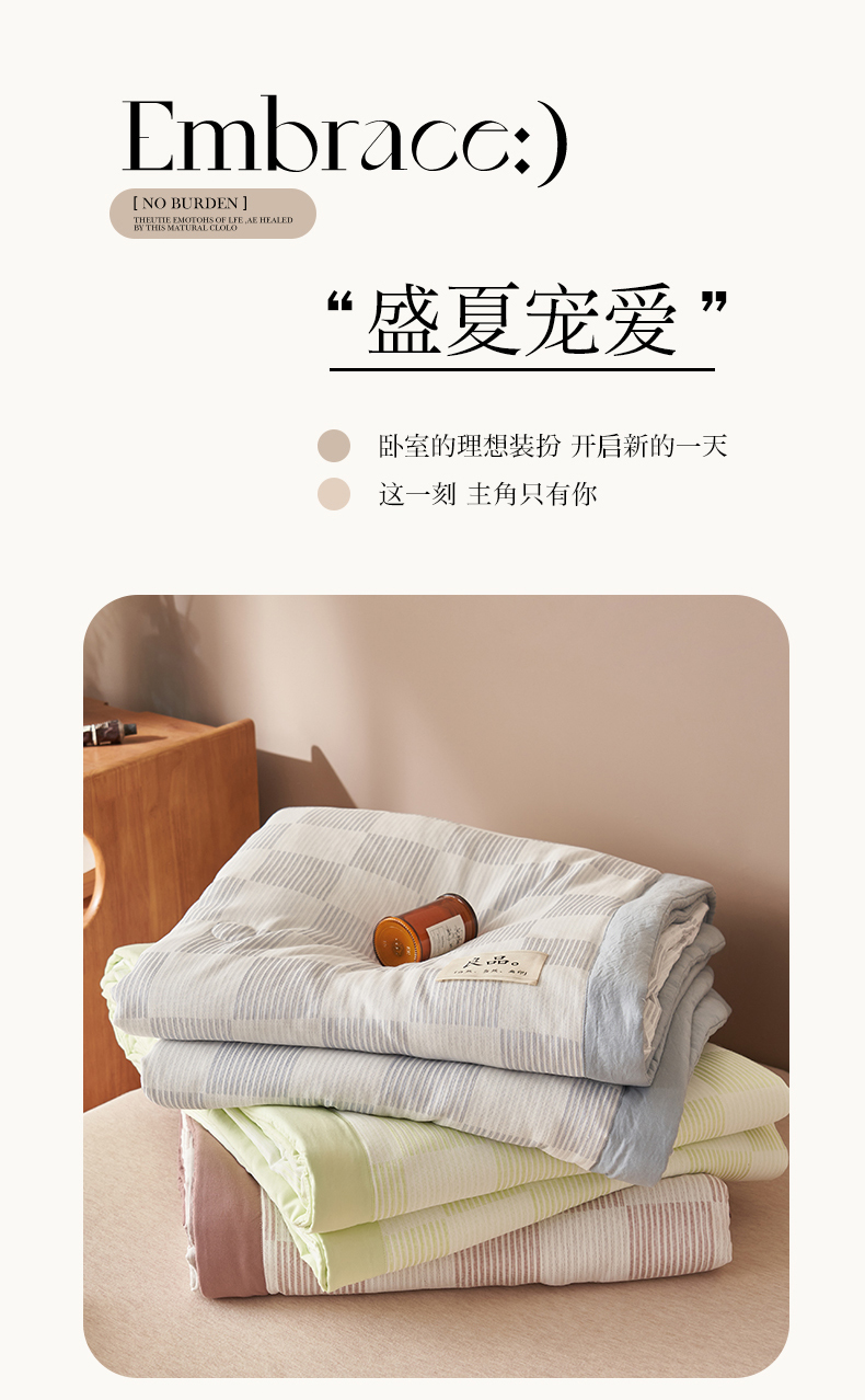 (总)一加一 2025新款全棉色织简约风艾阳绒抗菌被芯,浅兰韵律,桃之夭天,悠然时光