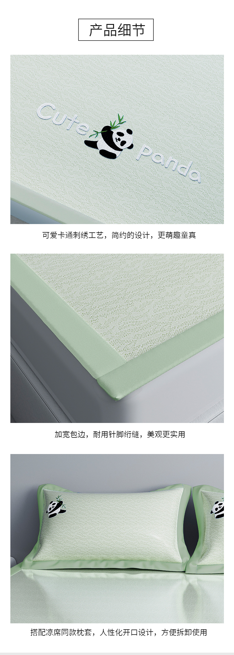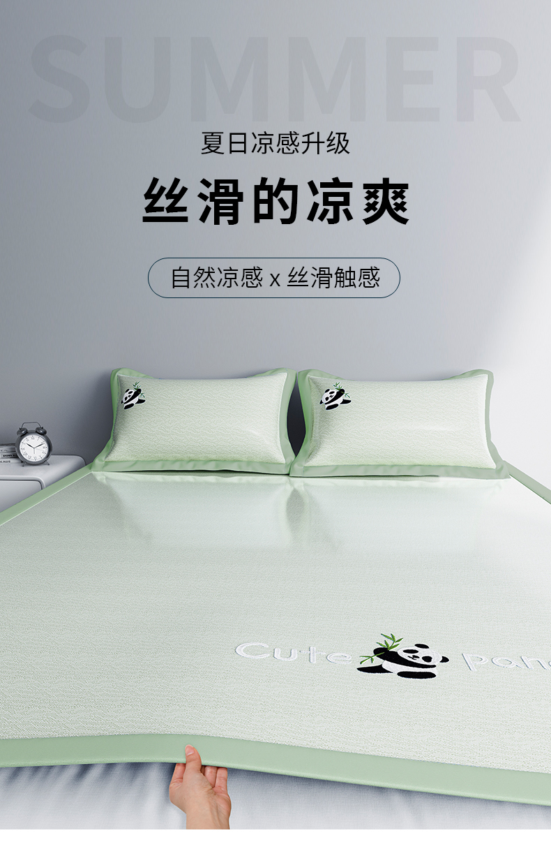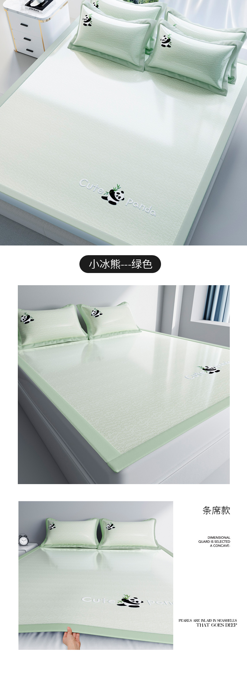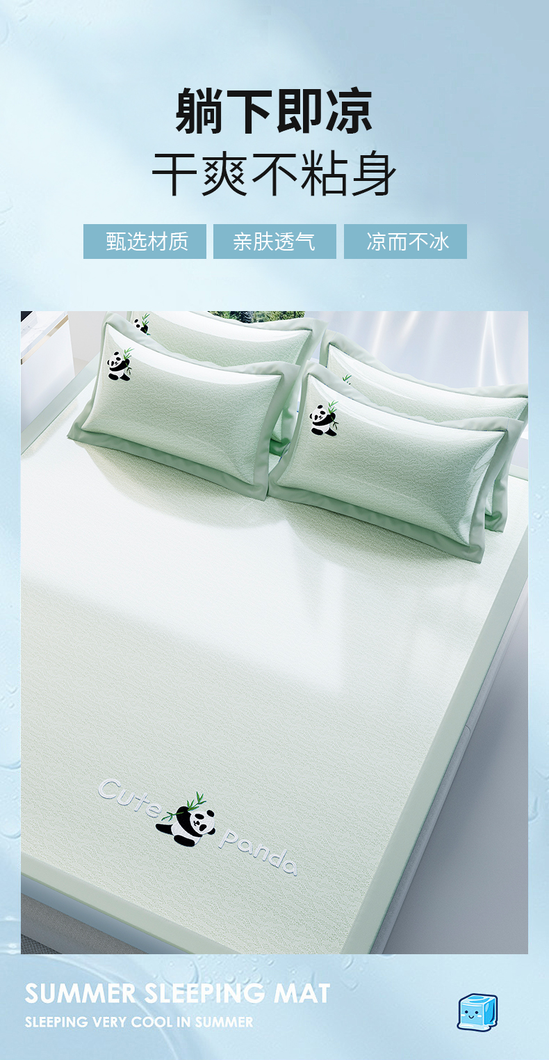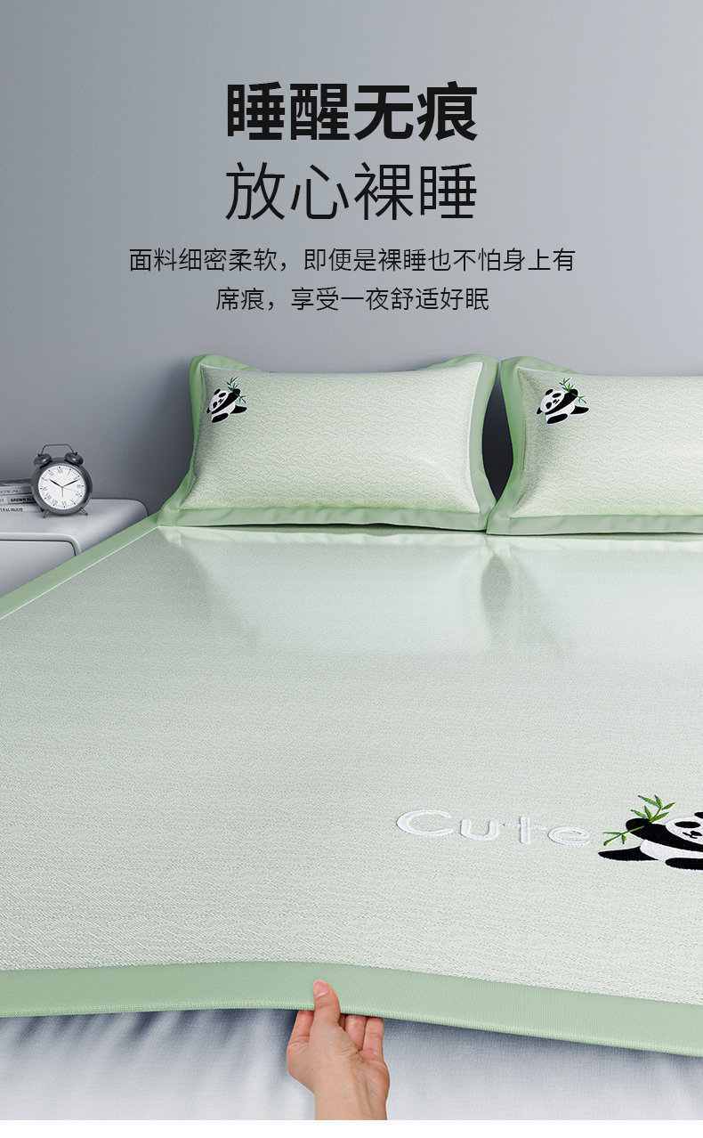 商品名称:阿牛席业 2025新款自然凉感可爱卡通刺绣简约凉席-小冰熊系列 小冰熊-绿(条席)