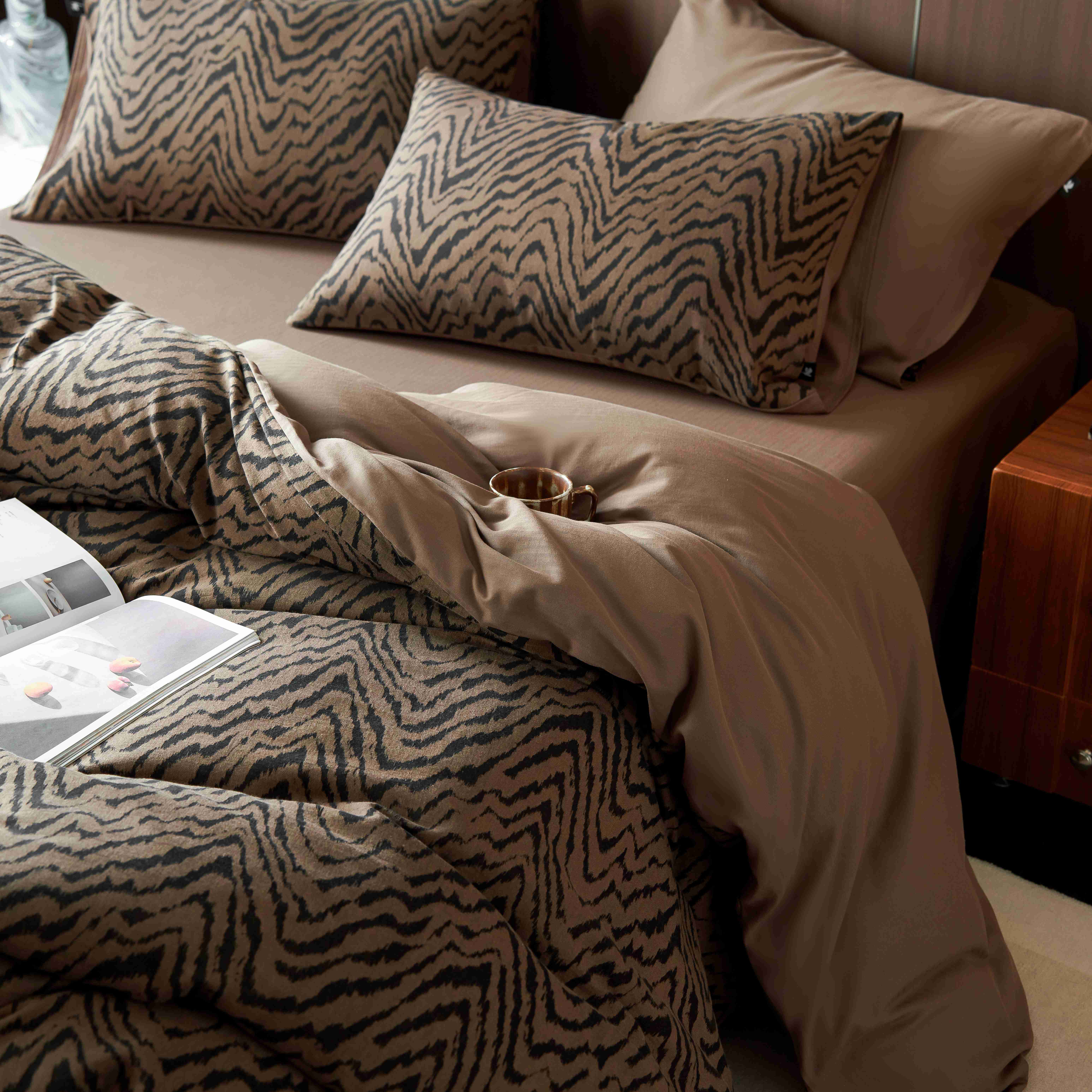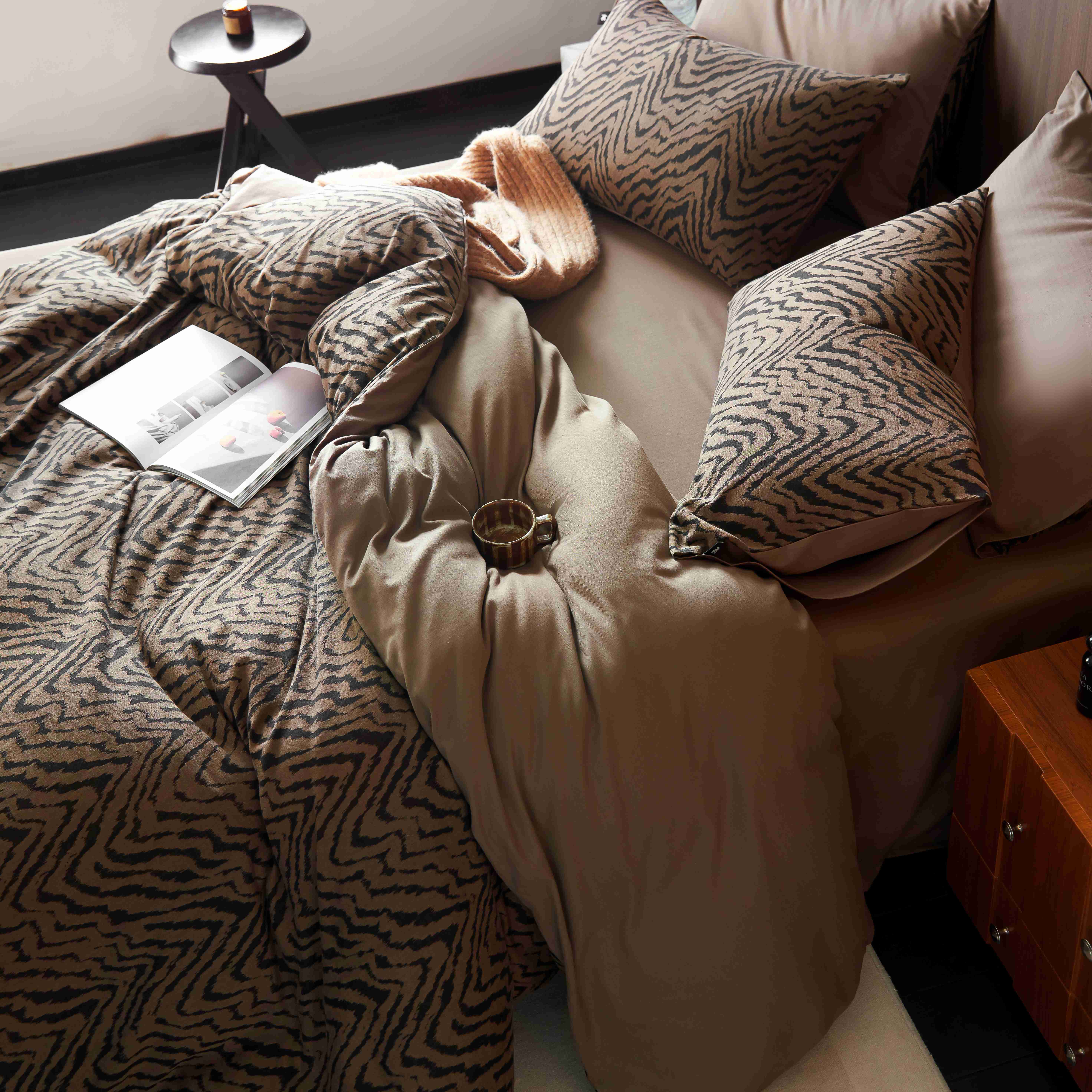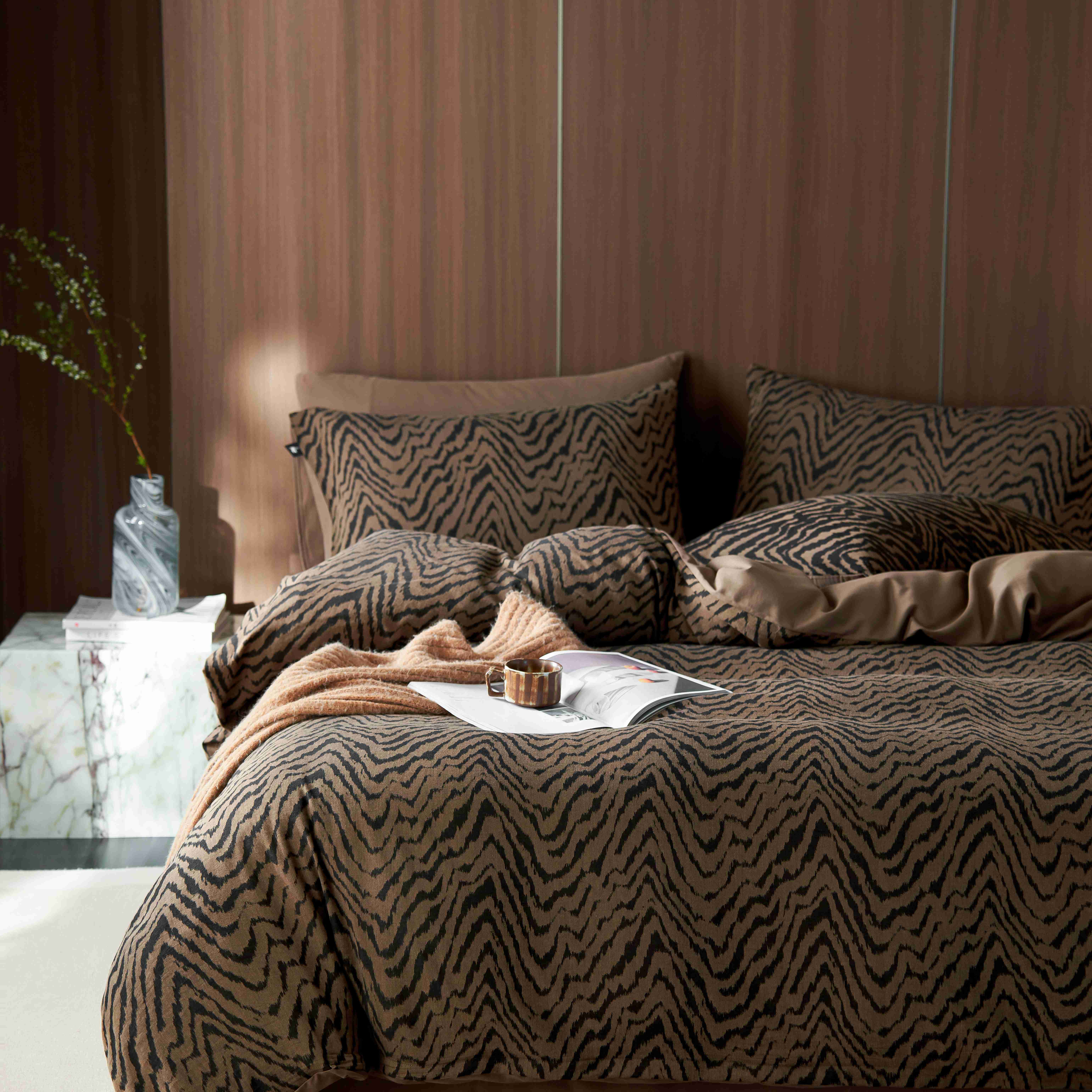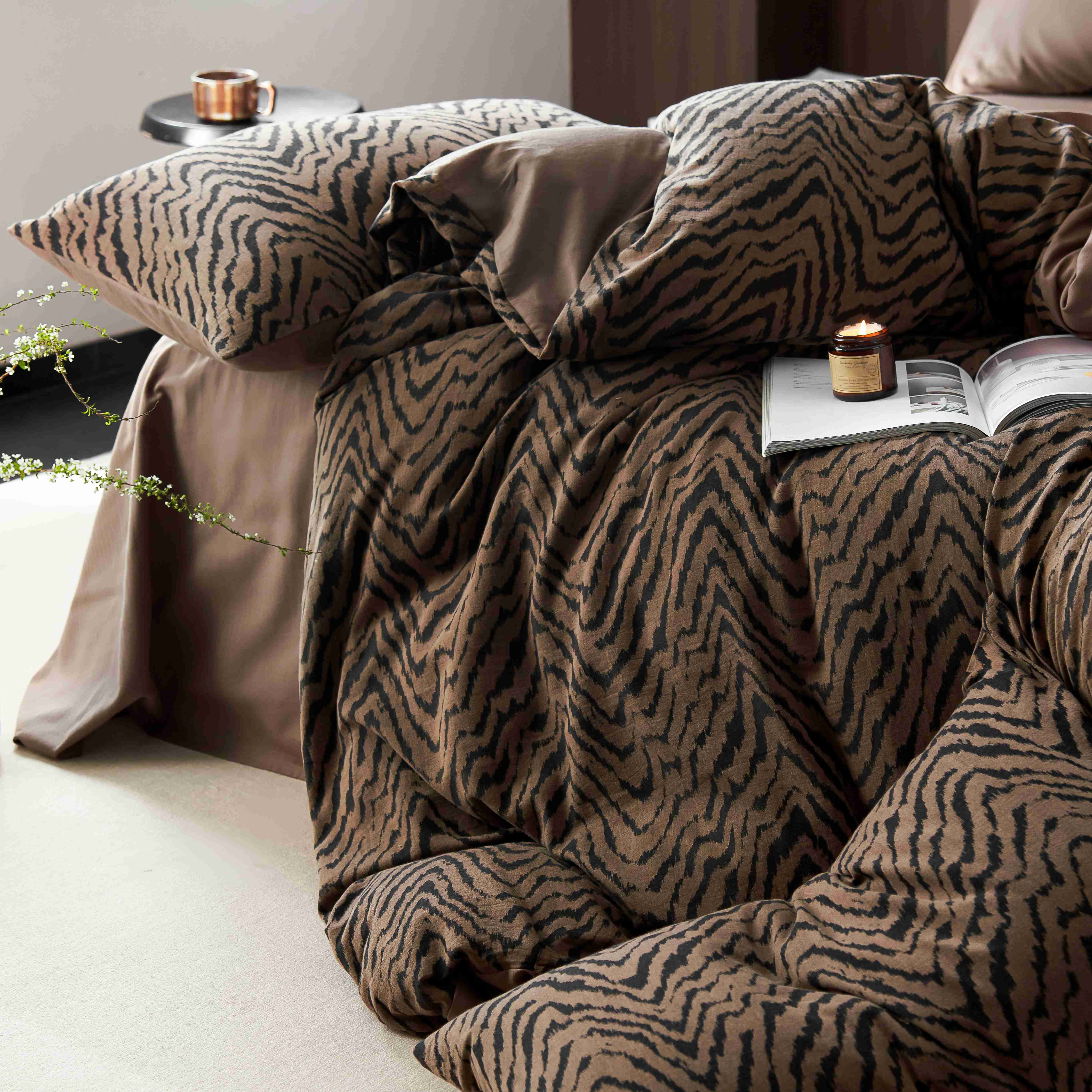 (总)安莱生活 2025春夏新款空气层色织提花四件套费尔岛系列,费尔岛-茶棕,费尔岛-咖啡,费尔岛-银灰