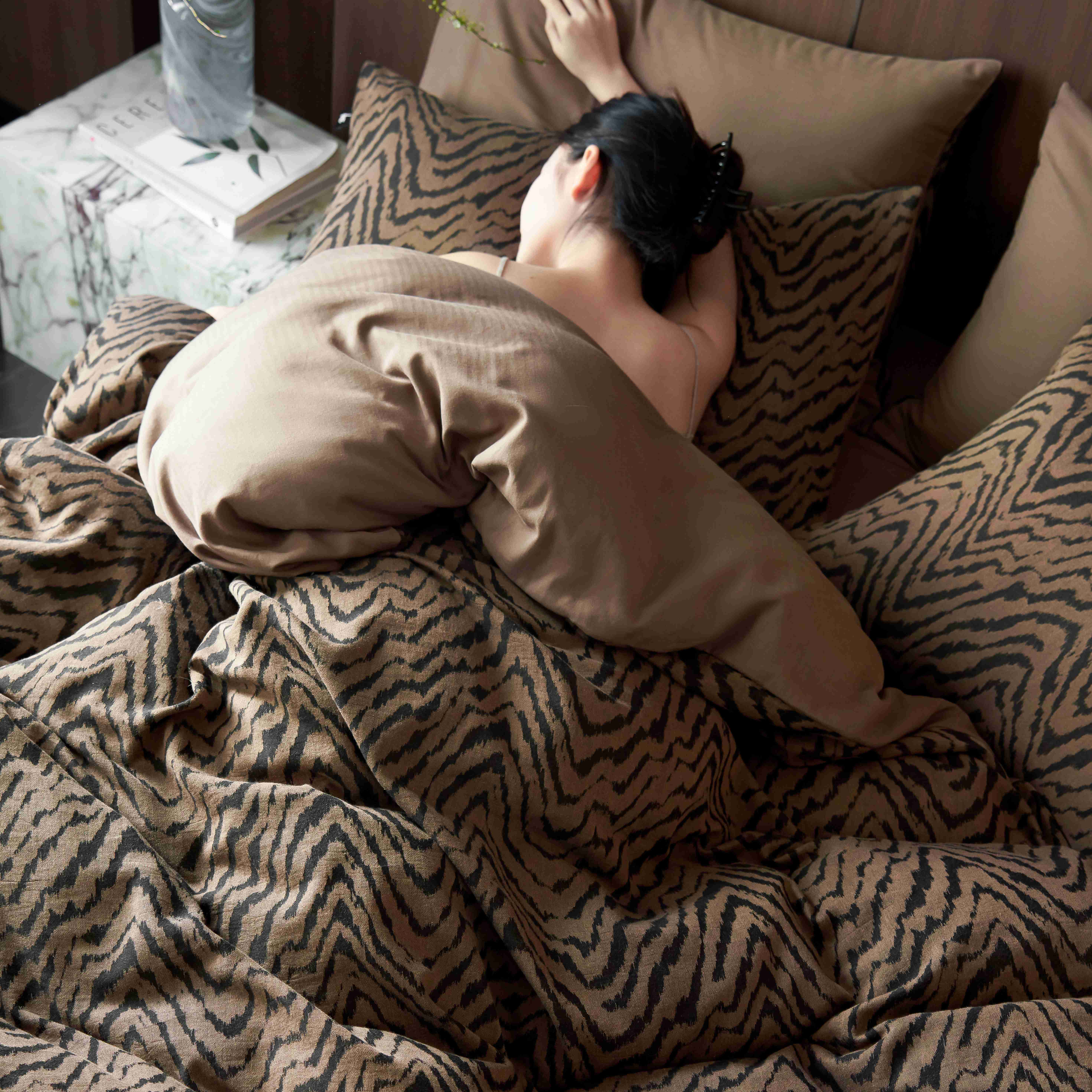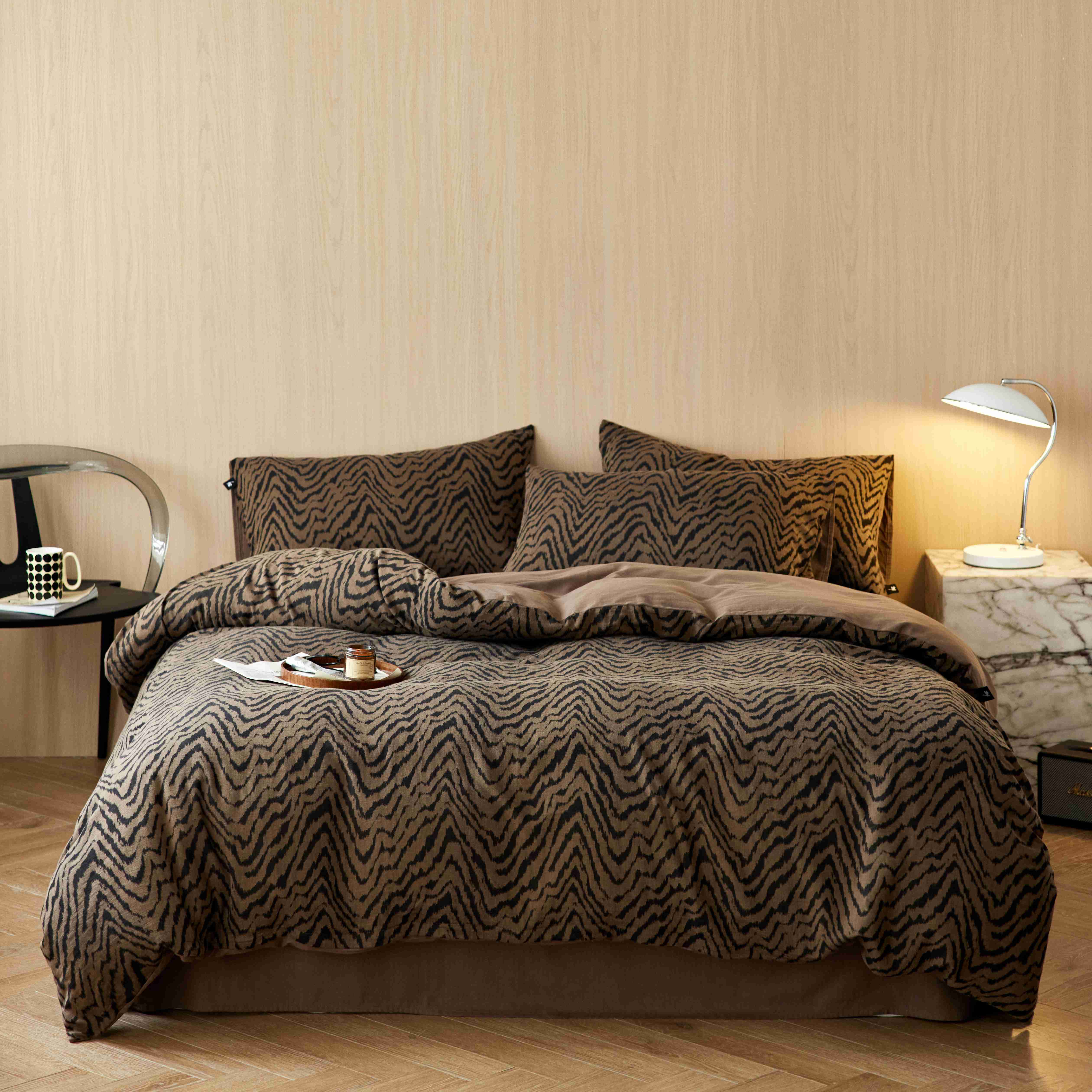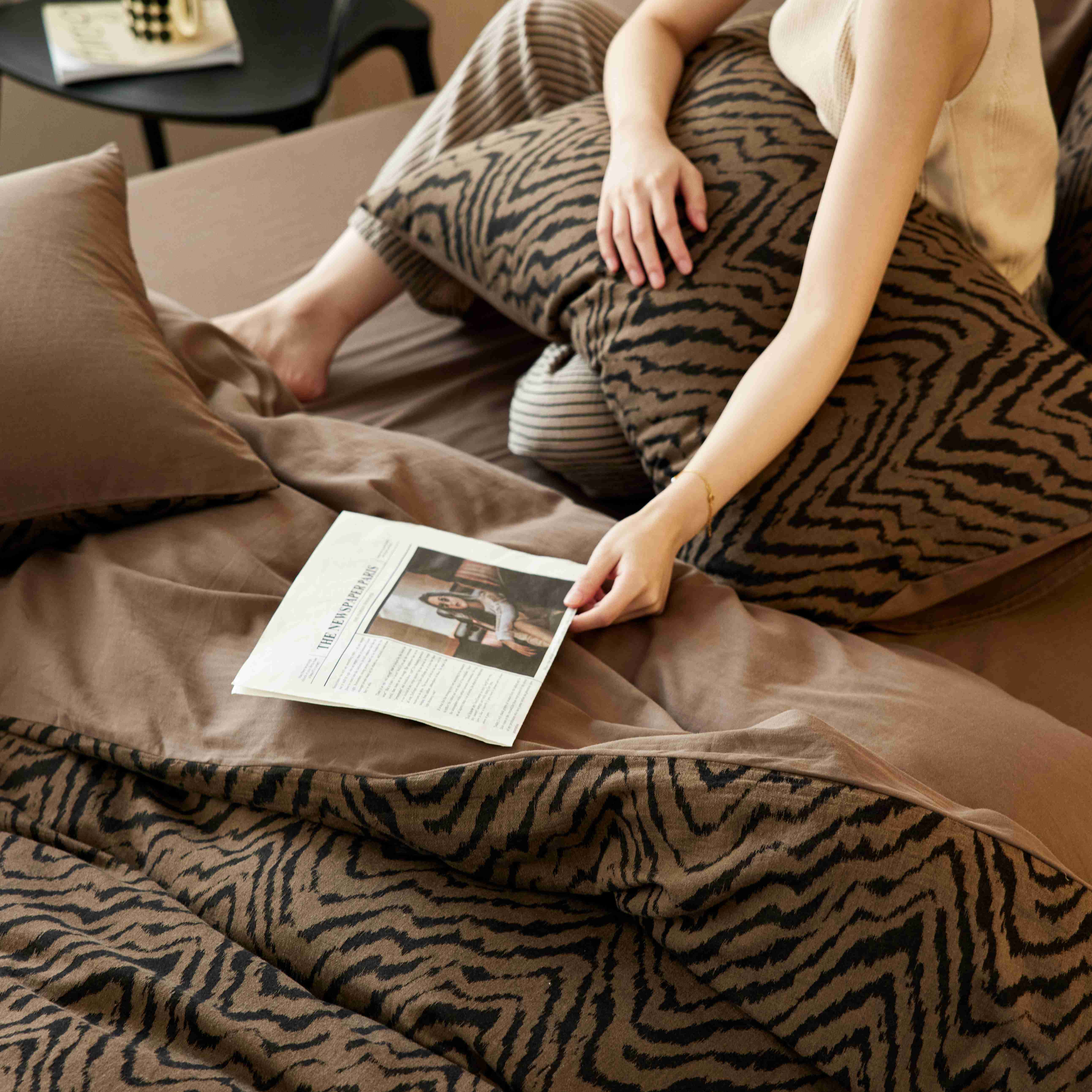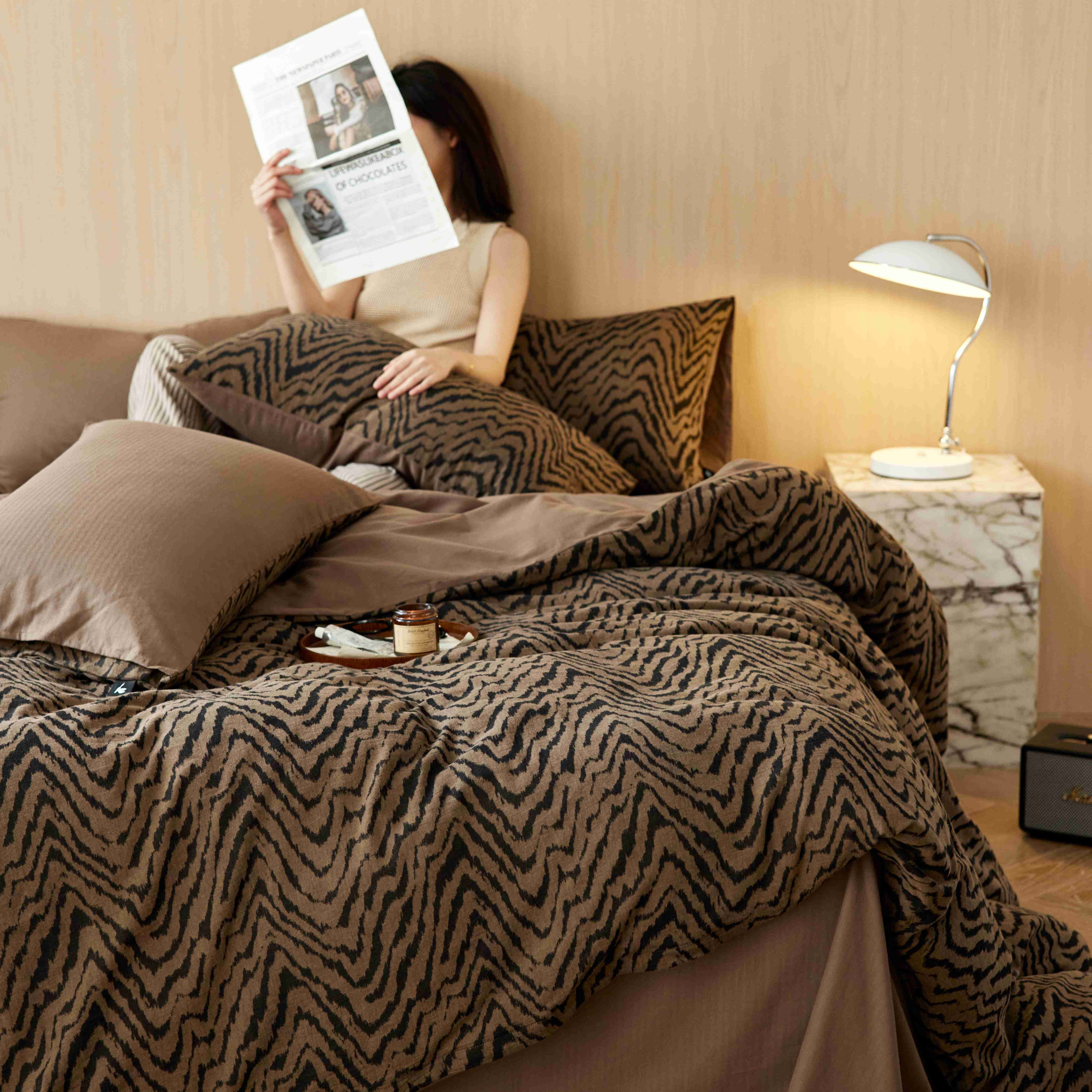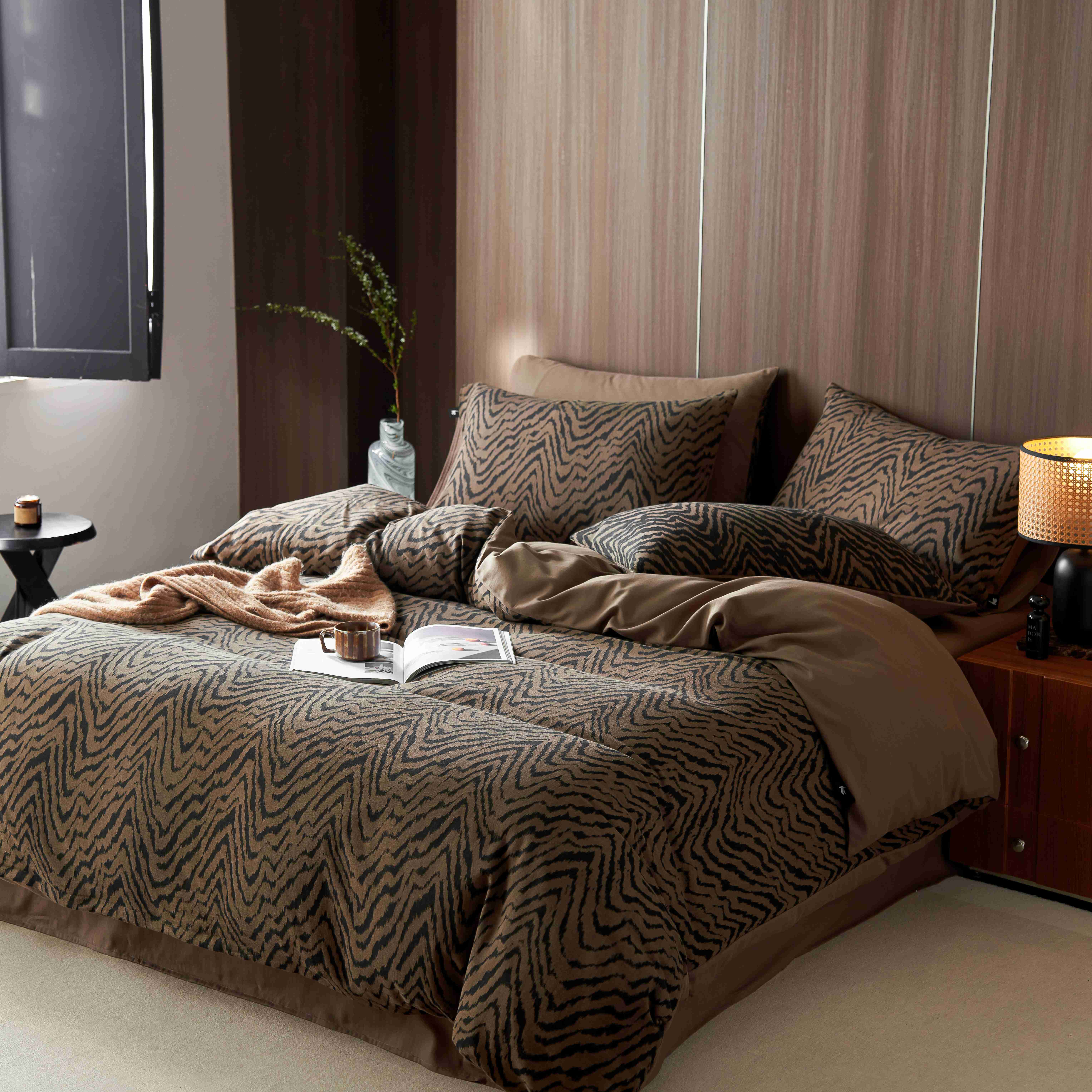 (总)安莱生活 2025春夏新款空气层色织提花四件套费尔岛系列,费尔岛-茶棕,费尔岛-咖啡,费尔岛-银灰