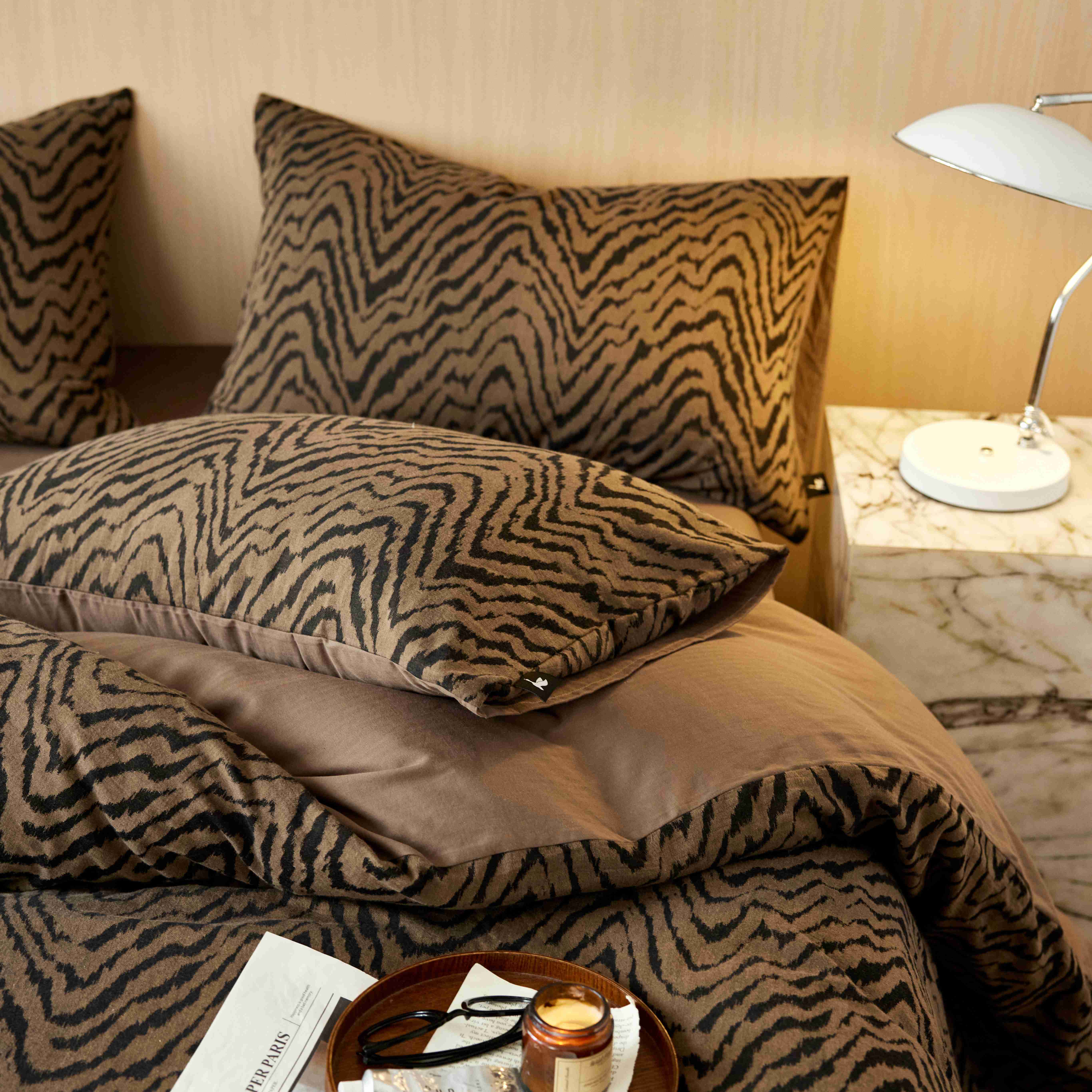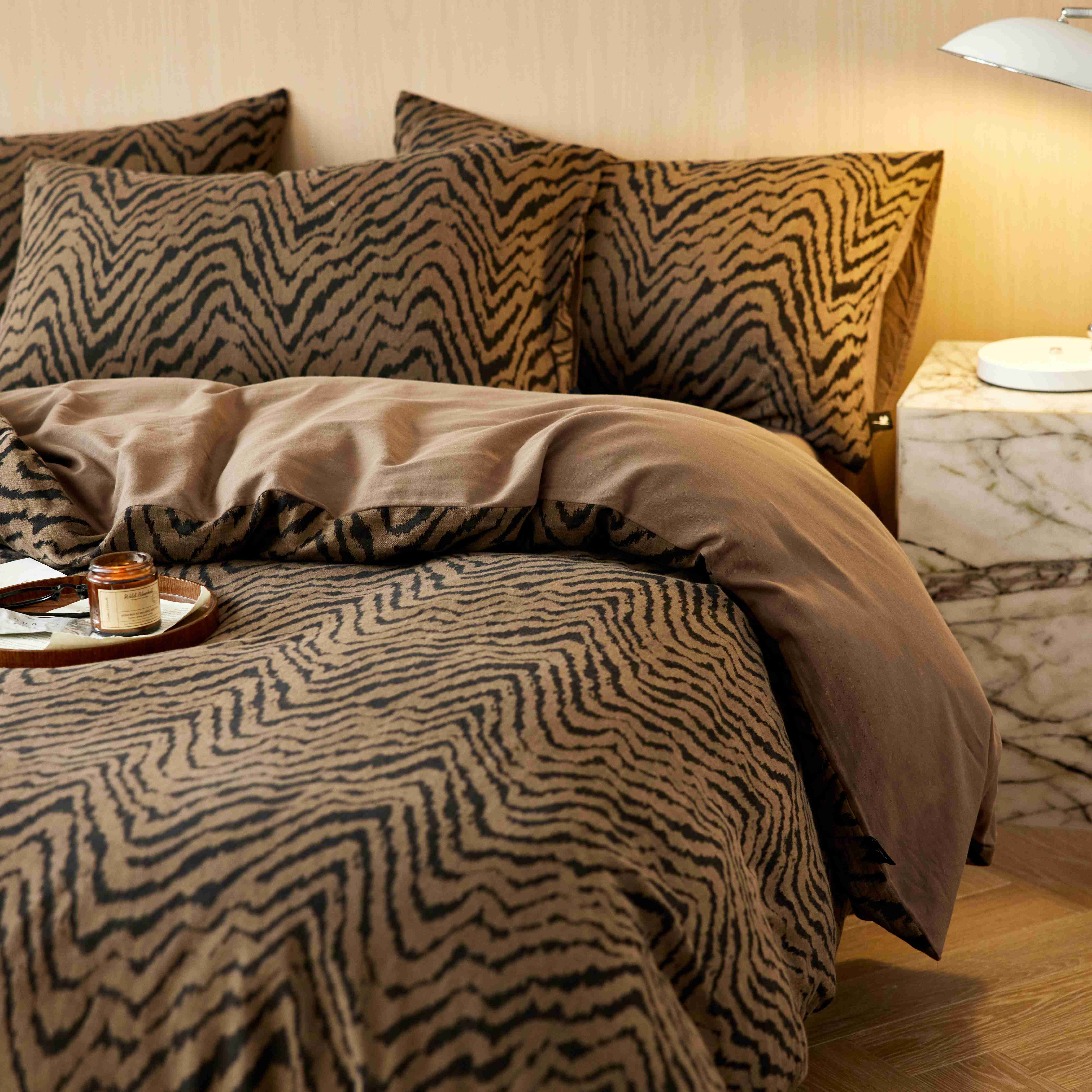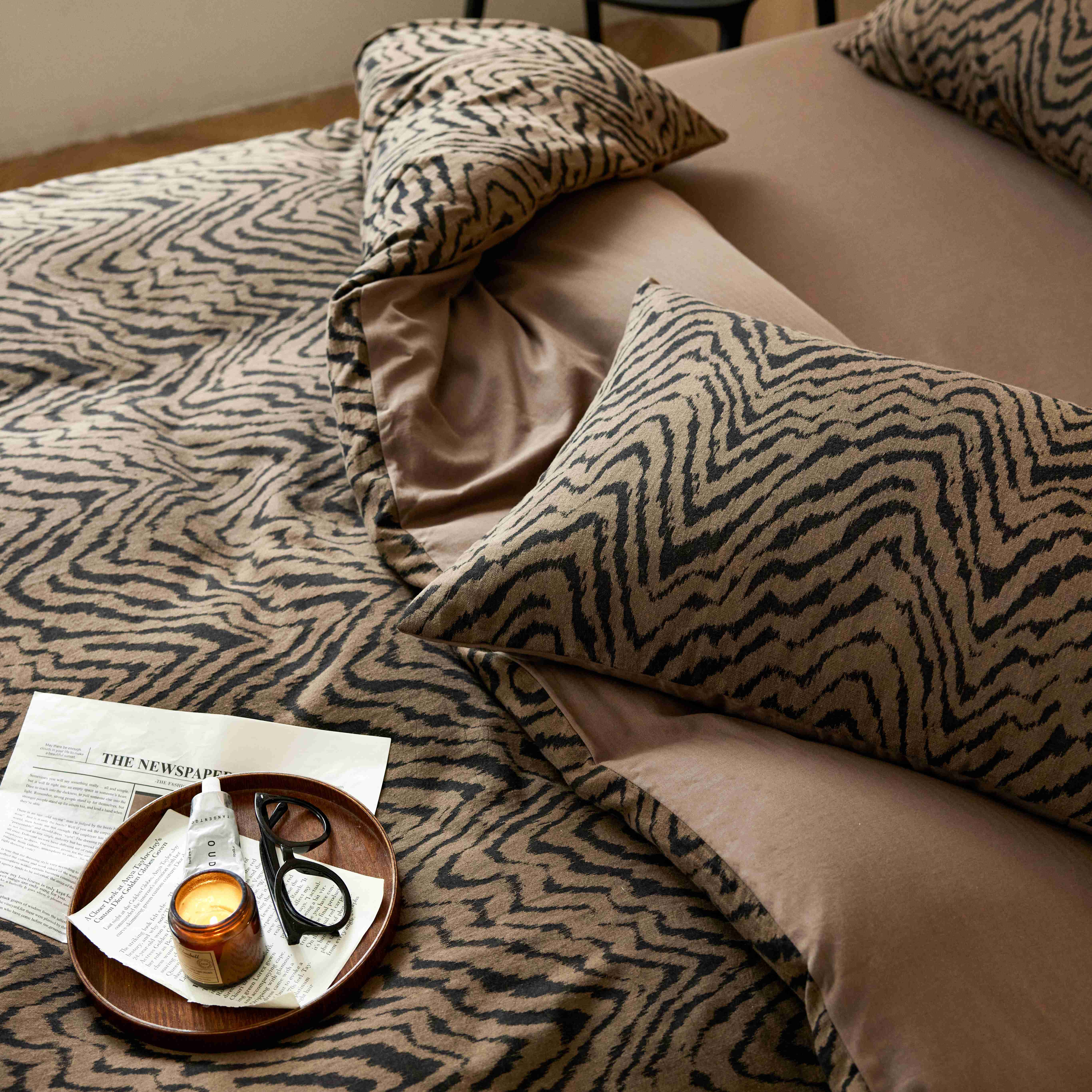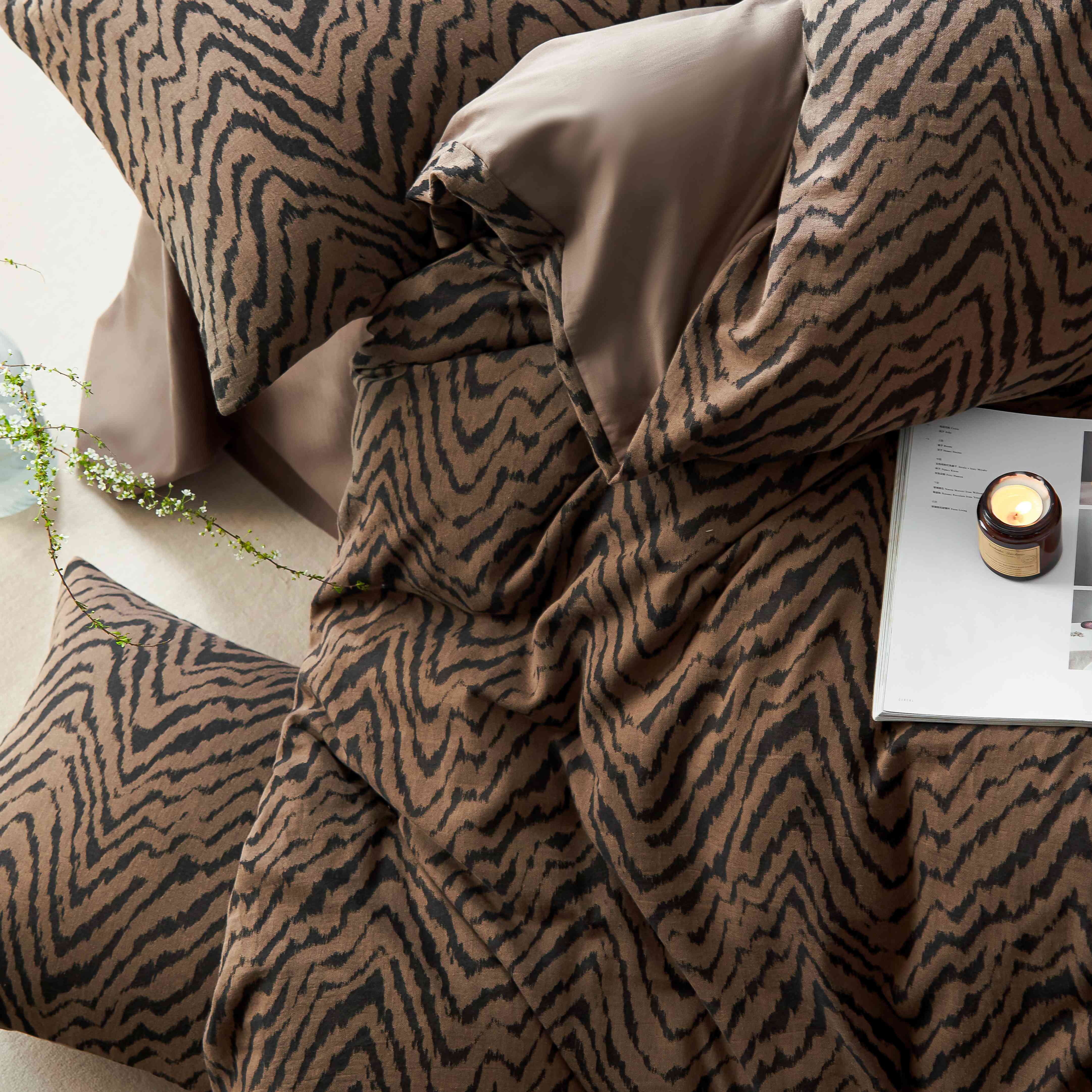 (总)安莱生活 2025春夏新款空气层色织提花四件套费尔岛系列,费尔岛-茶棕,费尔岛-咖啡,费尔岛-银灰
