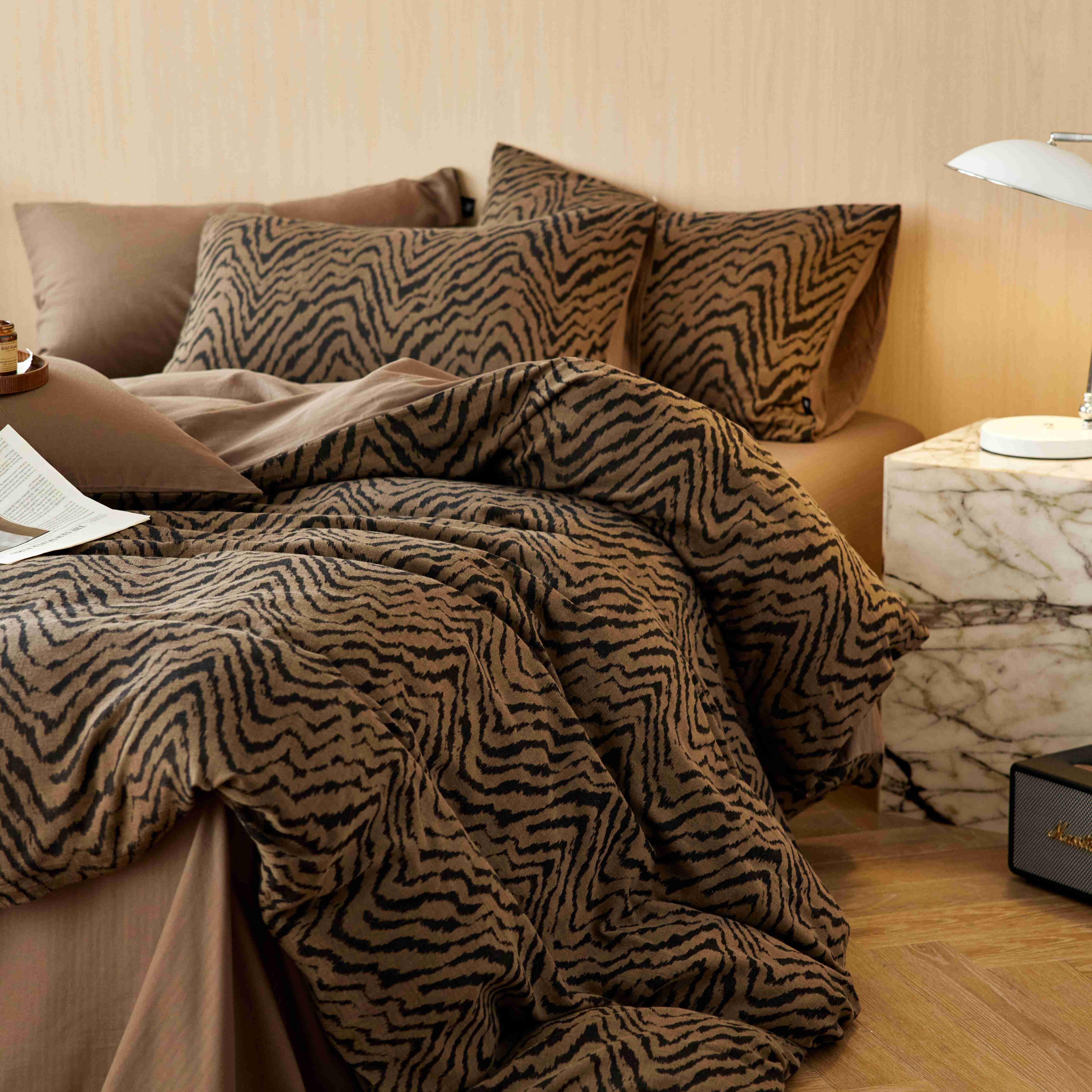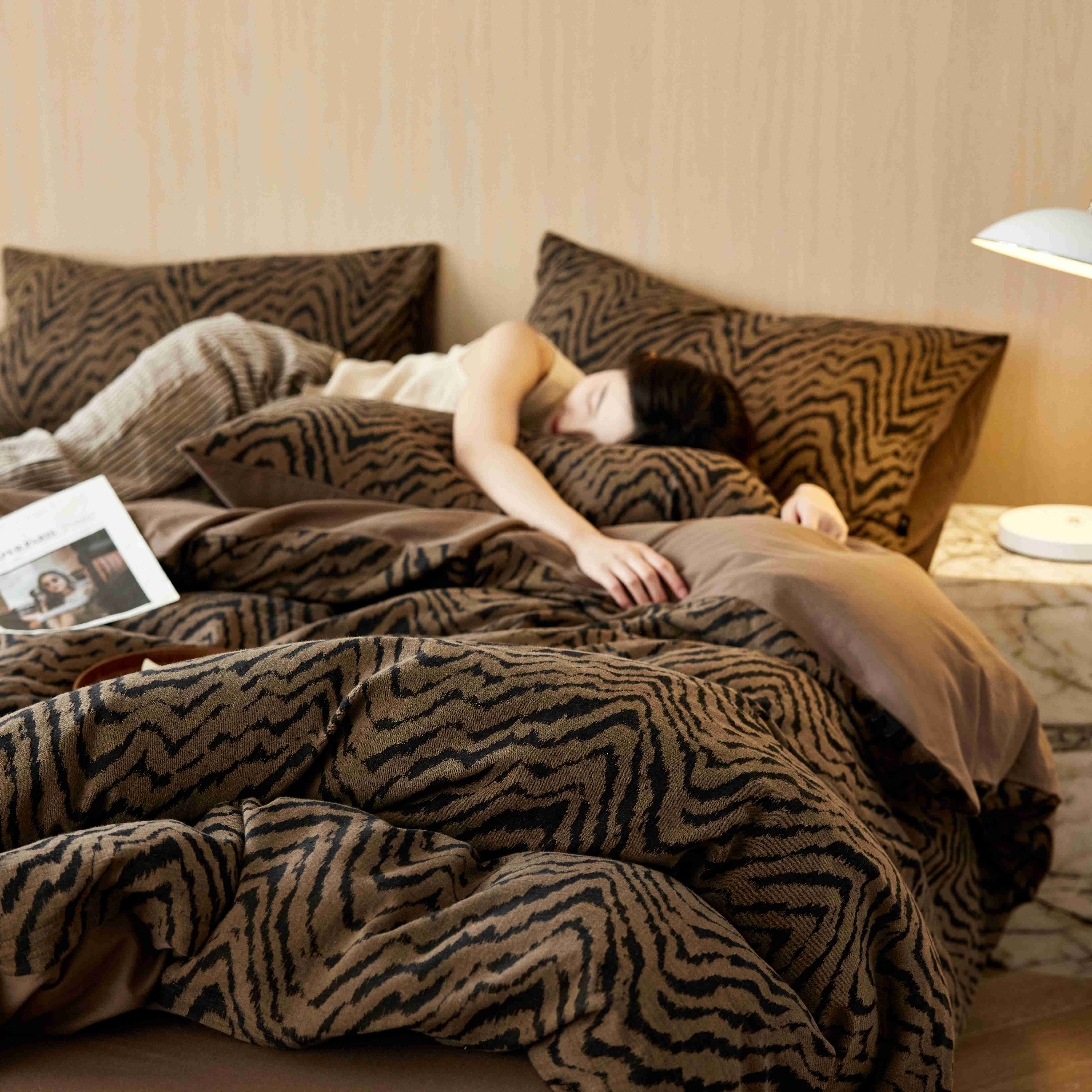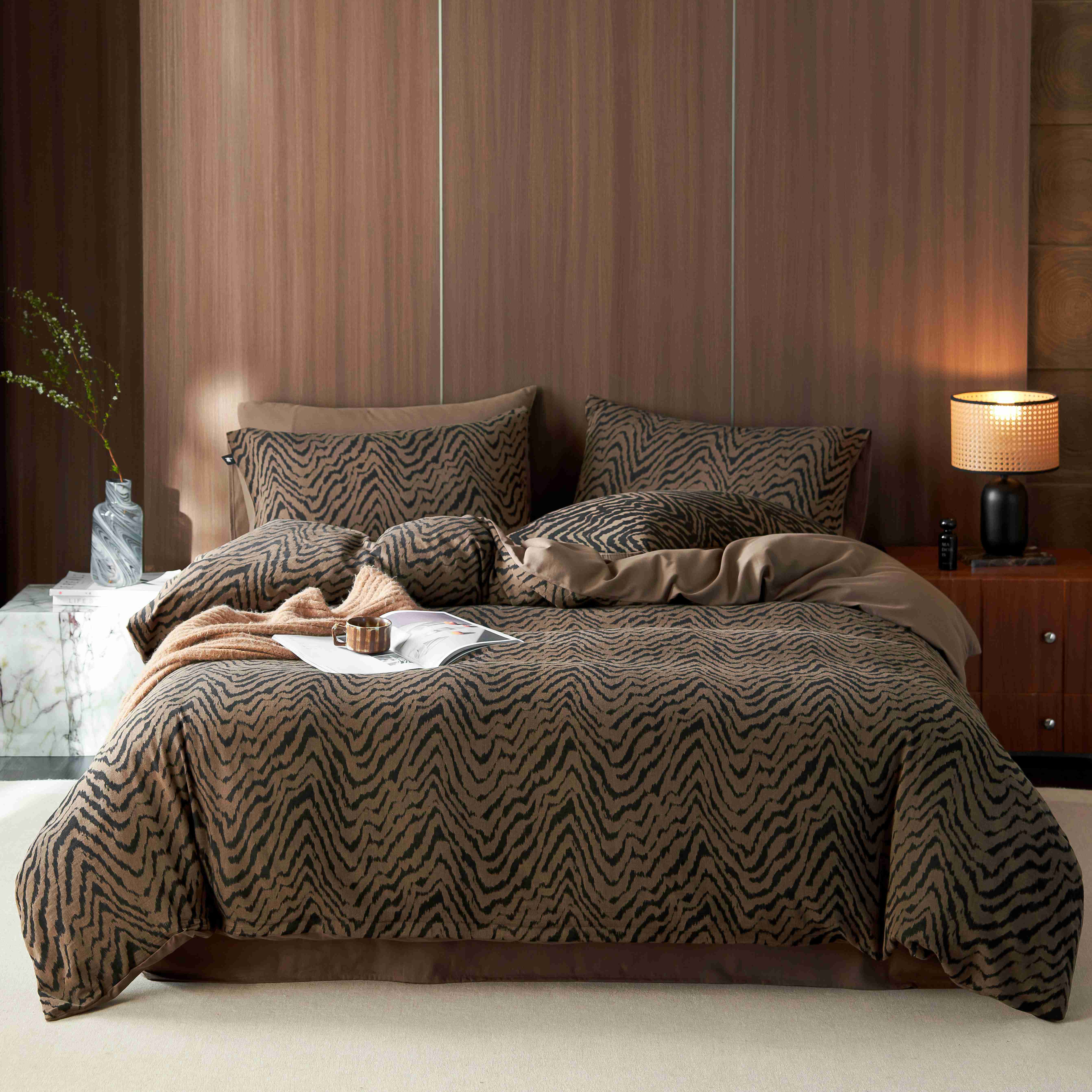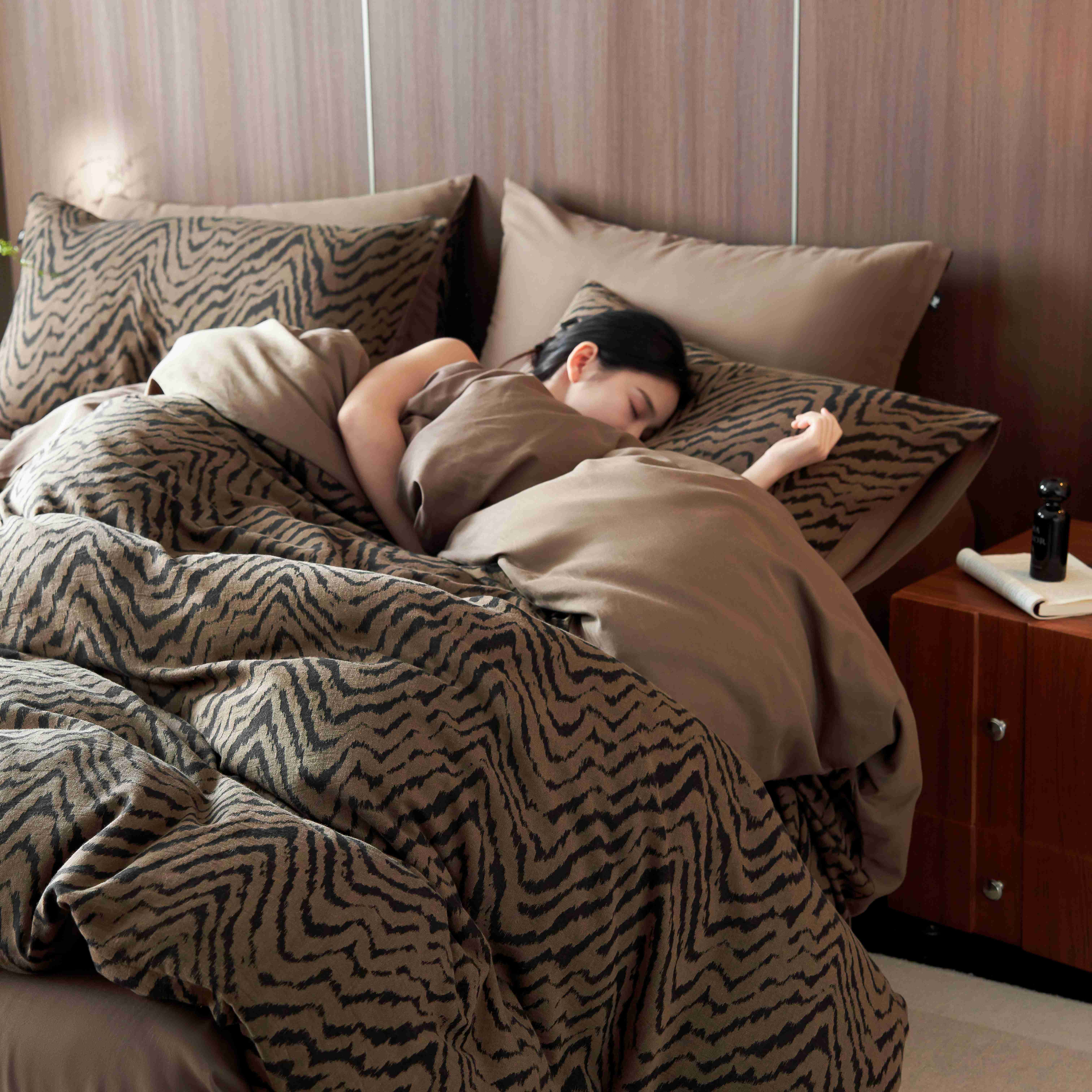 商品名称:安莱生活 2025年全棉色织人字纹提花三系列四件套 尤里-咖