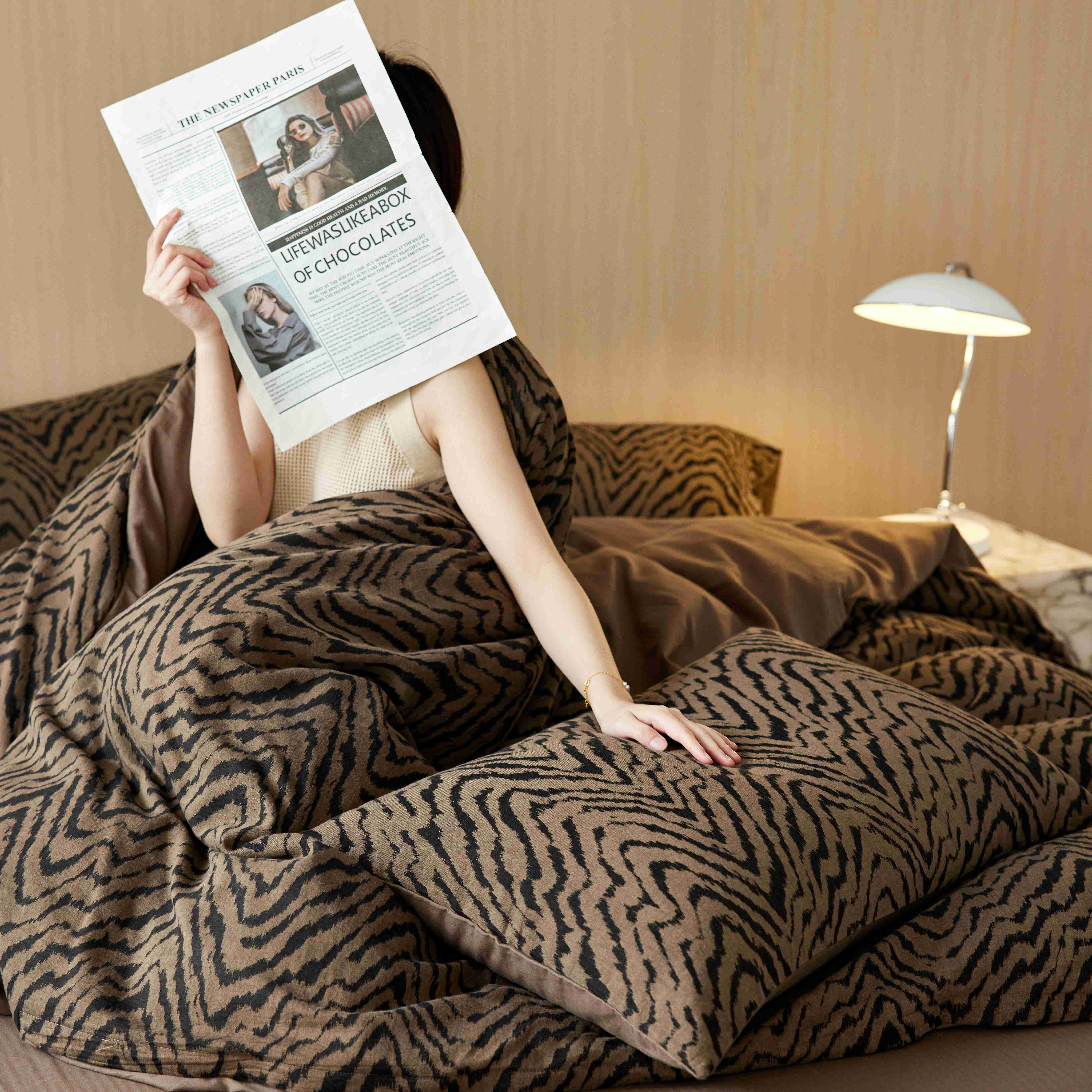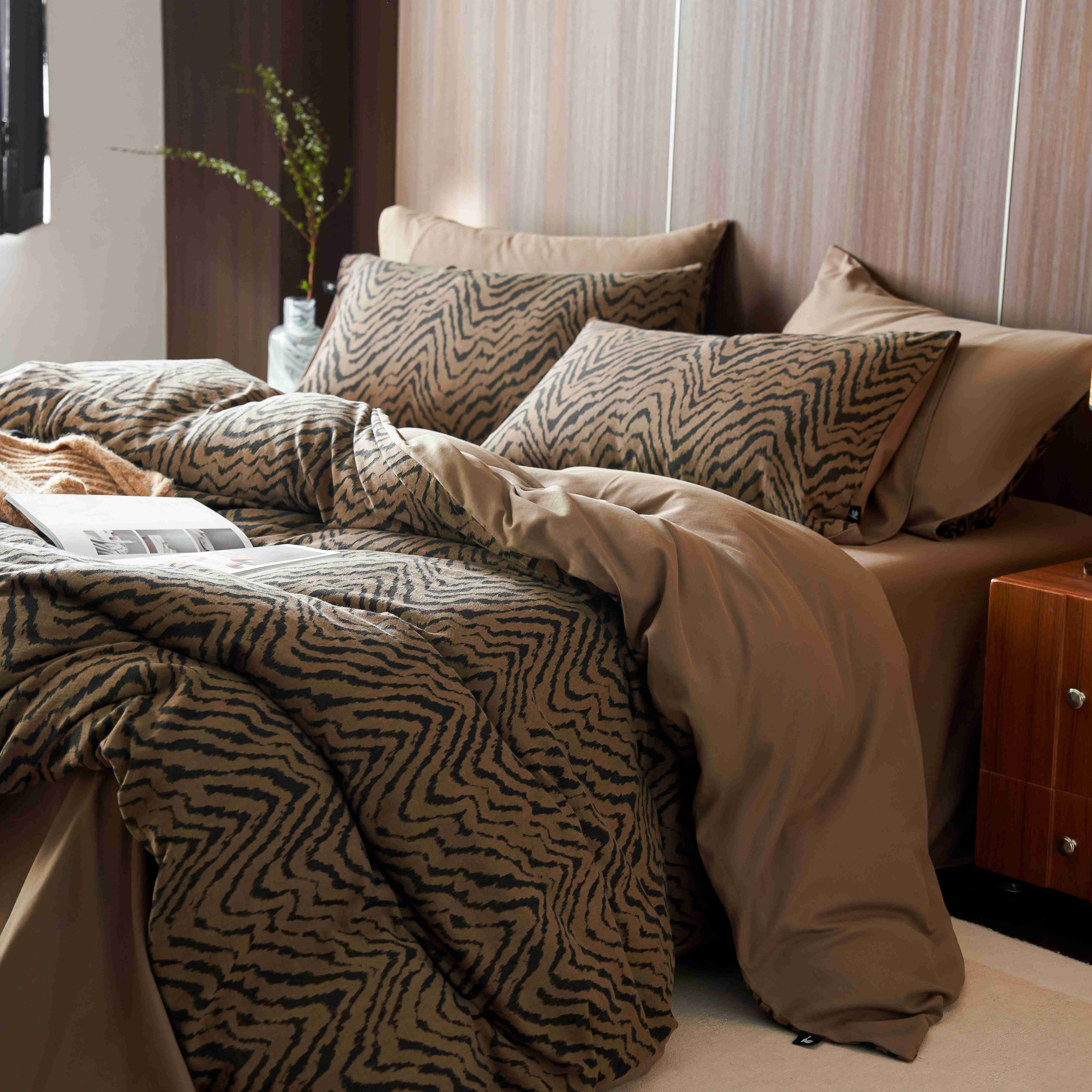 安莱生活 2025年全棉色织人字纹提花三系列四件套 尤里-咖