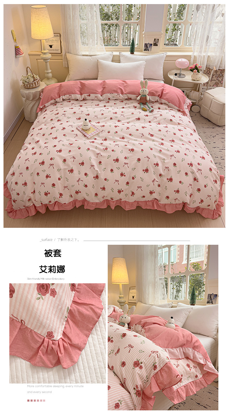 商品名称:忆生活家纺 2025新款韩版全棉花边款-单被套系列 艾莉娜