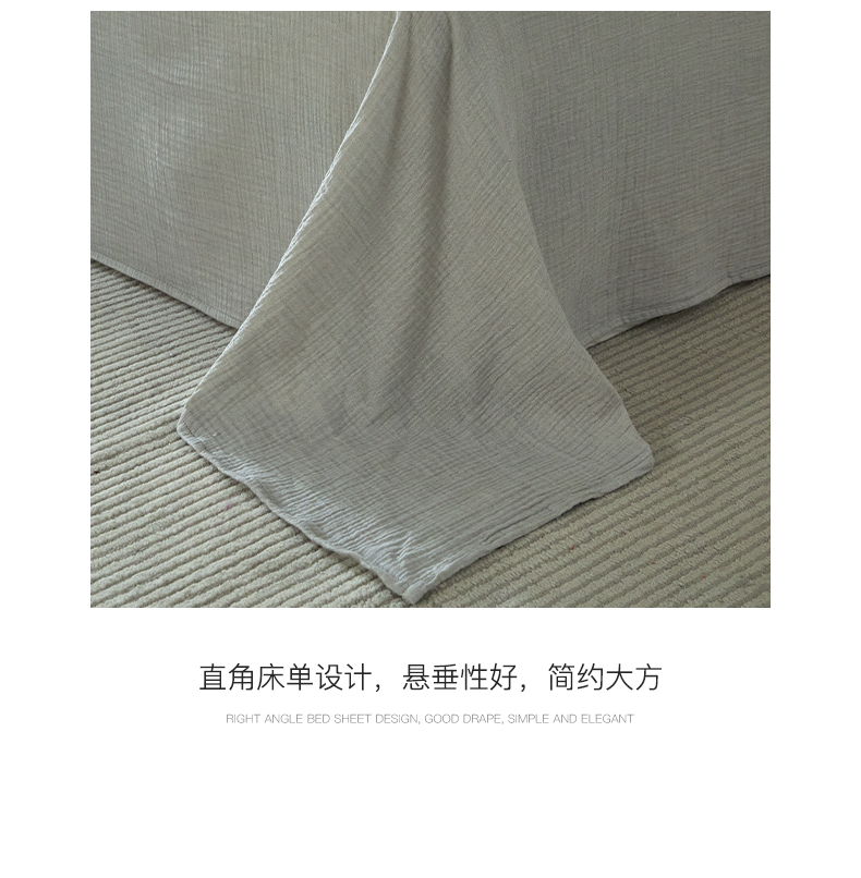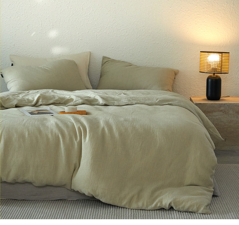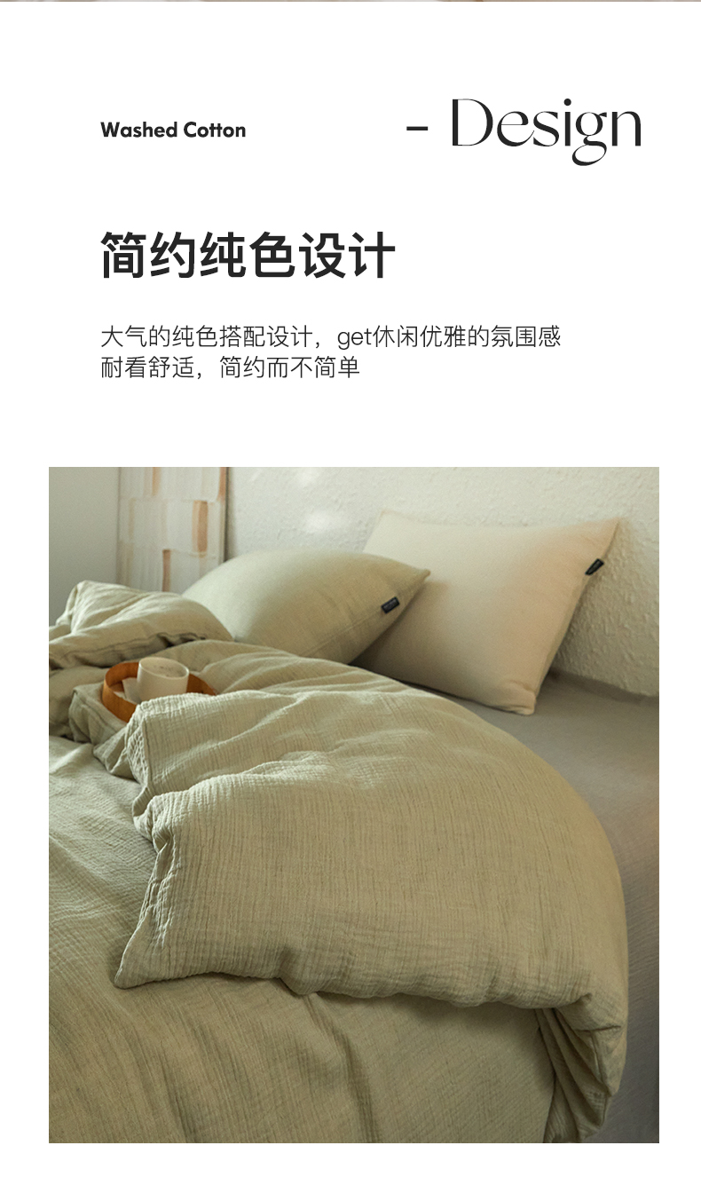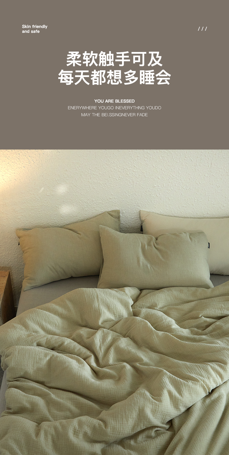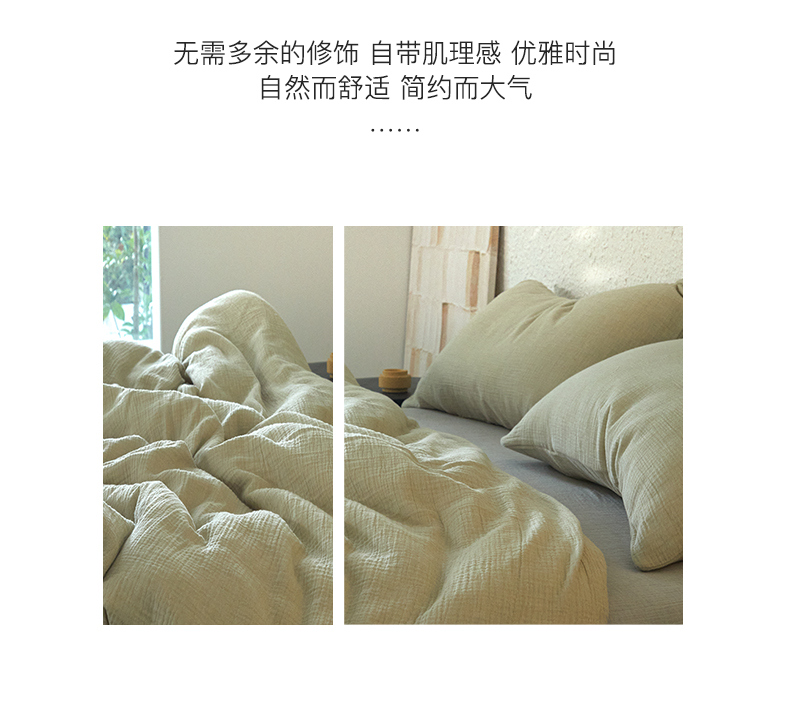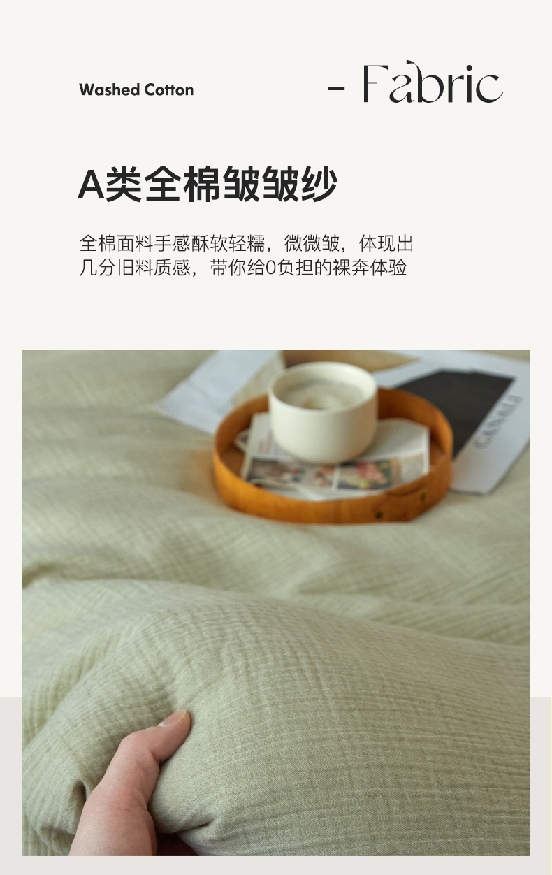 商品名称:格里芬家纺 2025新款全棉水洗纯色双层皱皱纱四件套-雅典 雅典-牛油果绿