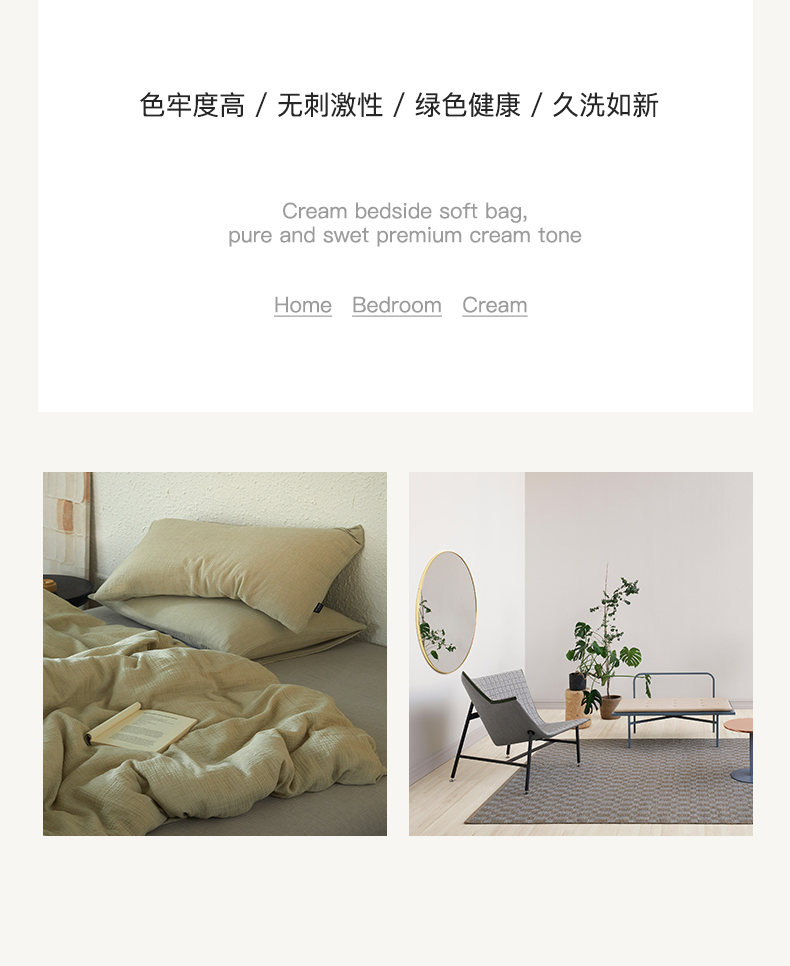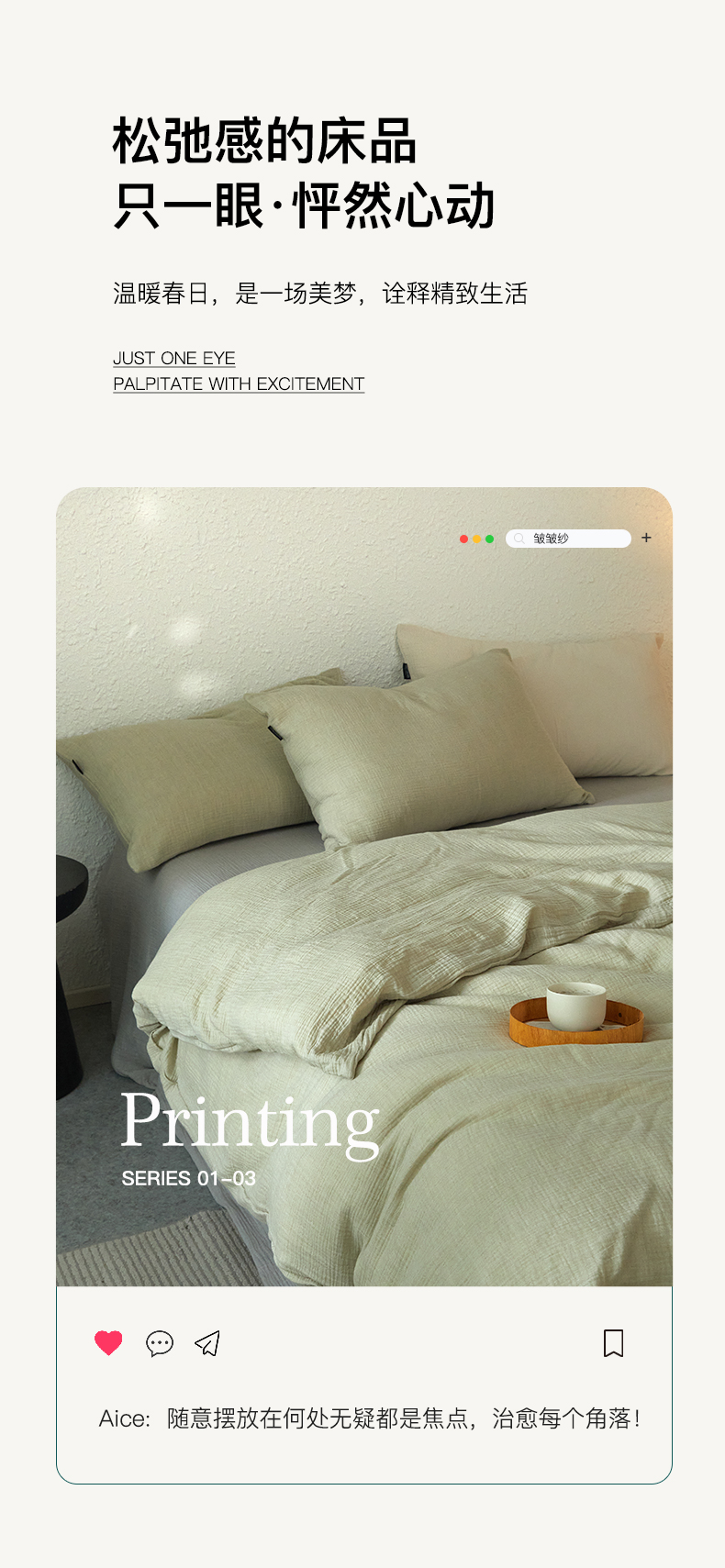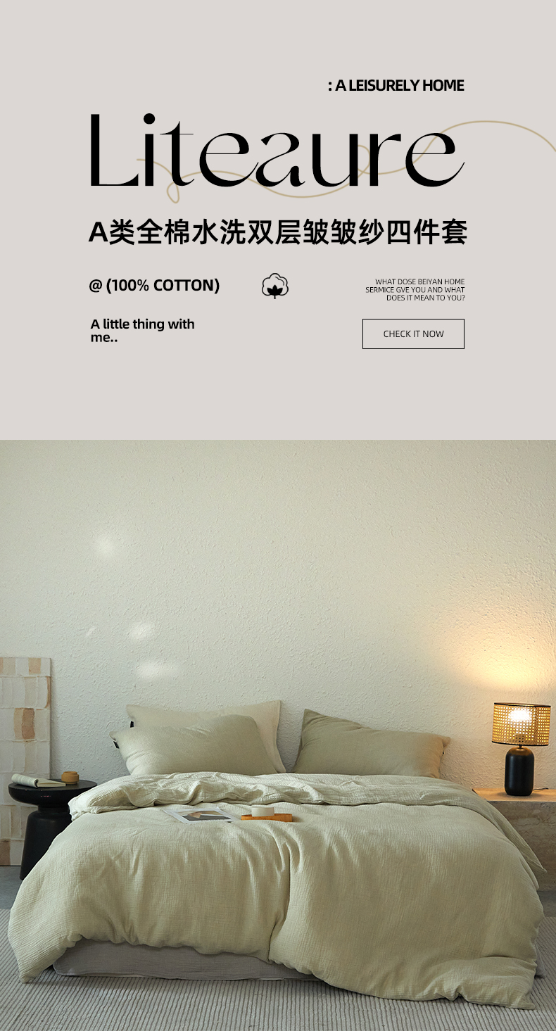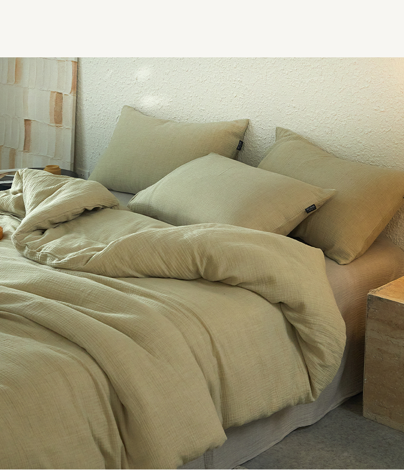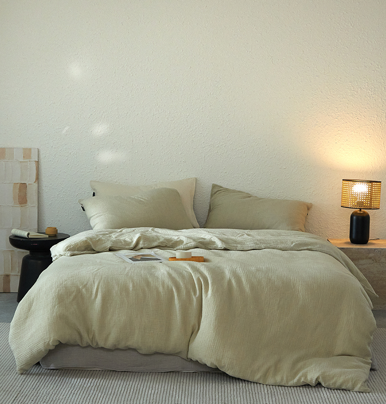 商品名称:格里芬家纺 2025新款全棉水洗纯色双层皱皱纱四件套-雅典 雅典-牛油果绿