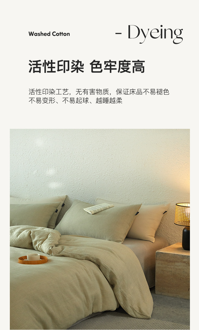 (总)格里芬家纺 2025新款全棉水洗纯色双层皱皱纱四件套-雅典,雅典-黛蓝,雅典-可可卡其,雅典-木槿紫,雅典-奶昔白,雅典-牛油果绿,雅典-蔷薇粉
